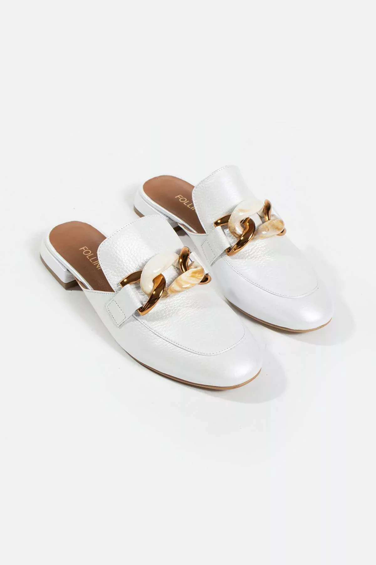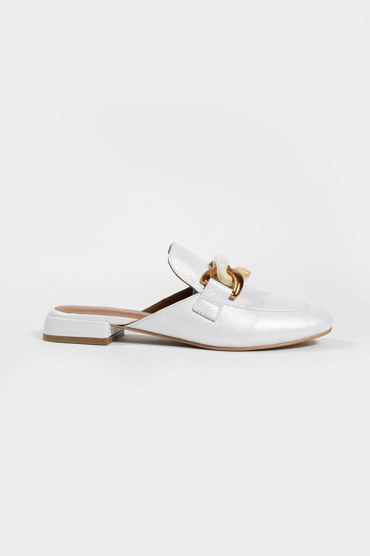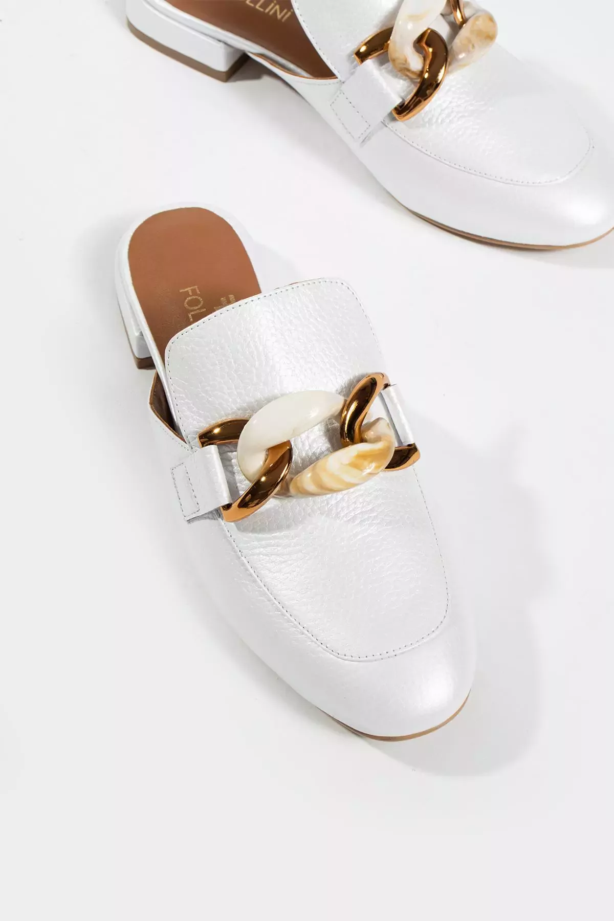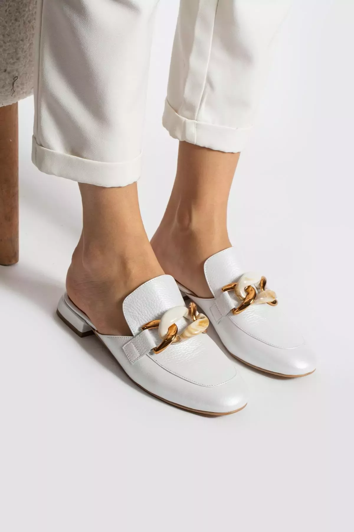 Kadın Altın Deri Aksesuar Detaylı Terlik