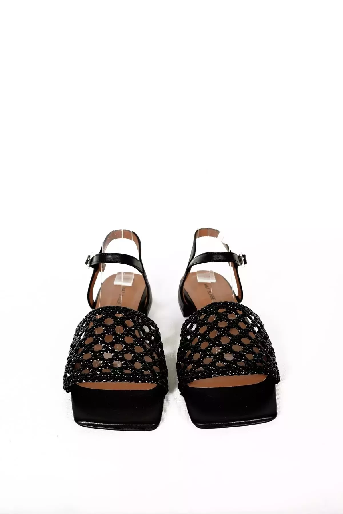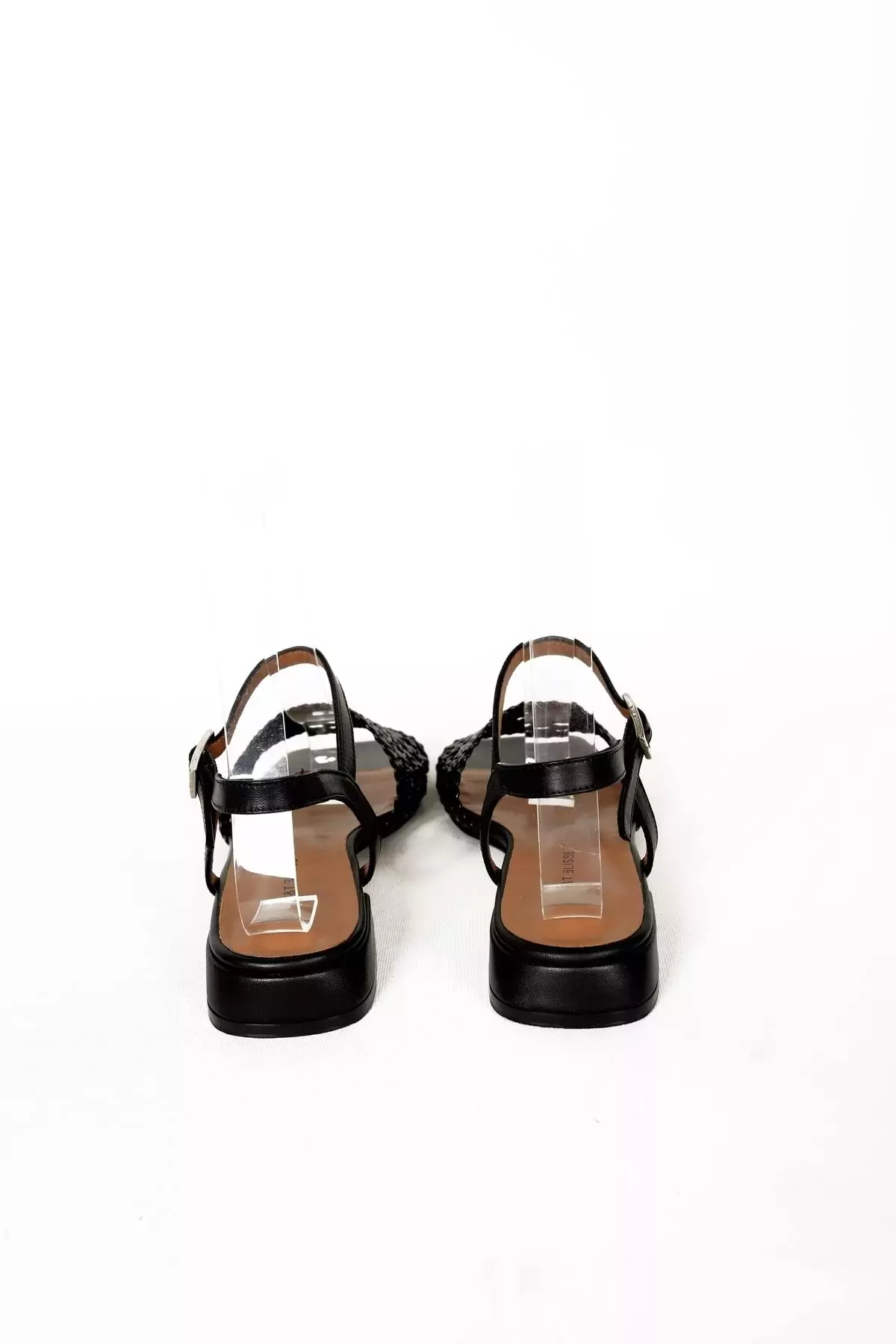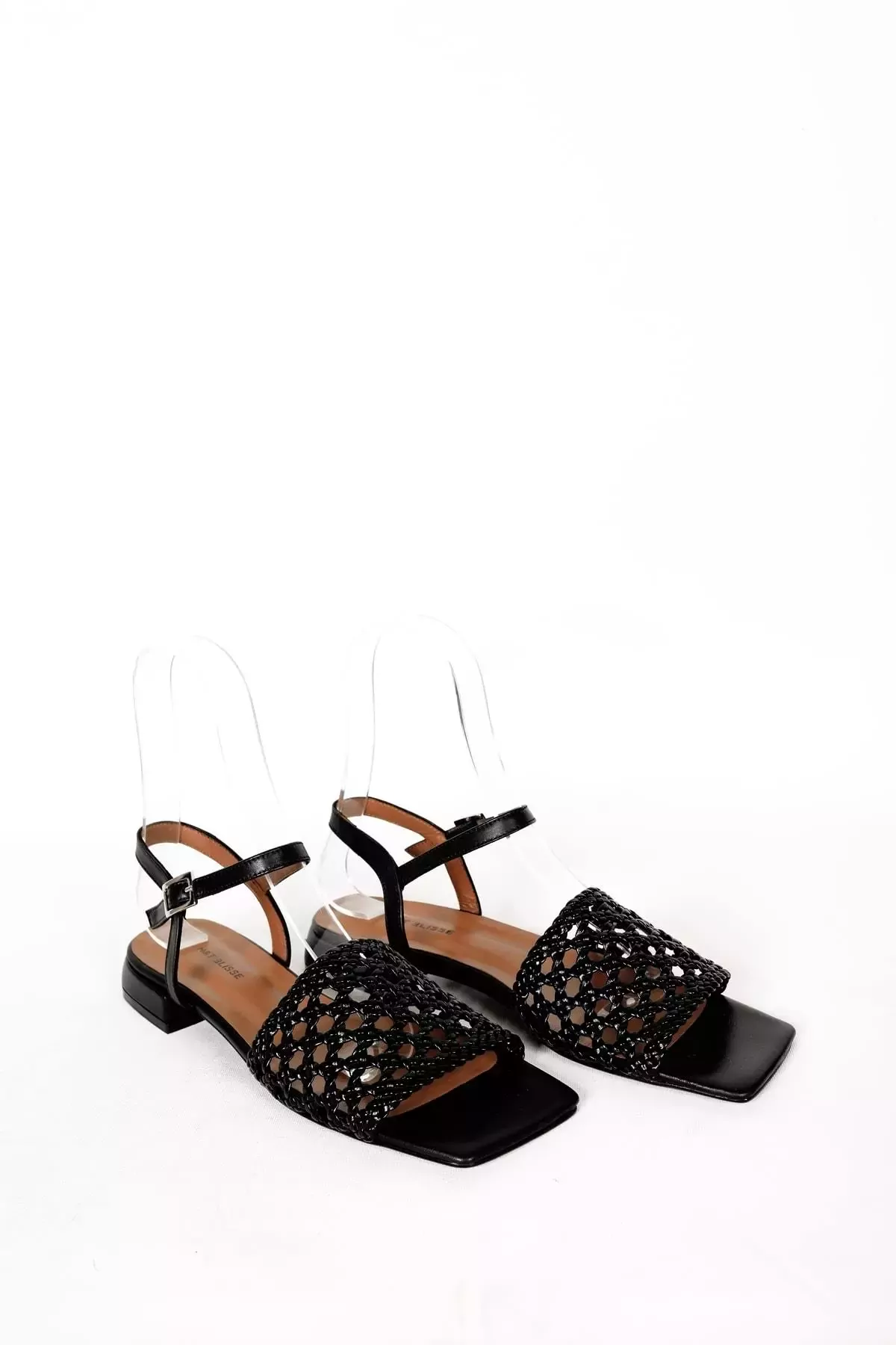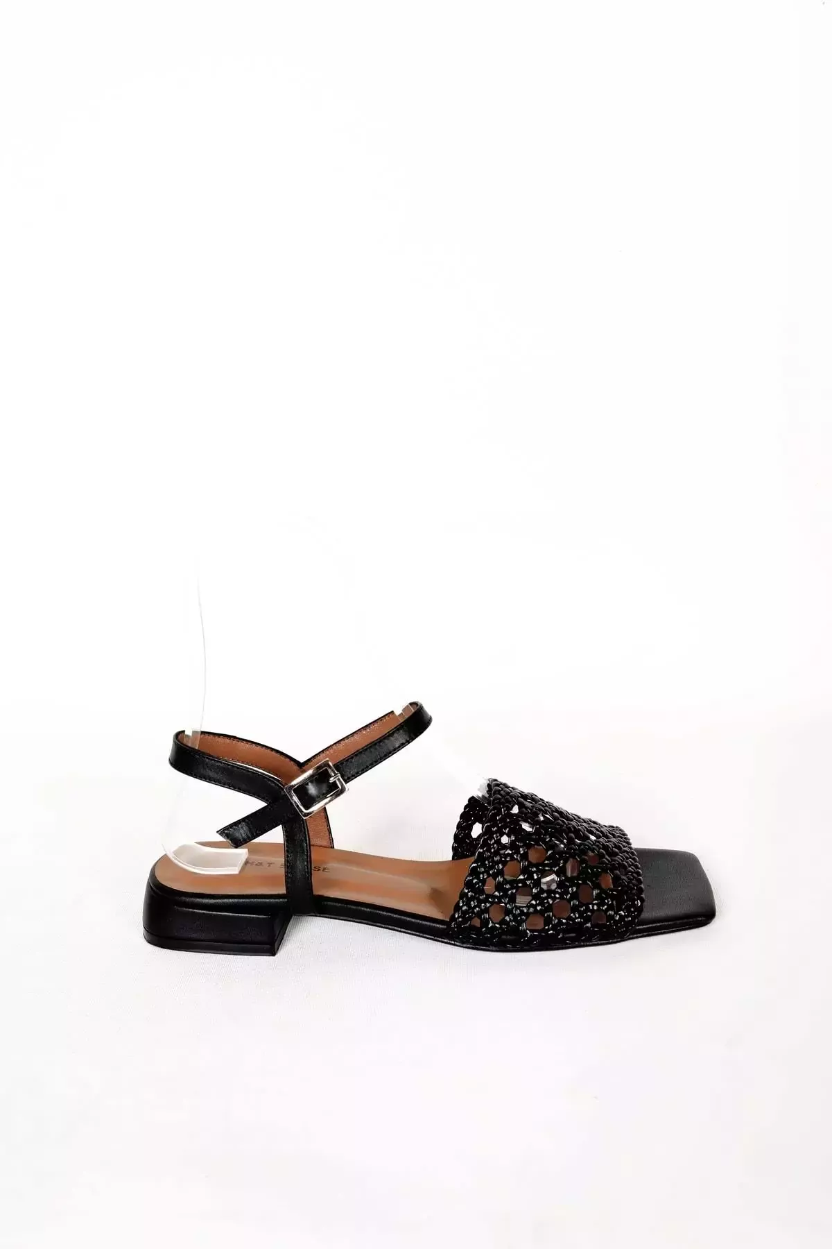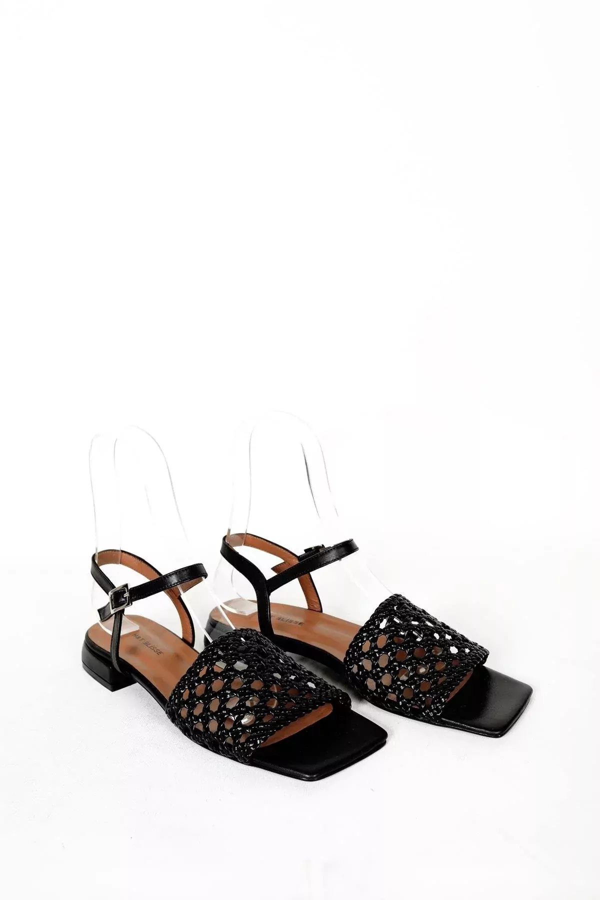 Kadın Bej Alçak Topuklu Örgülü Sandalet