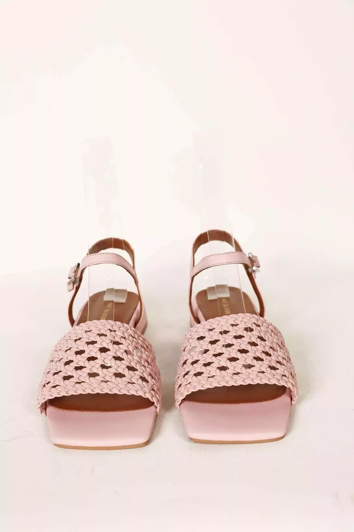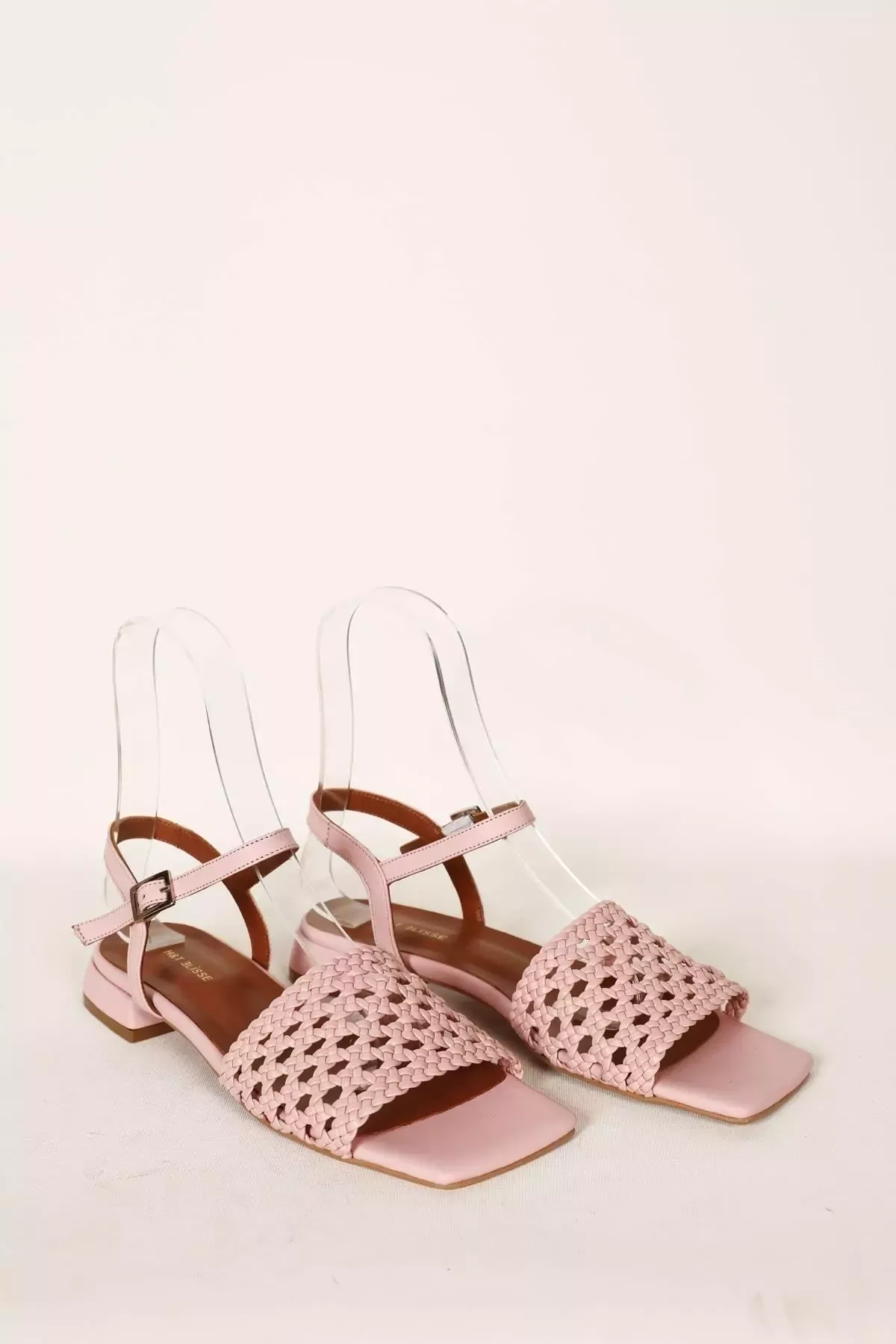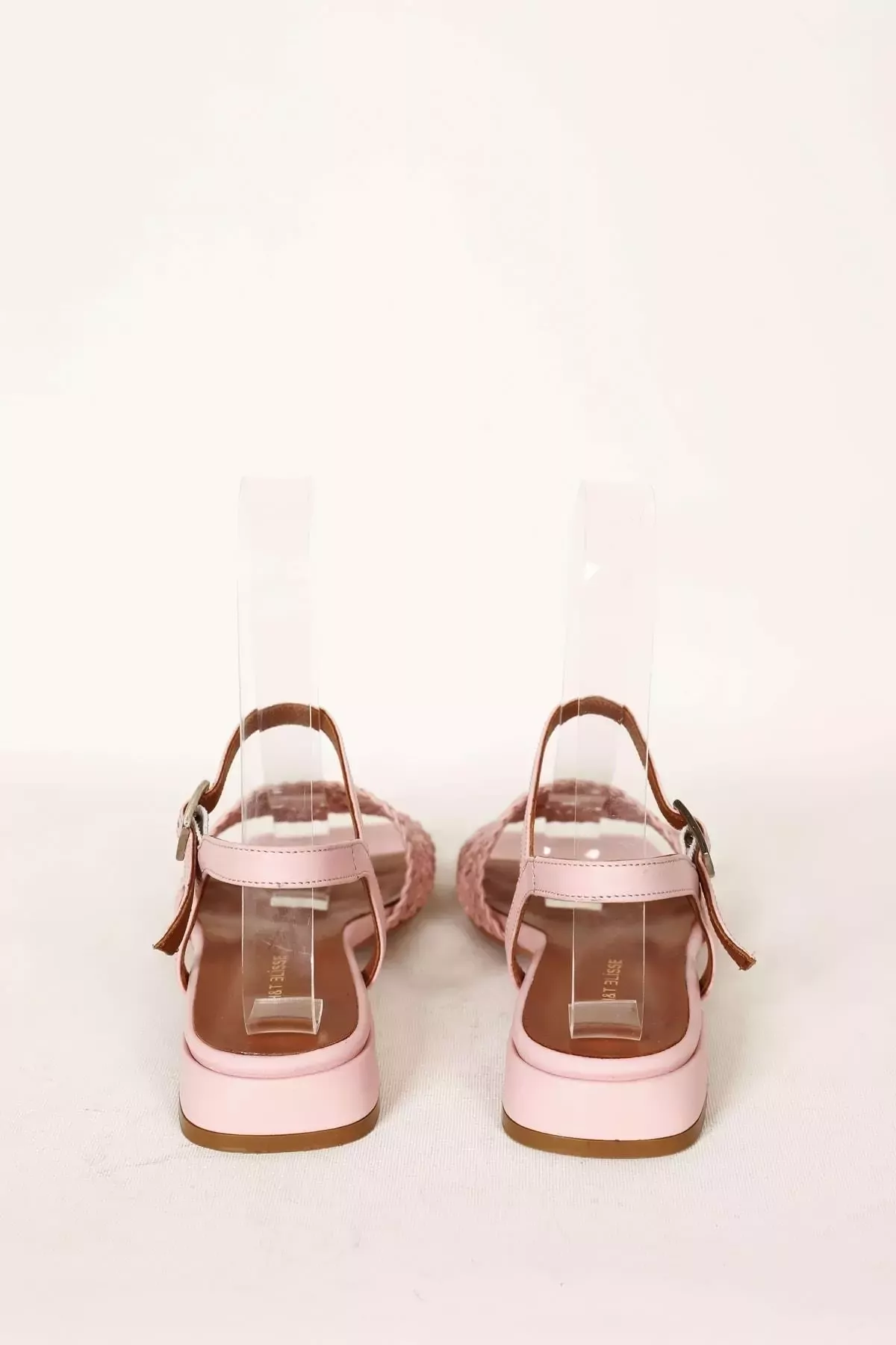 Kadın Bej Alçak Topuklu Örgülü Sandalet