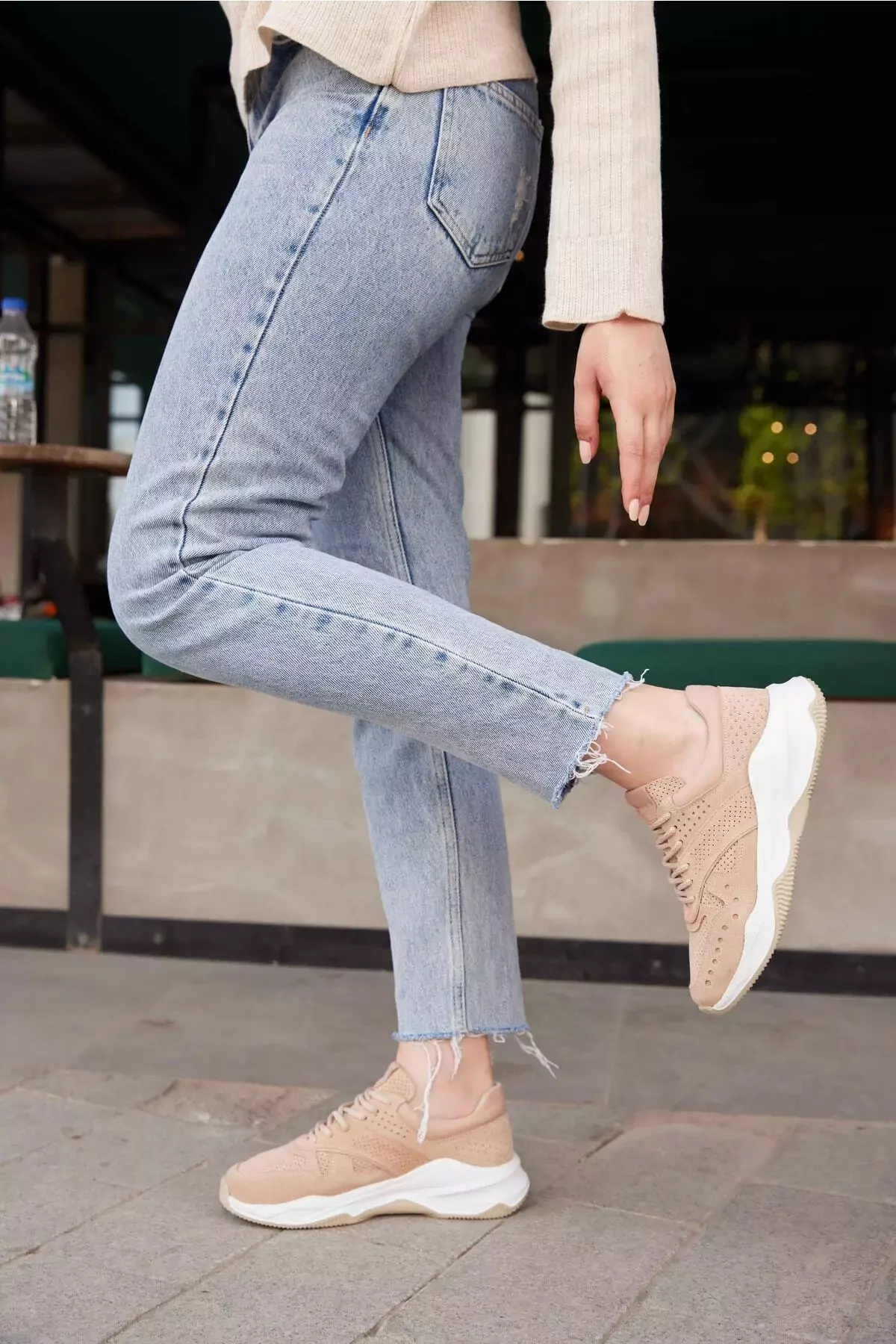 Kadın Bej Süet Hakiki Deri Spor Sneaker