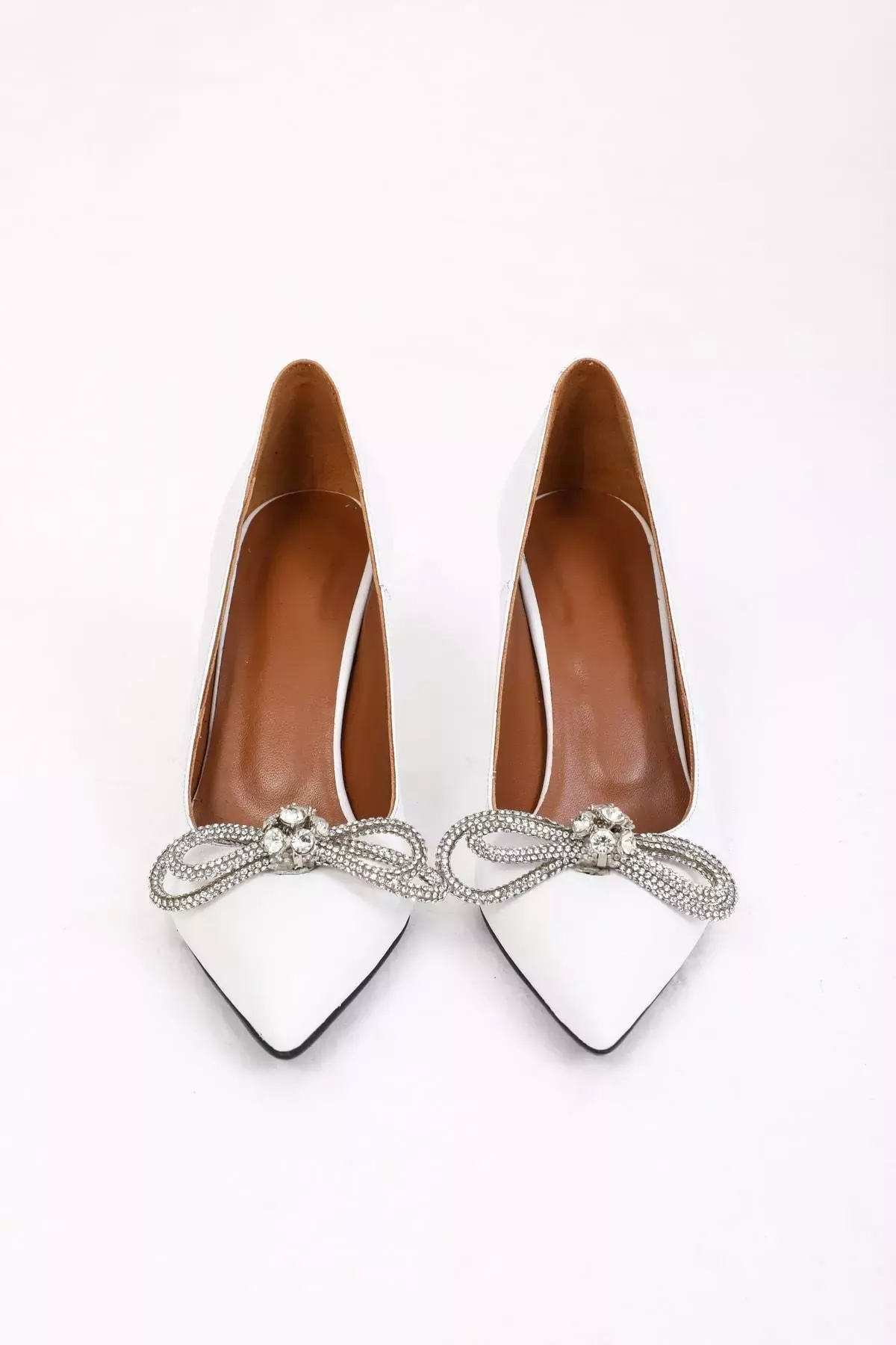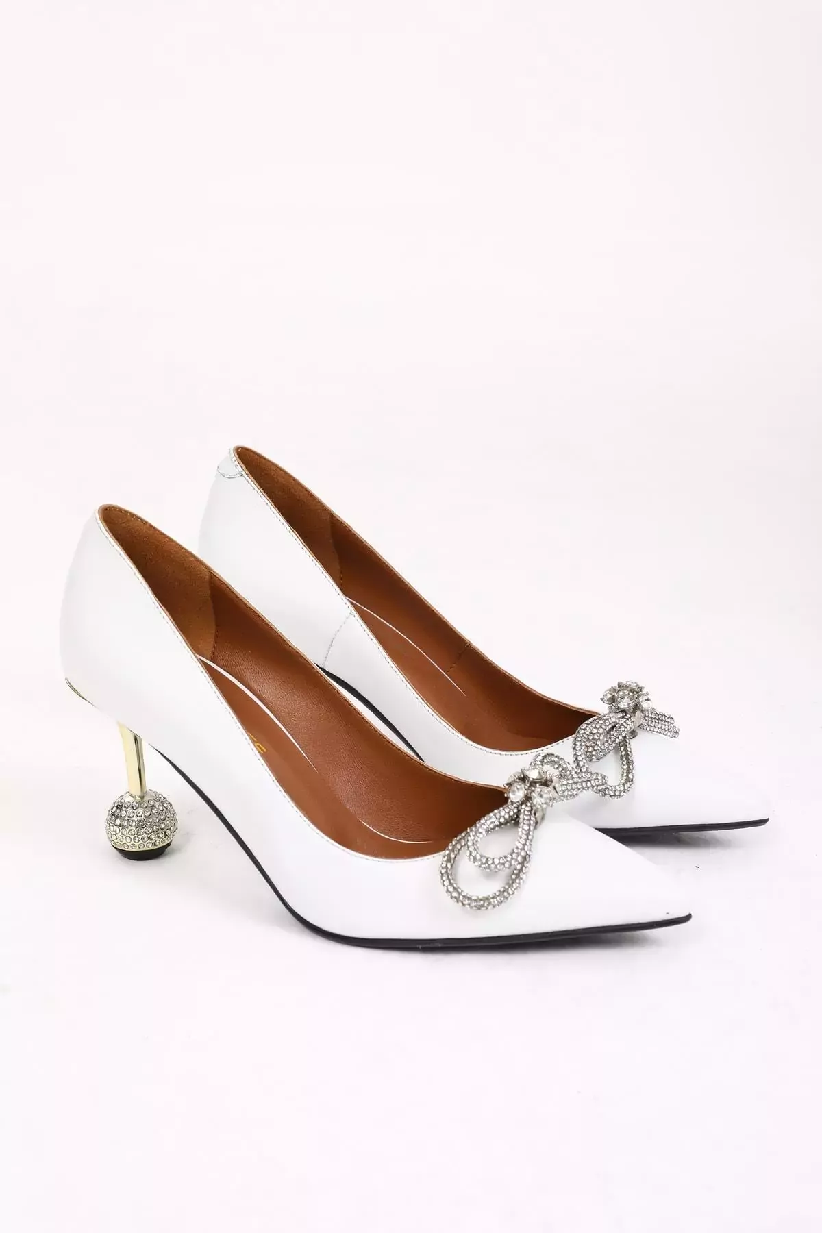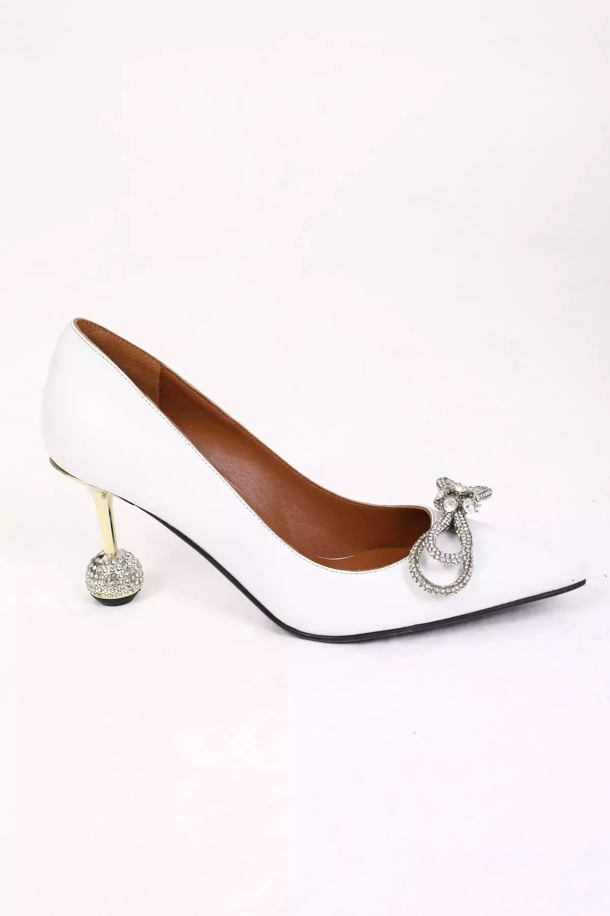 Kadın Beyaz Deri Topuk Ve Aksesuar Detaylı Ayakkabı