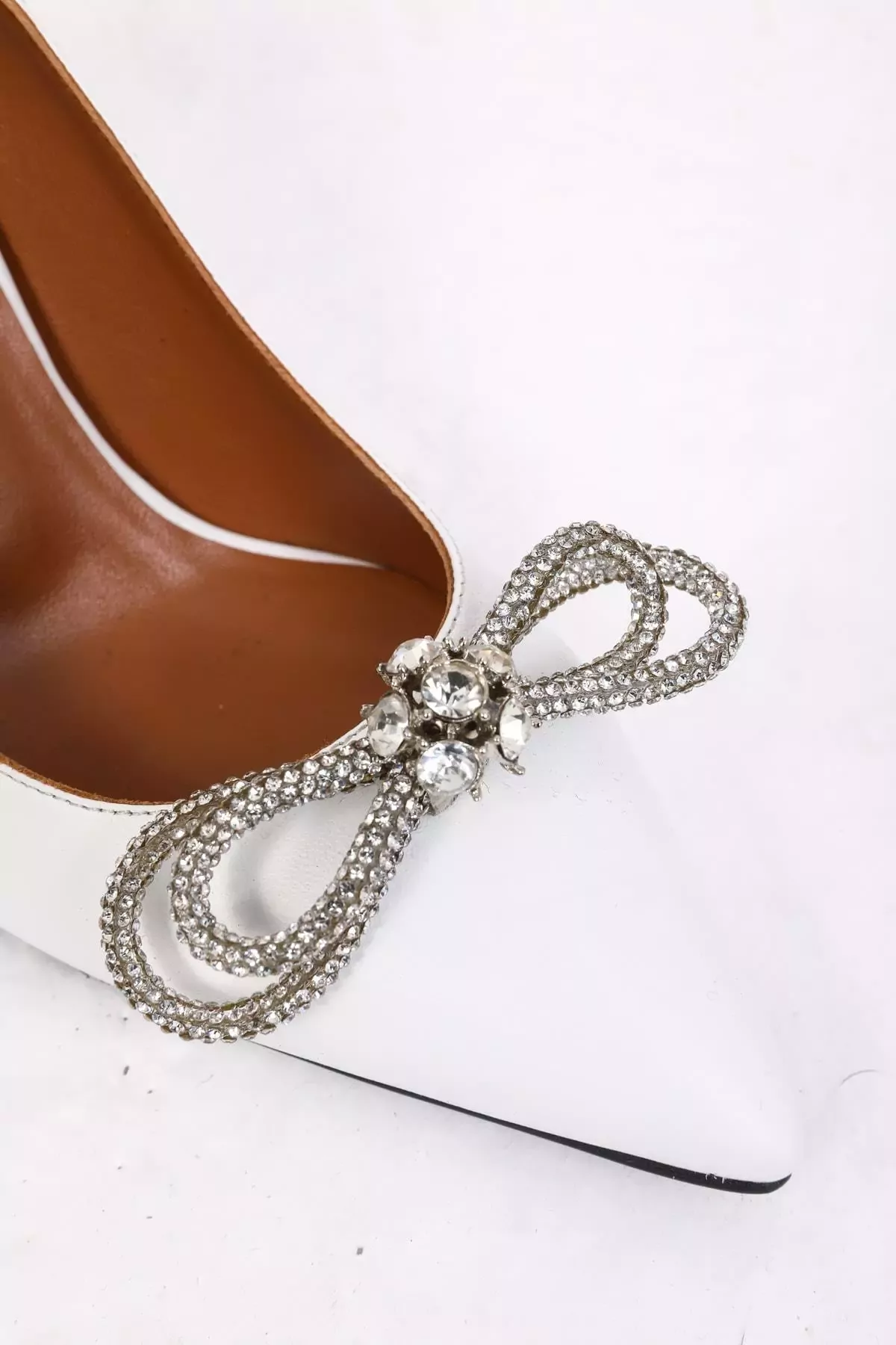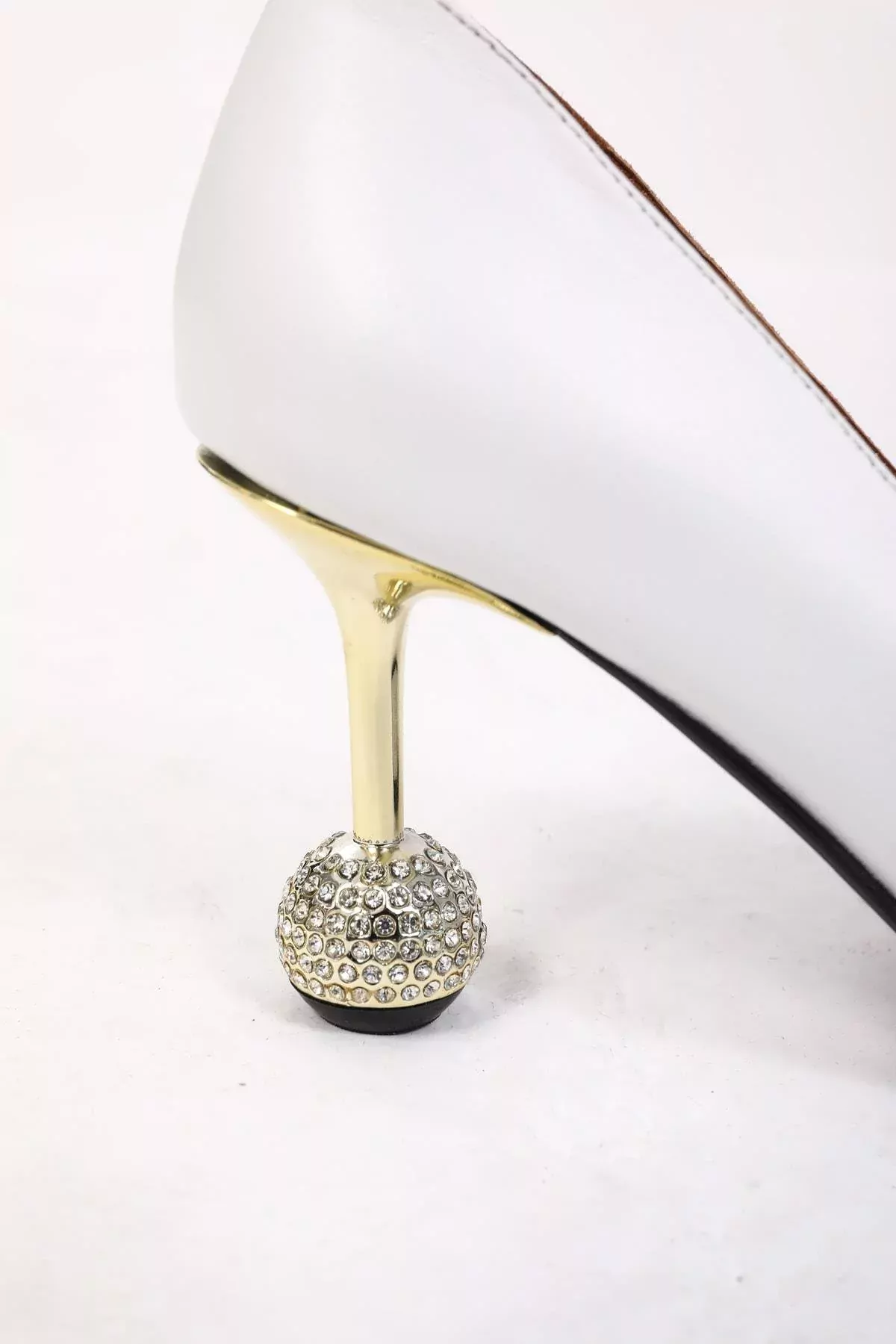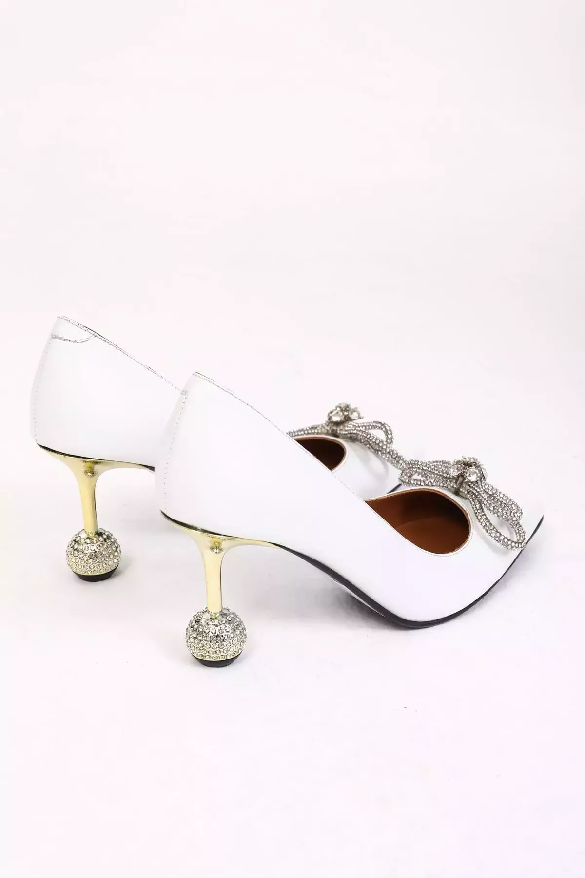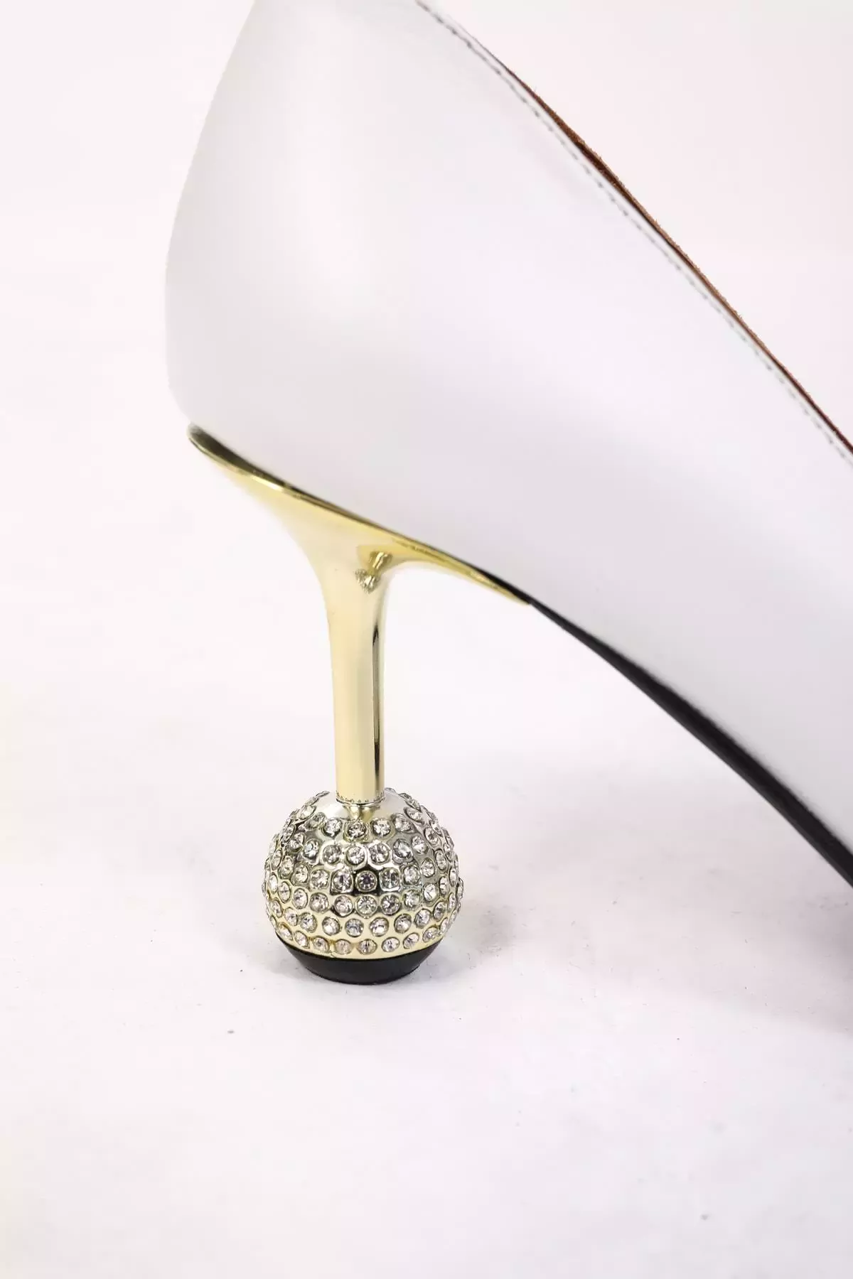Kadın Beyaz Deri Topuk Ve Aksesuar Detaylı Ayakkabı