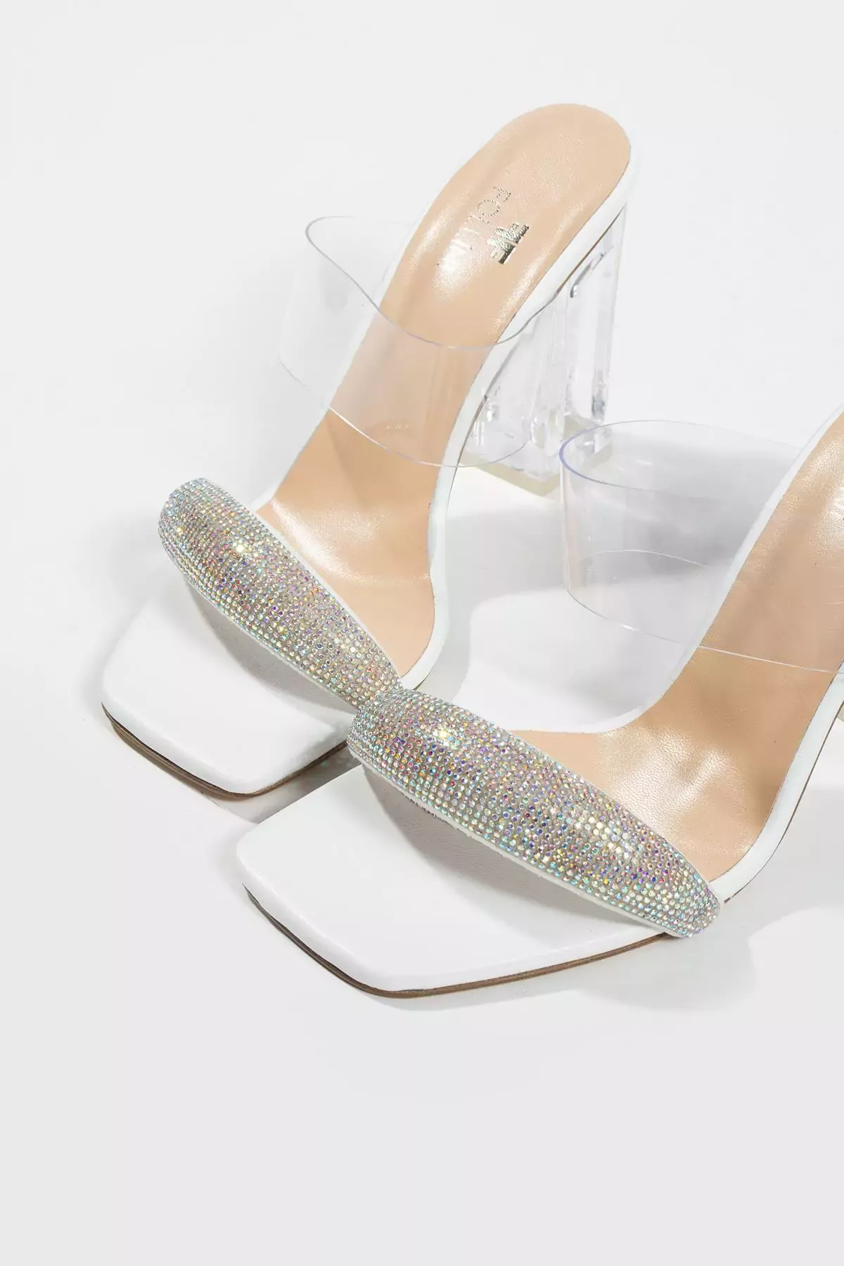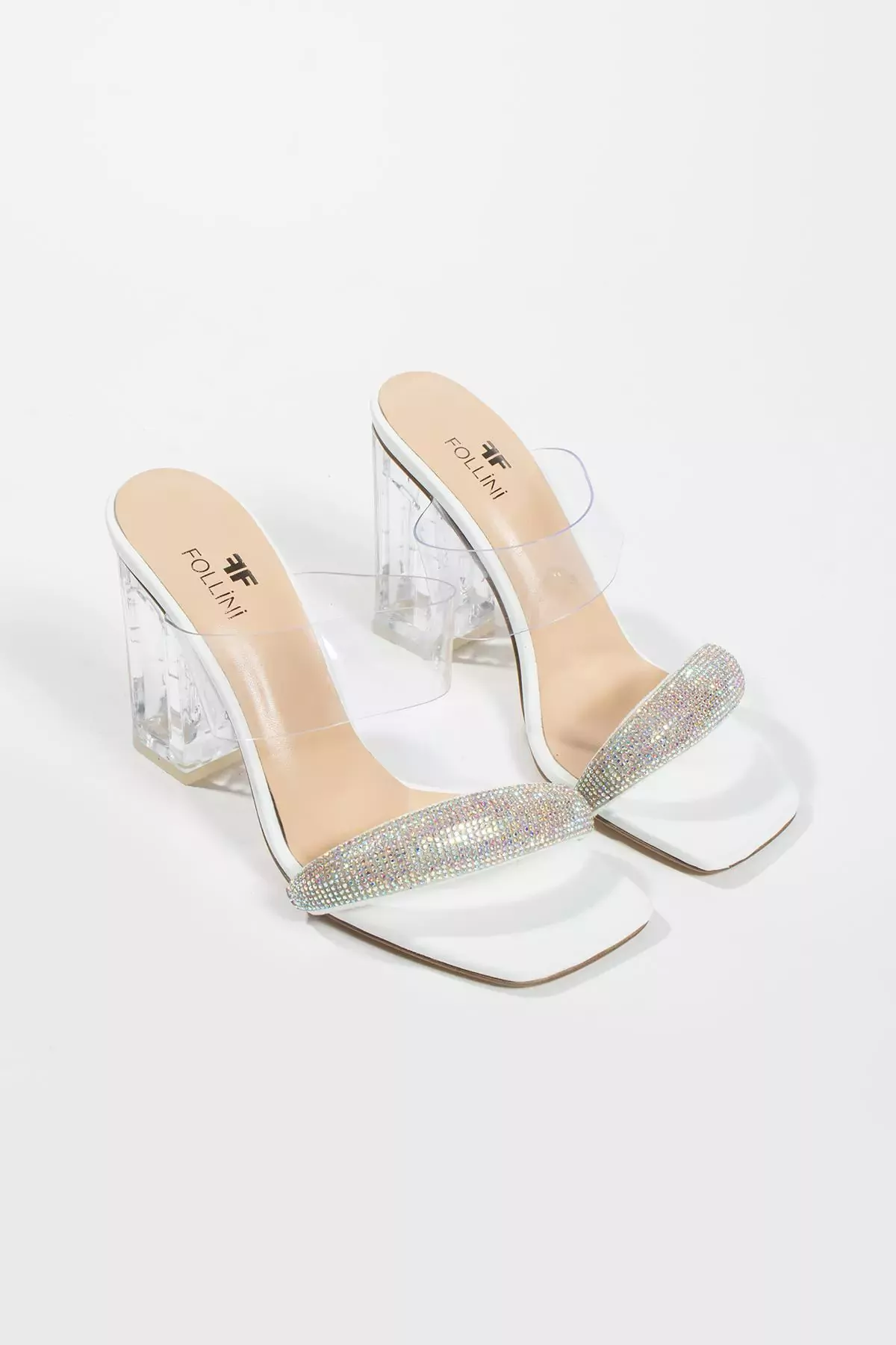 Kadın Beyaz Hakiki Deri Taşlı Terlik