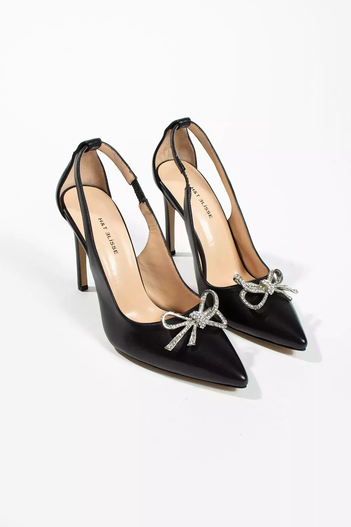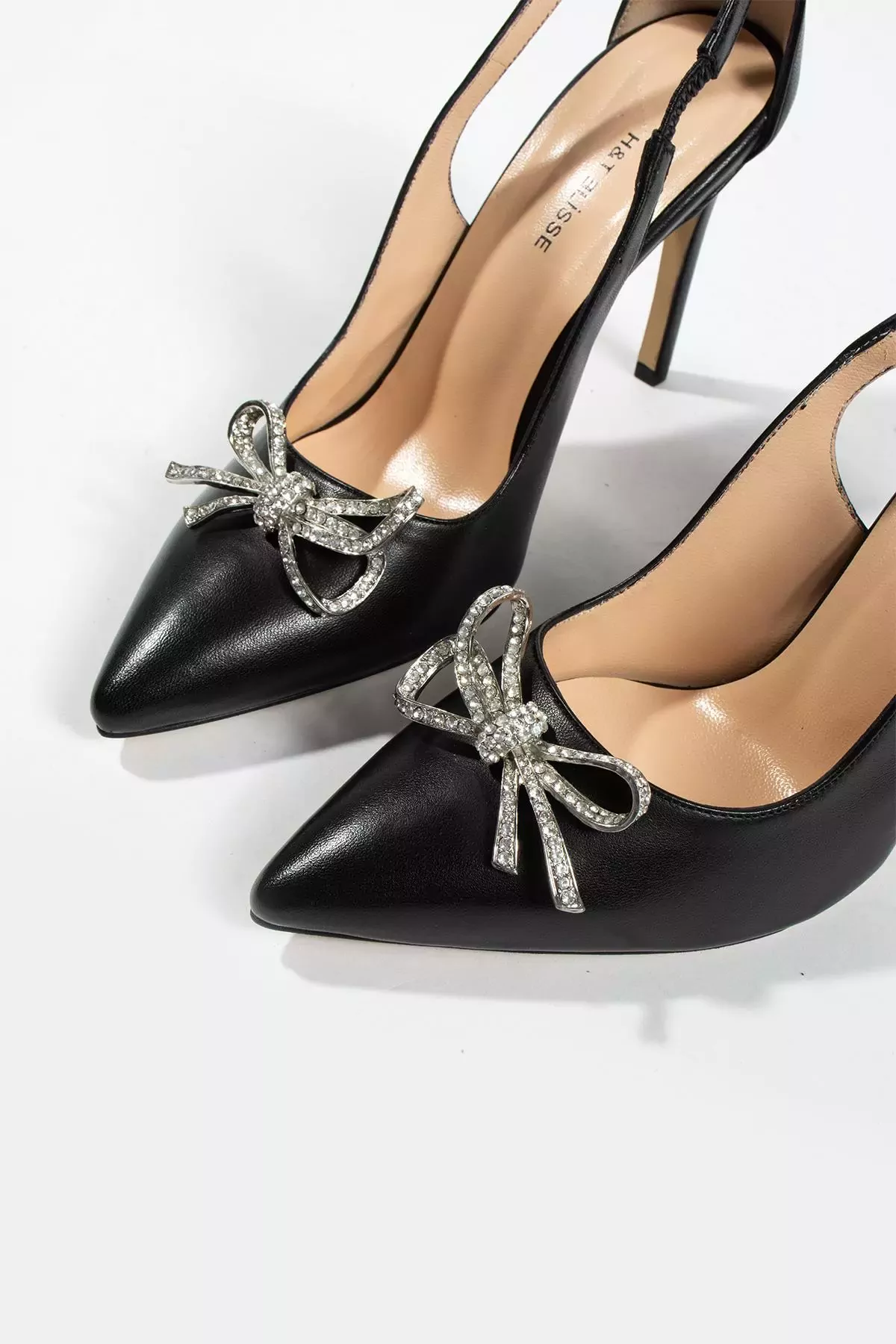 Kadın Deri Ayakkabı Aksesuar Detaylı Topuklu Siyah