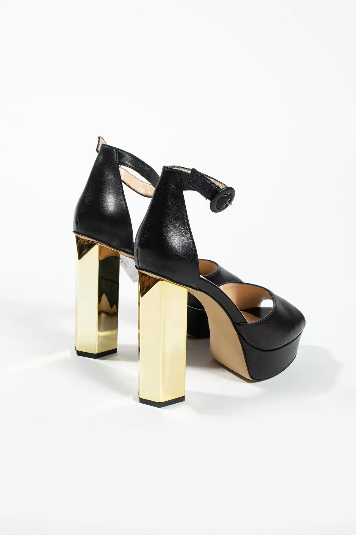 Kadın Deri Ayakkabı Platformlu Topuklu Siyah
