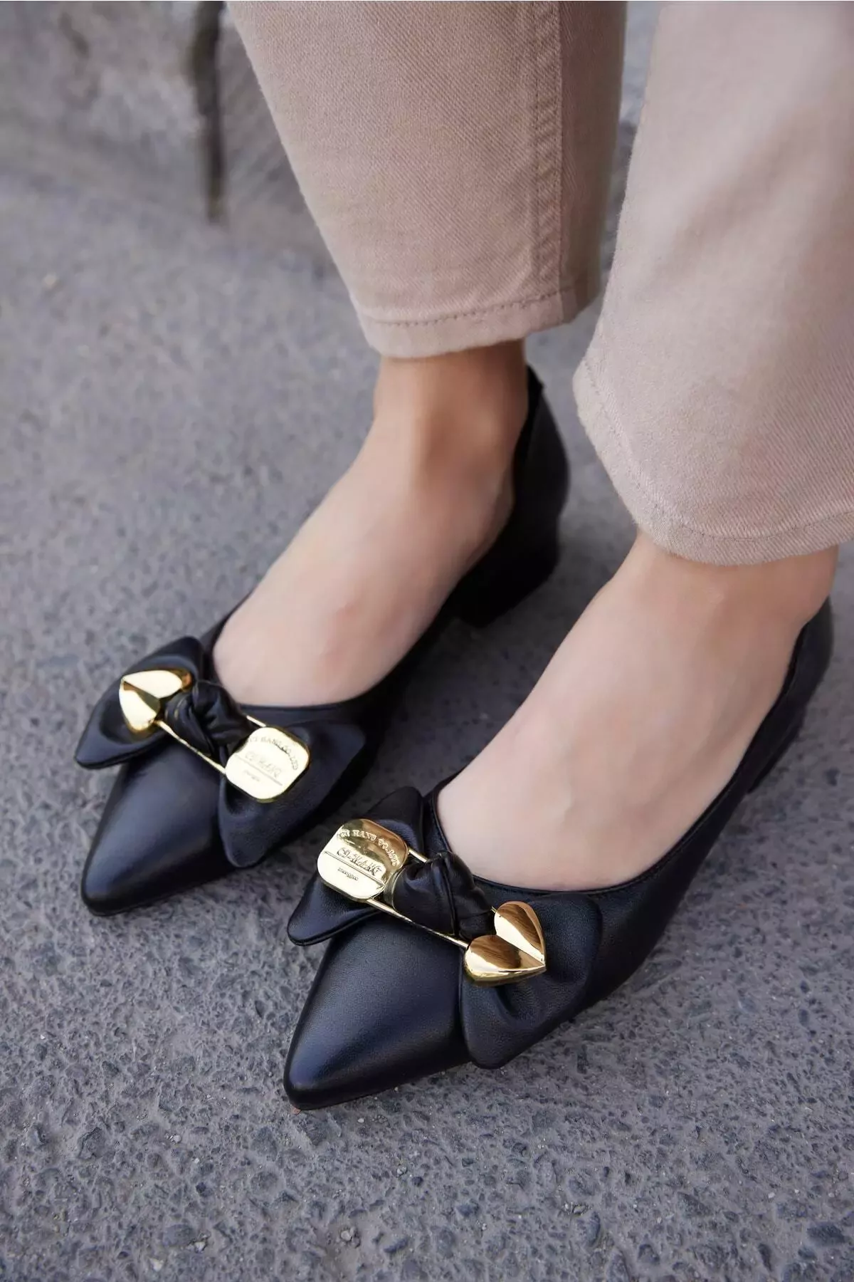 Kadın Deri Babet Aksesuar Detaylı Siyah