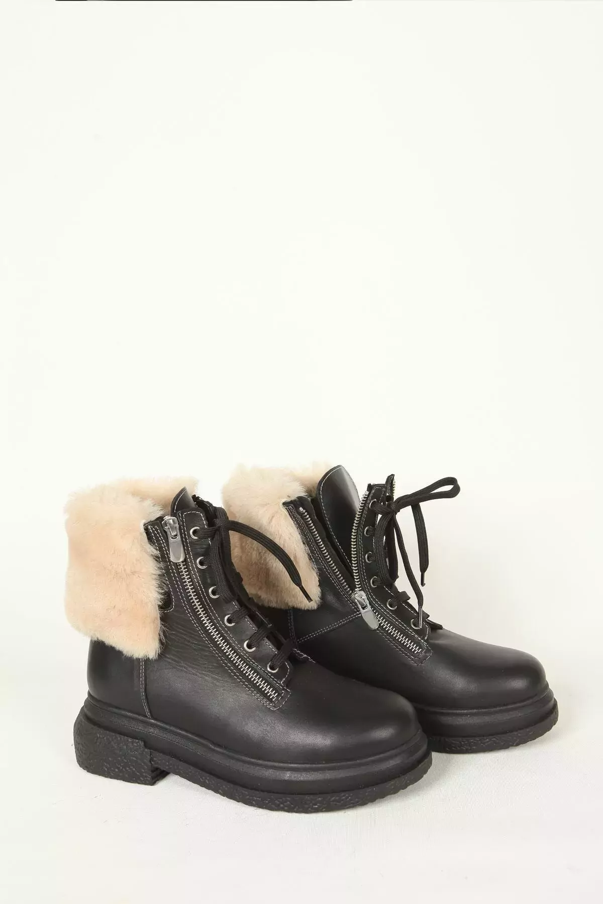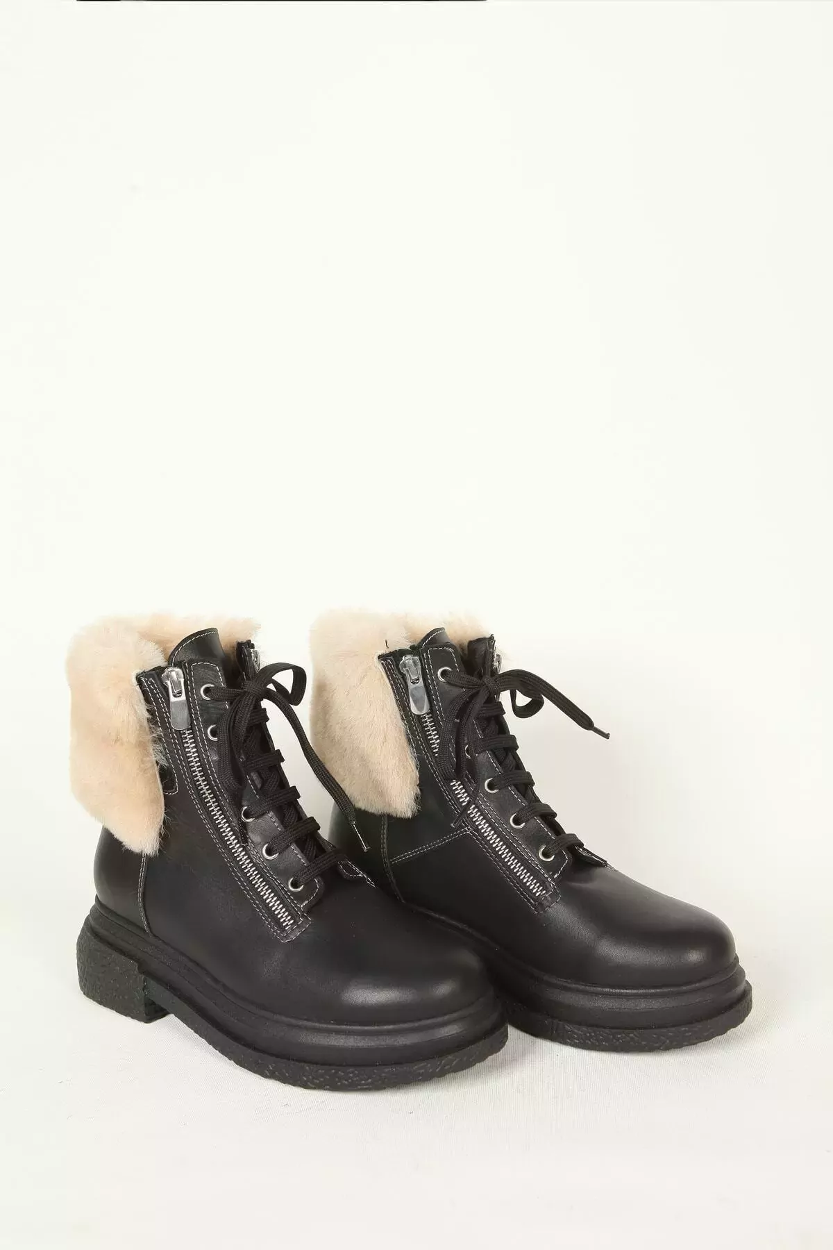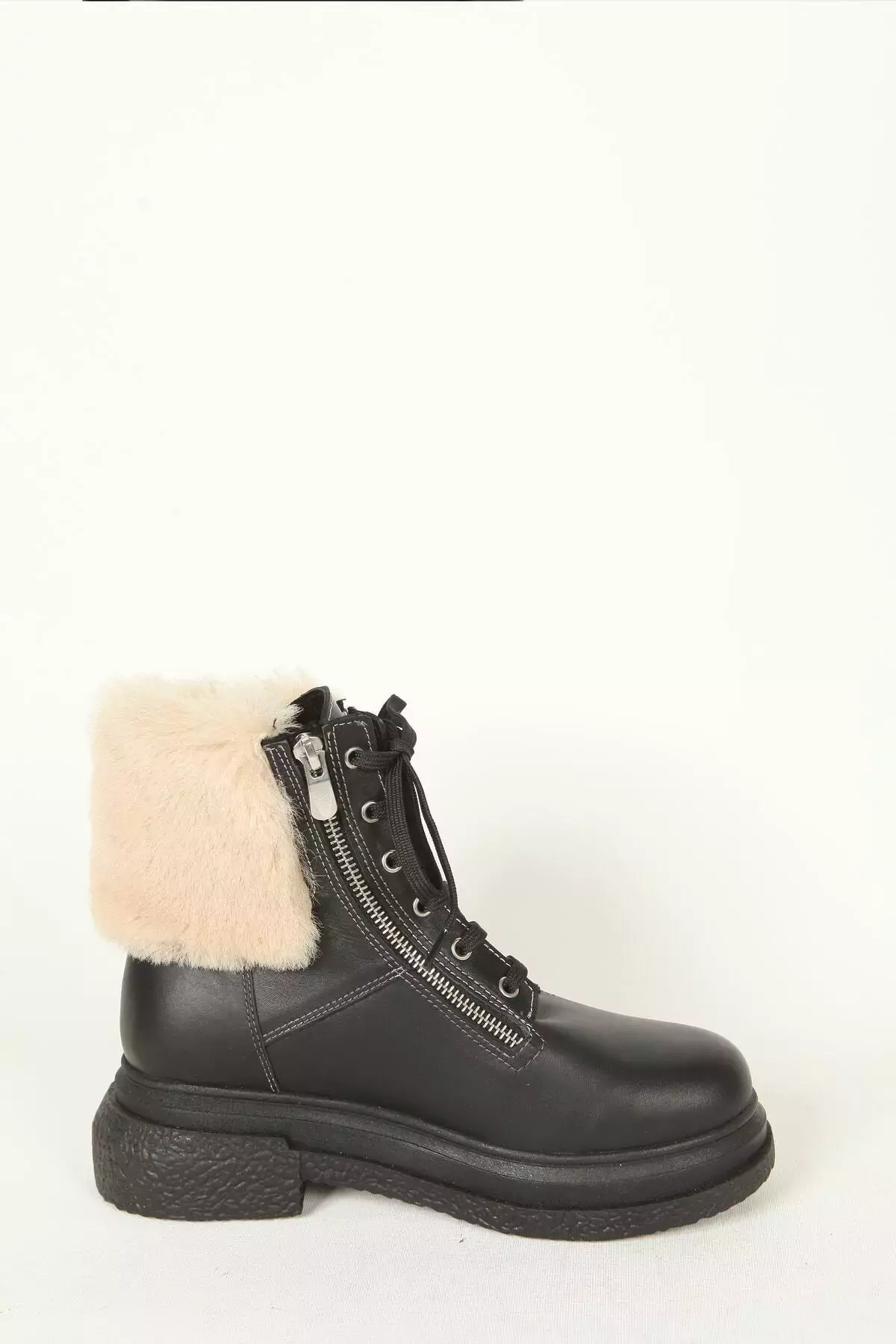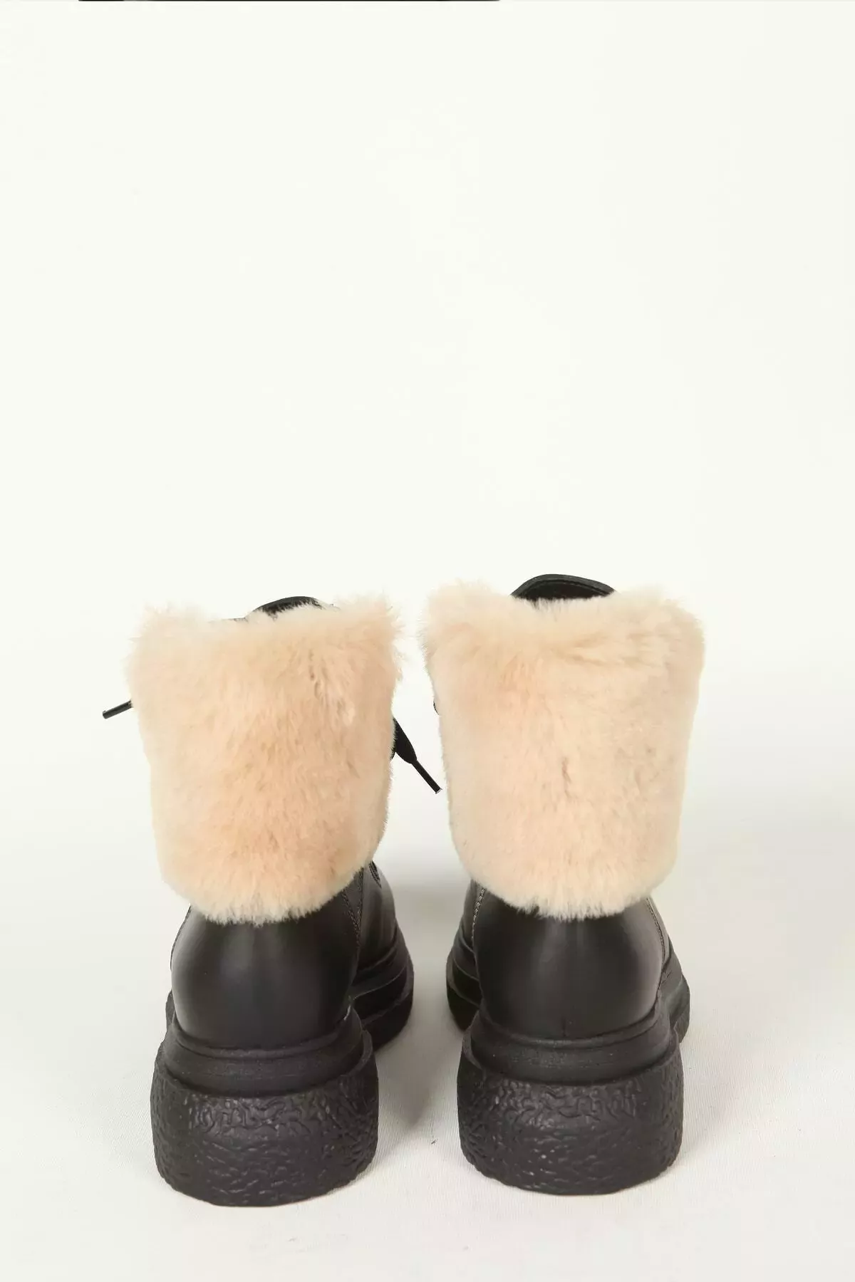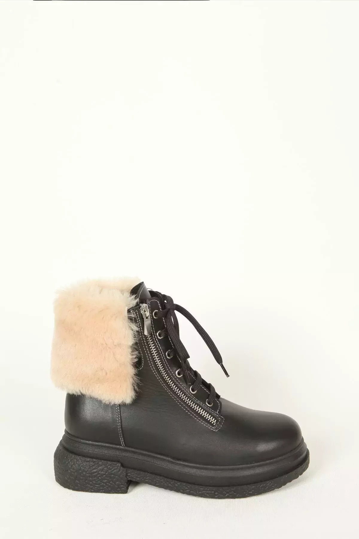 Kadın Deri Bot Kürk Detaylı Siyah