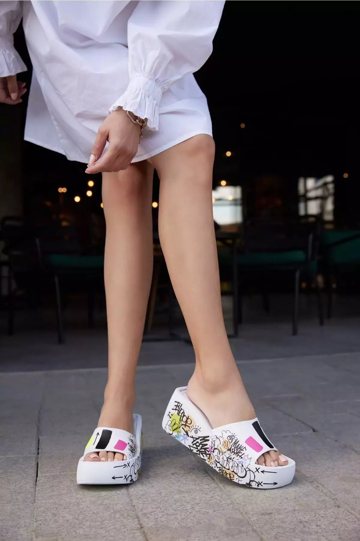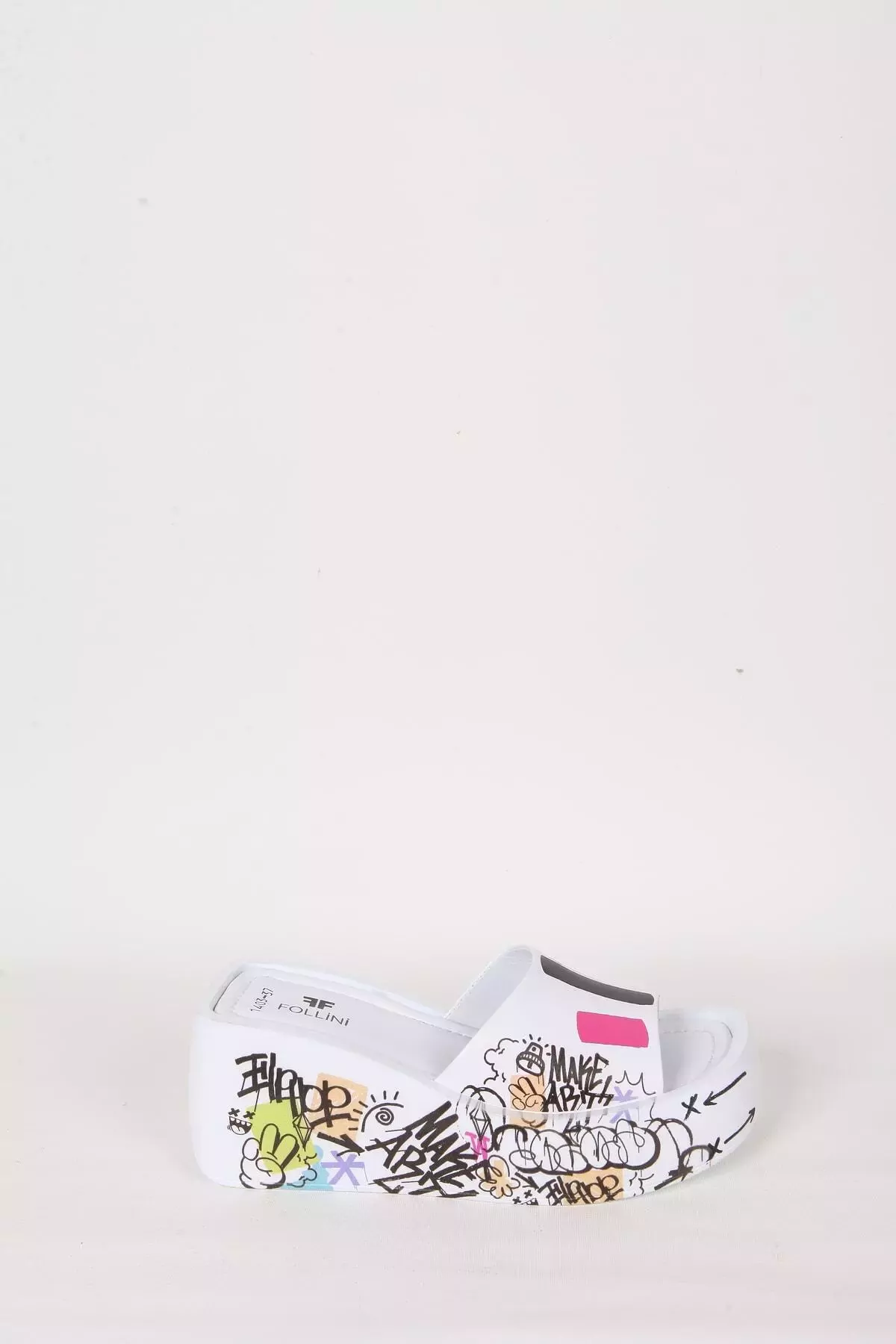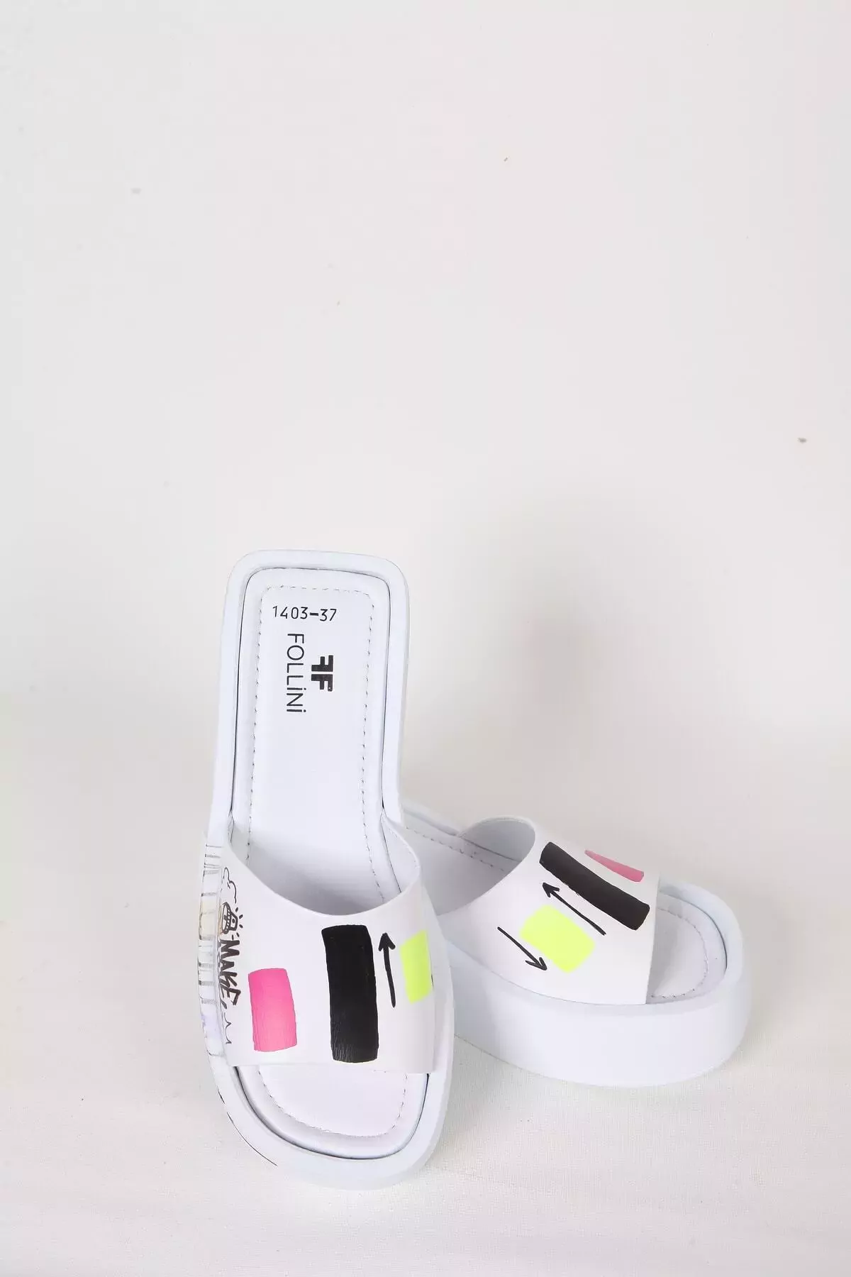 Kadın Deri Terlik Dolgu Topuk Beyaz