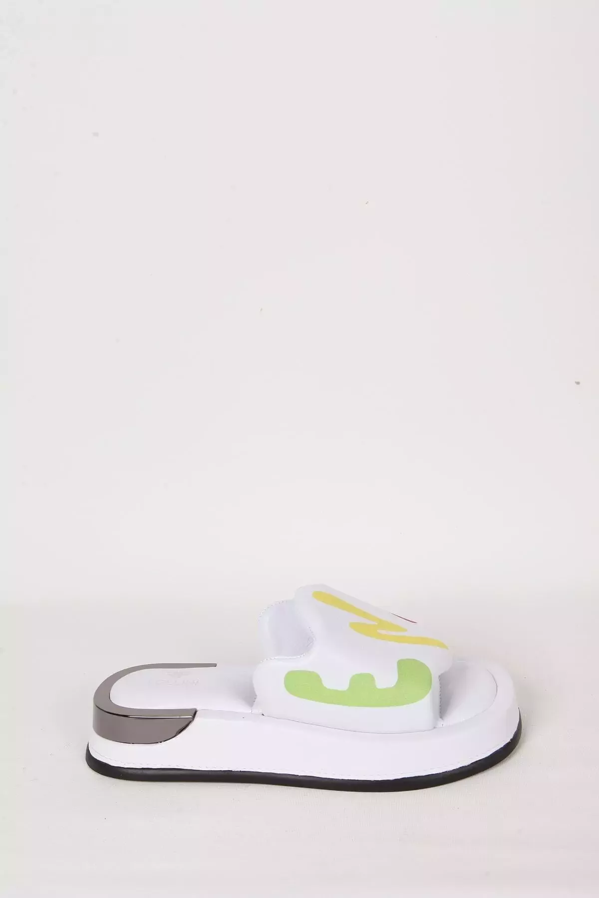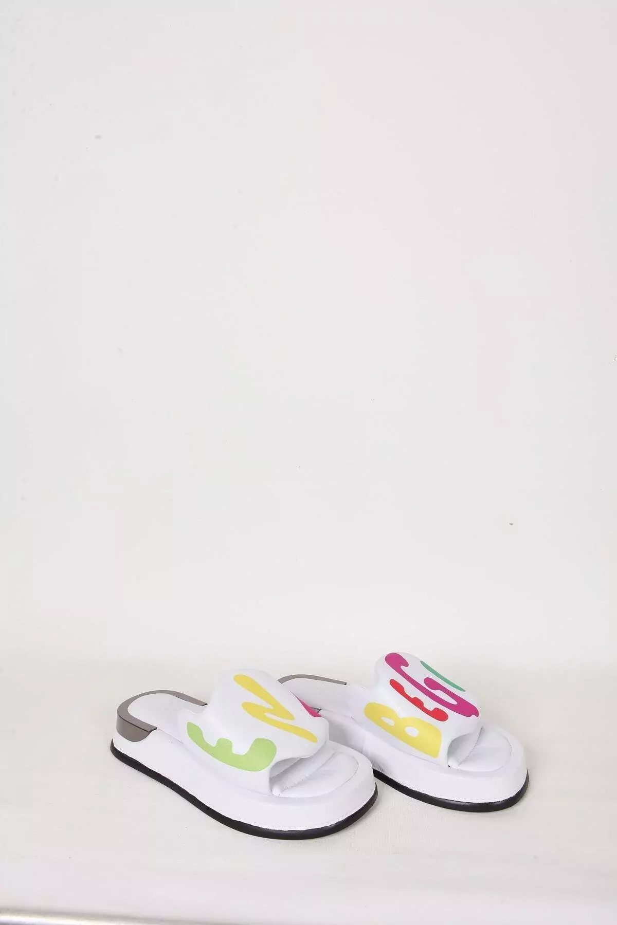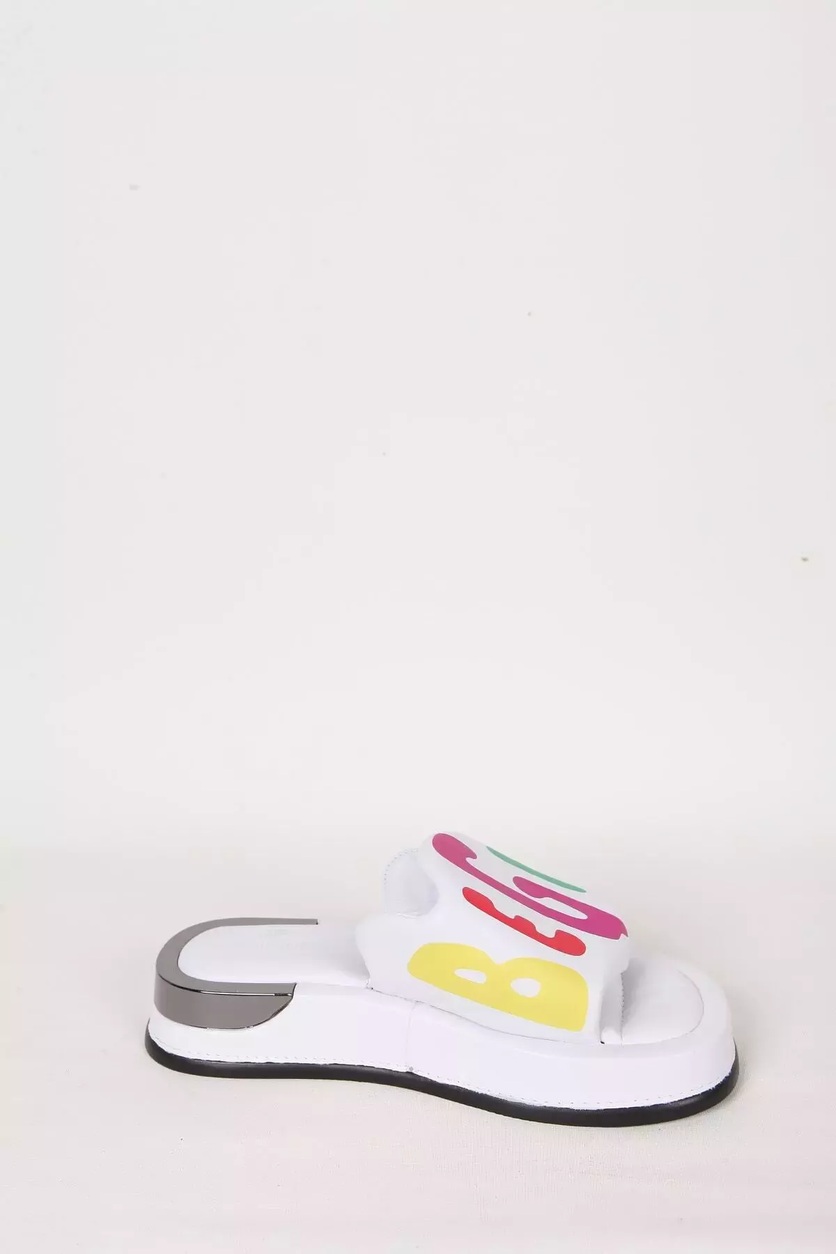 Kadın Deri Terlik Topuk Detaylı Beyaz