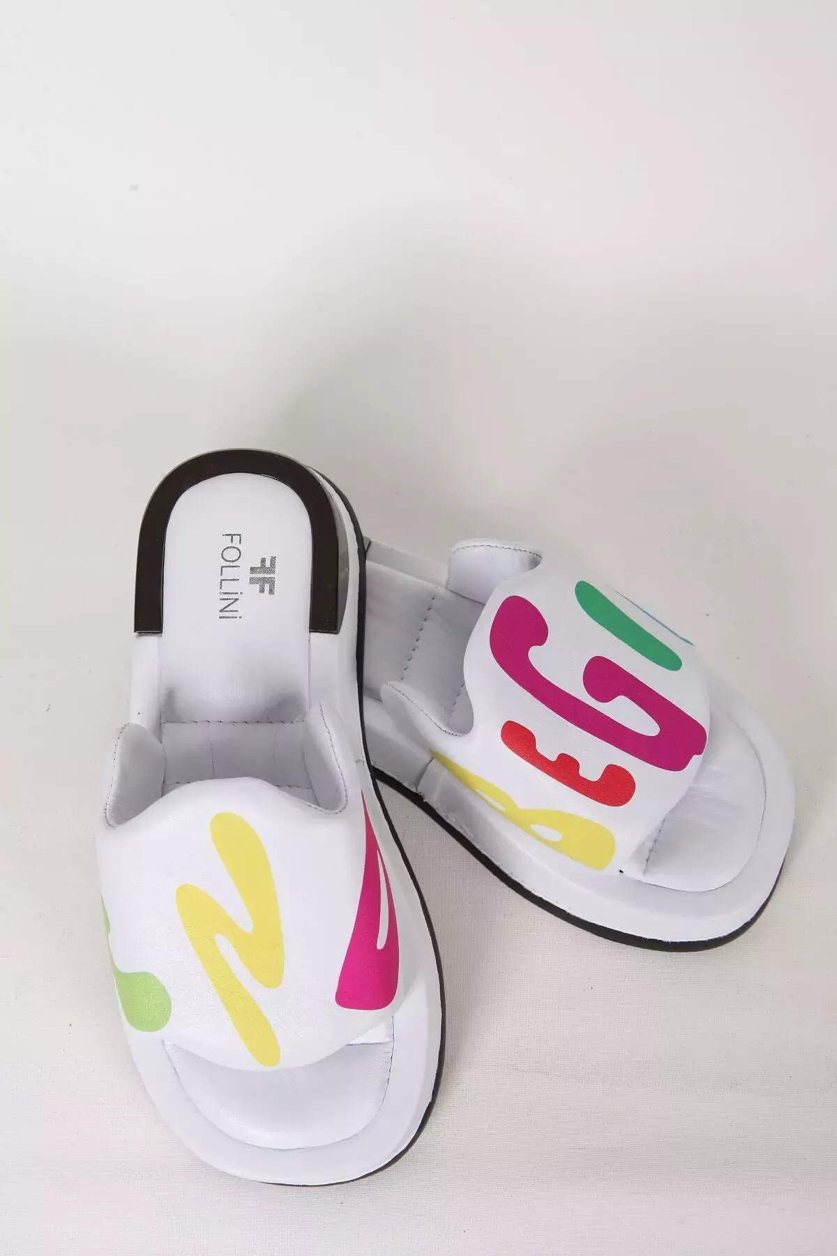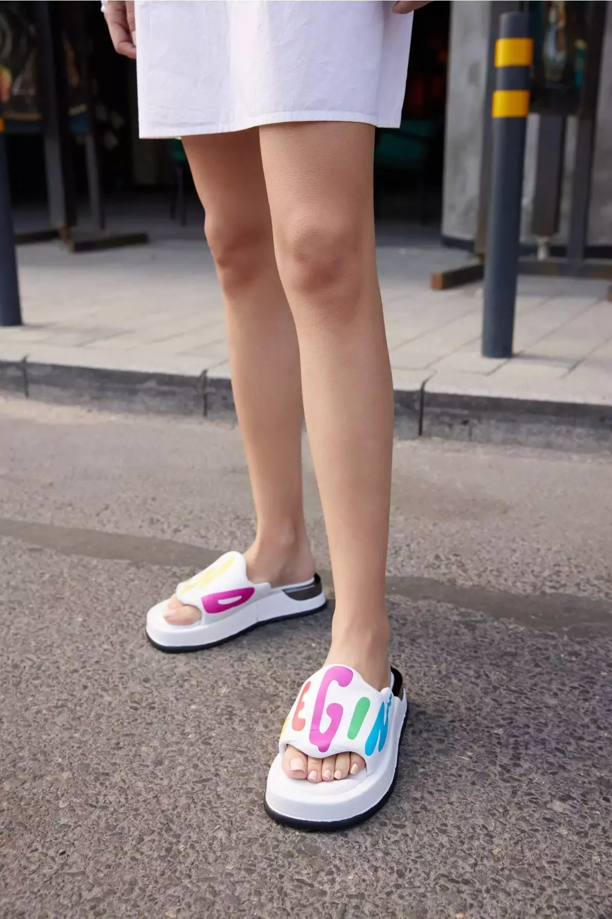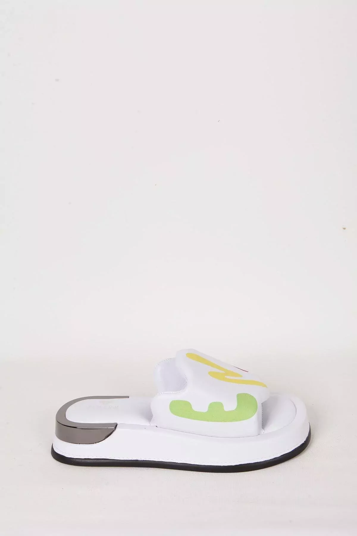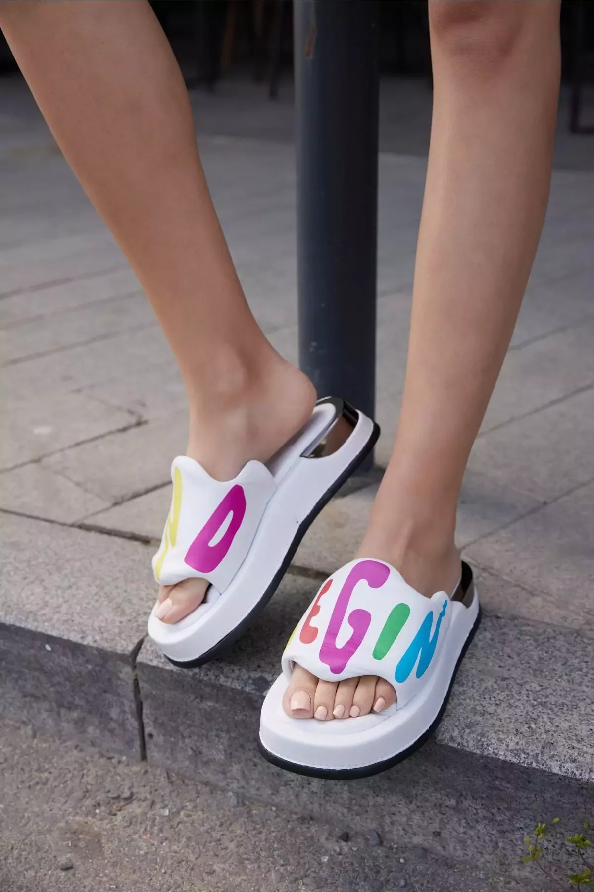 Kadın Deri Terlik Topuk Detaylı Beyaz
