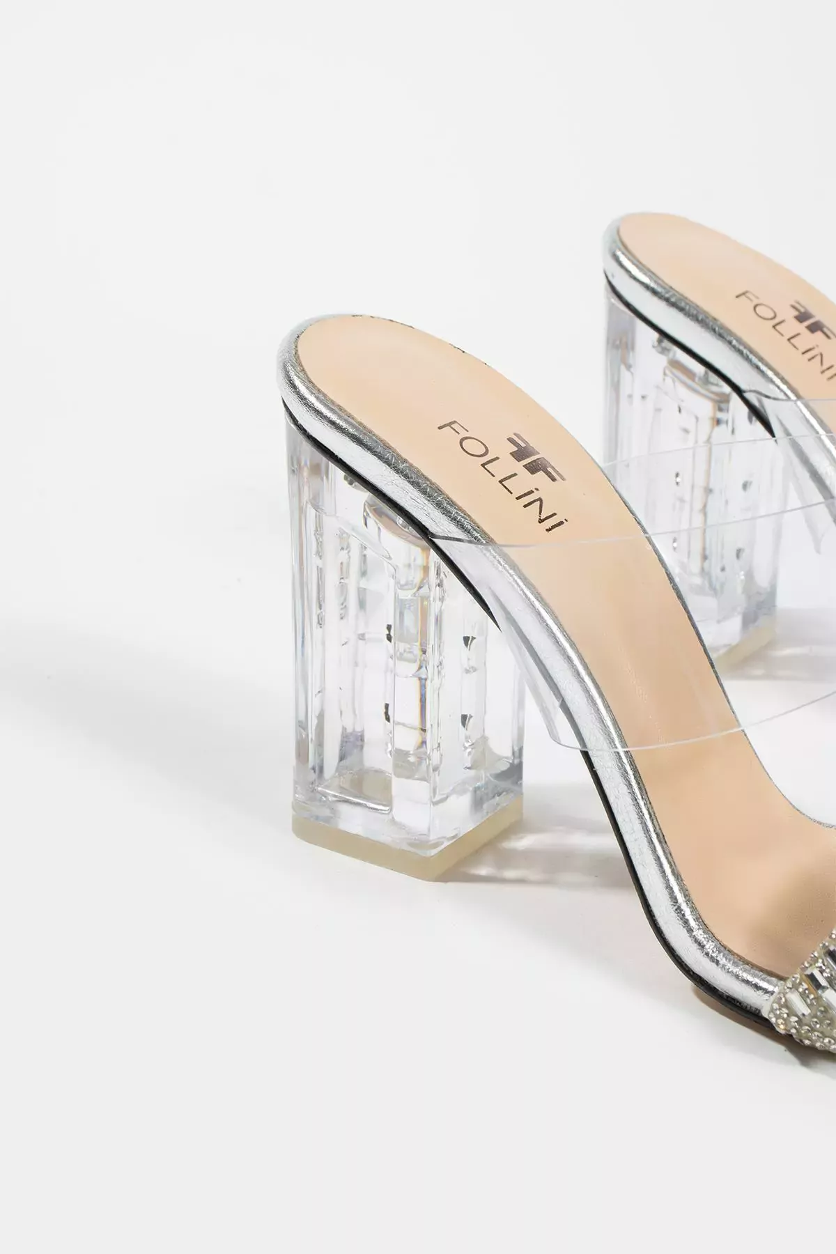 Kadın Gümüş Hakiki Deri Taşlı Terlik
