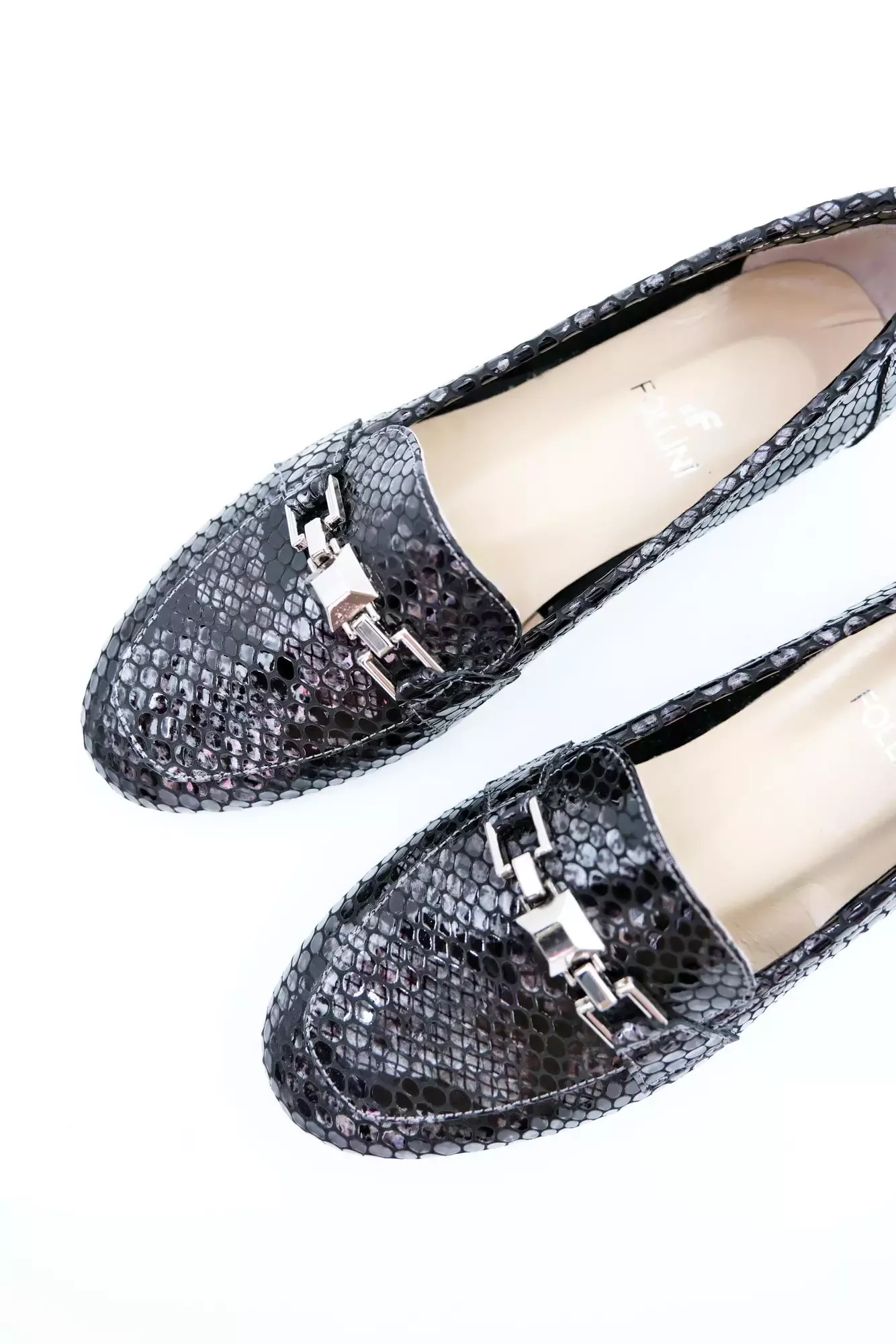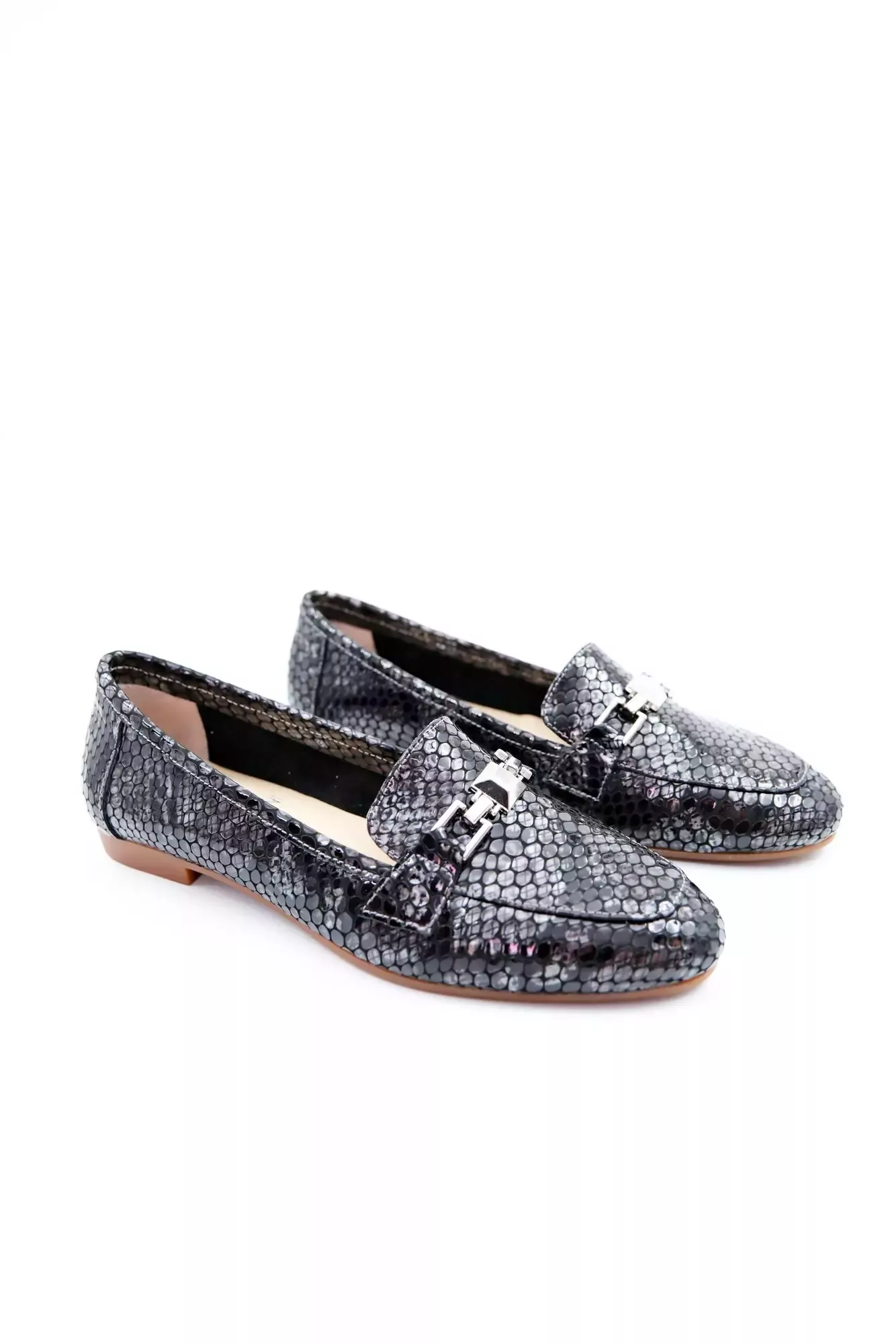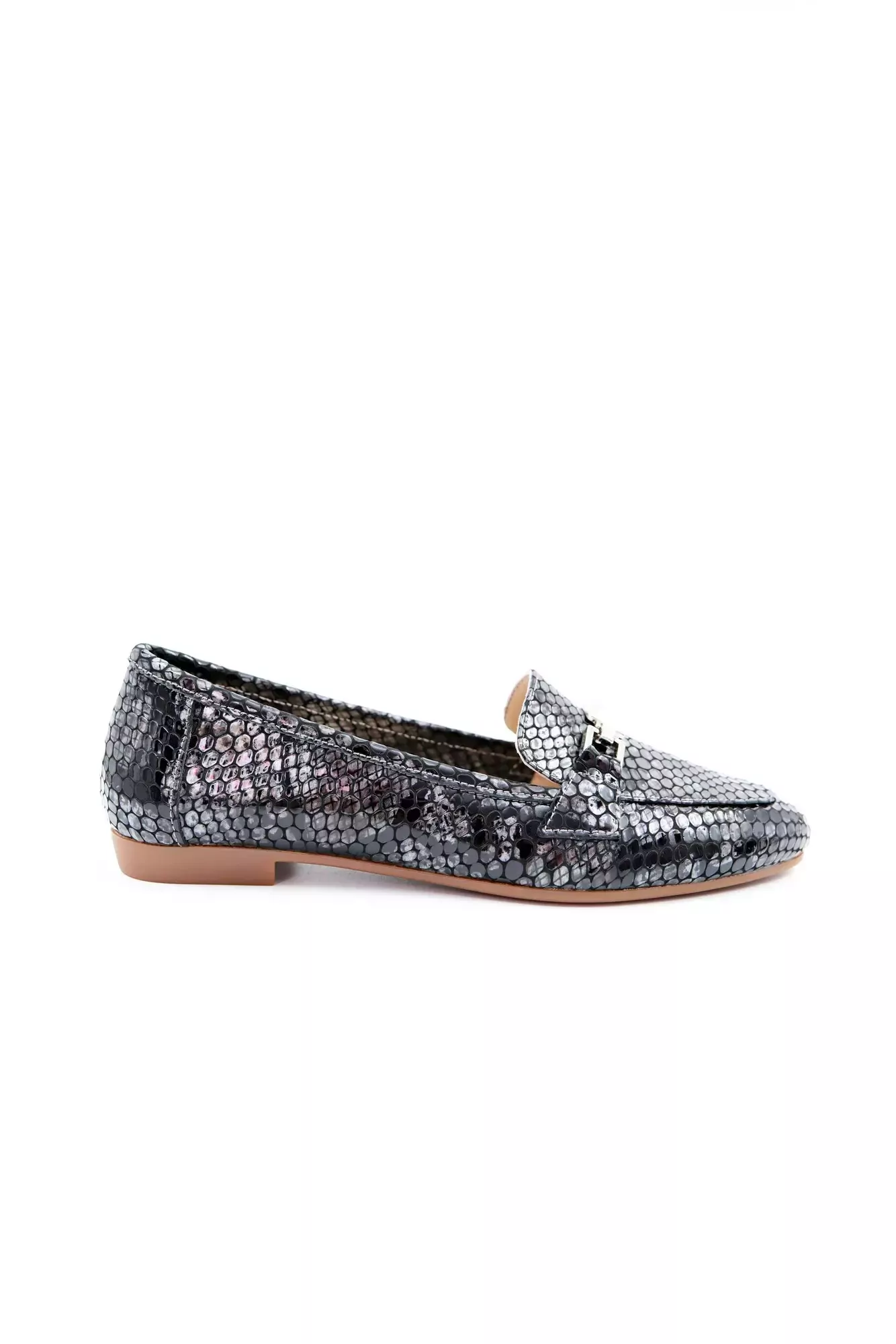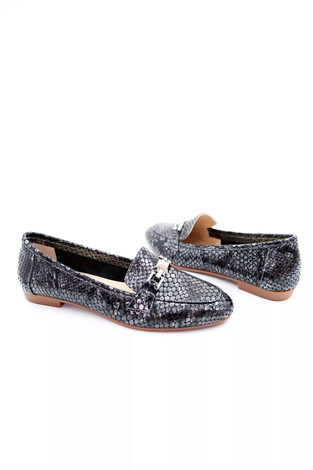 Kadın Hakiki Deri Babet Siyah Gri Rugan