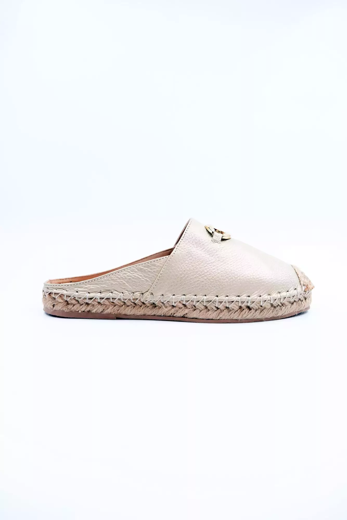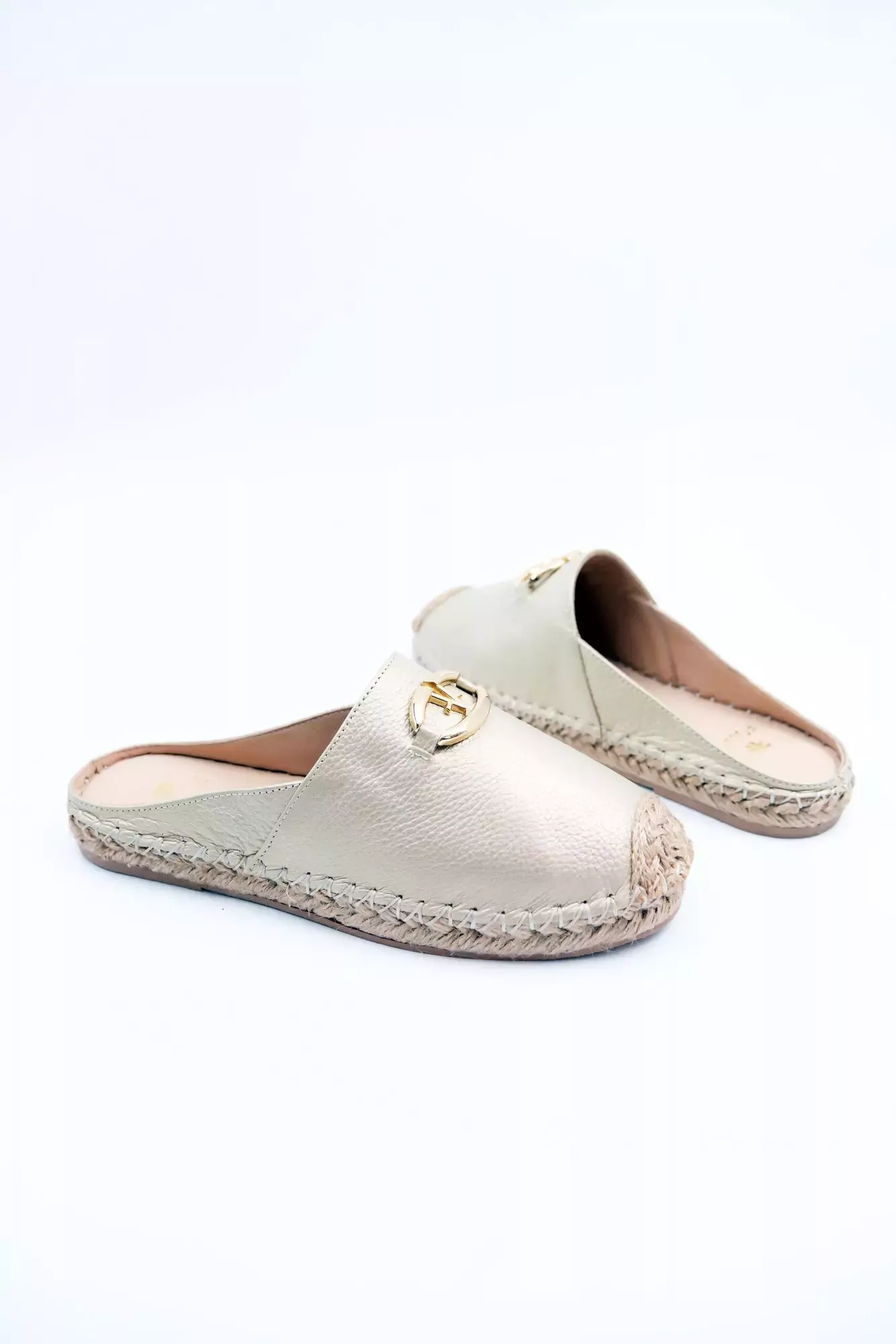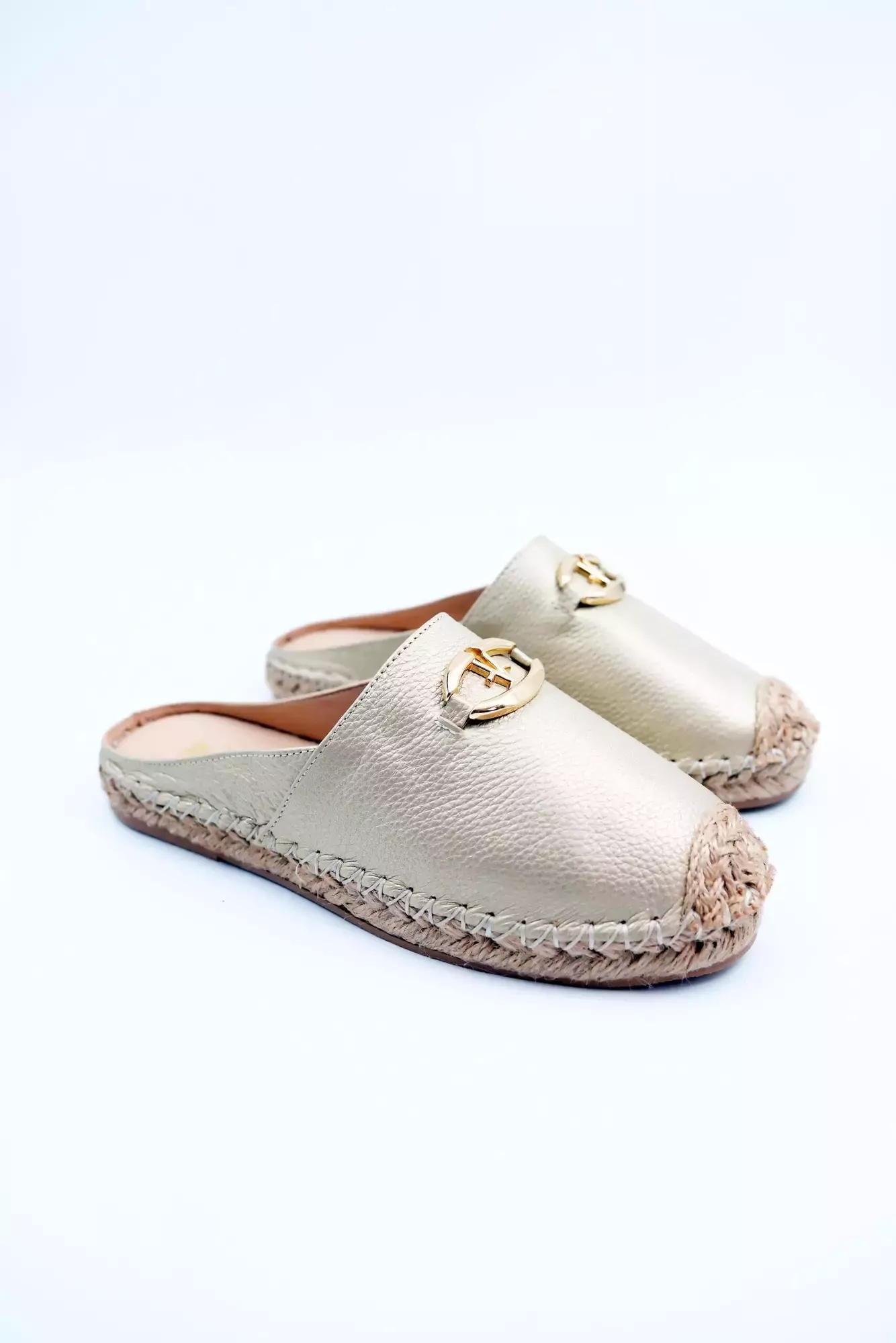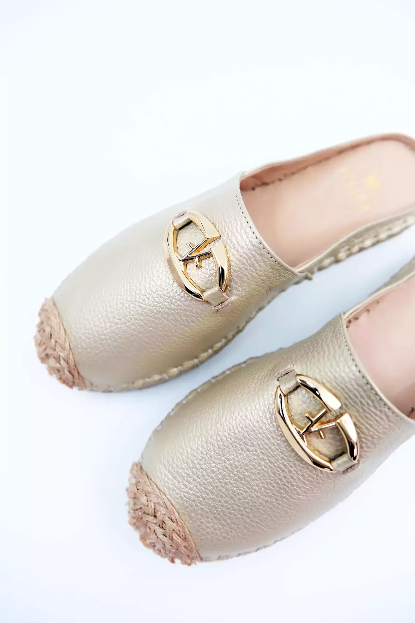 Kadın Hakiki Deri Espadril Terlik Altın