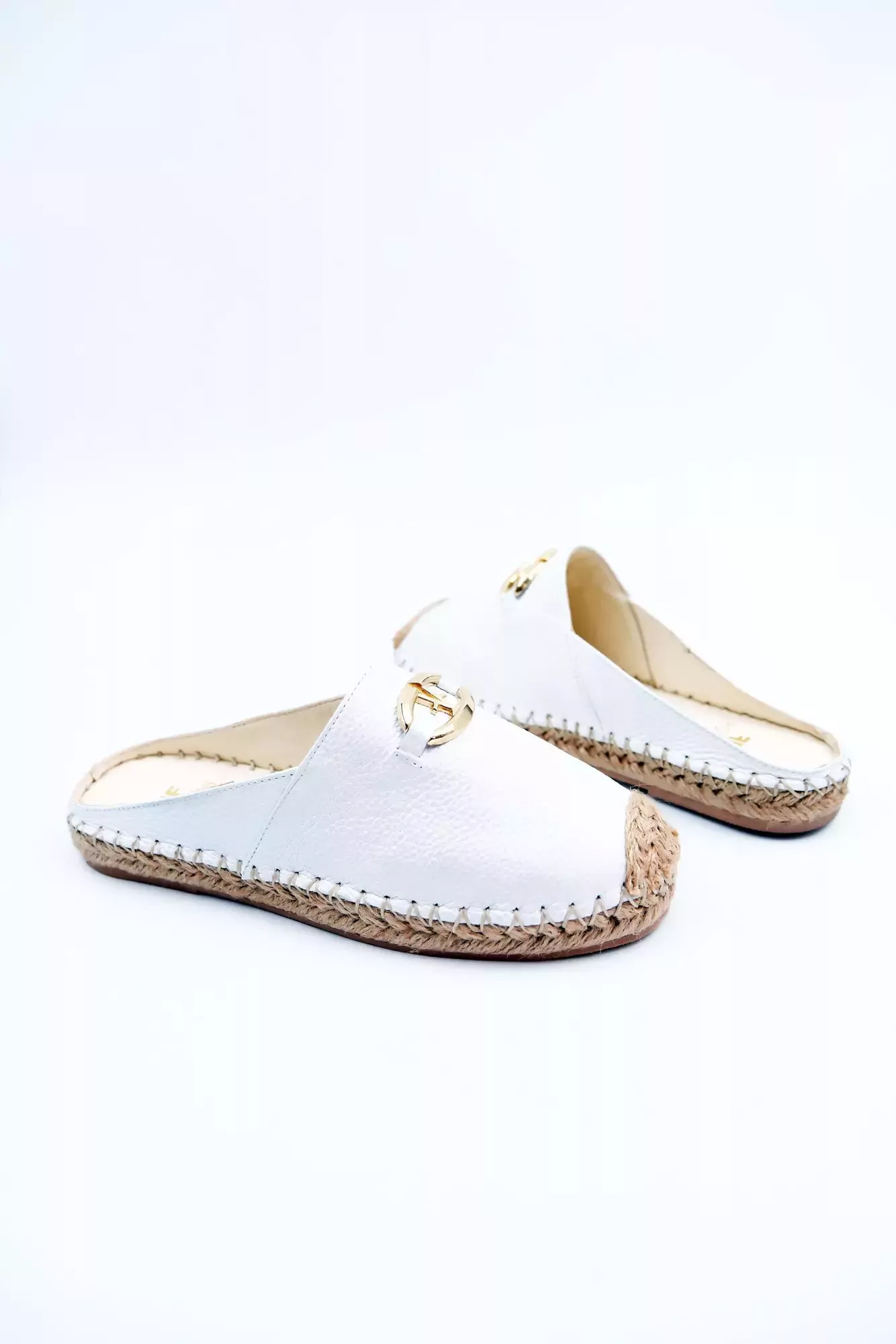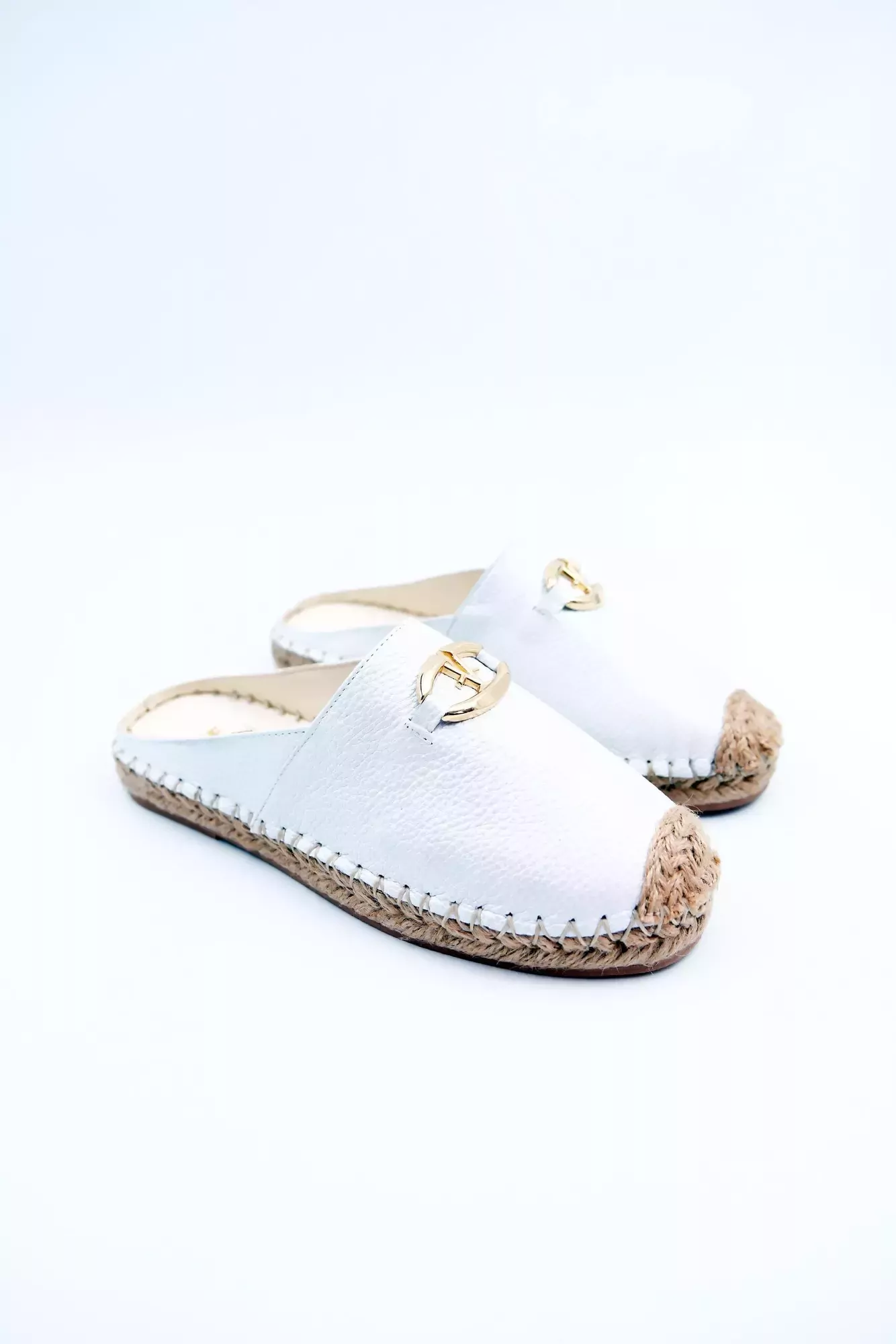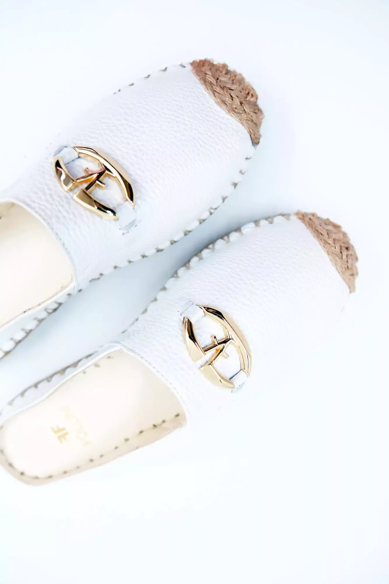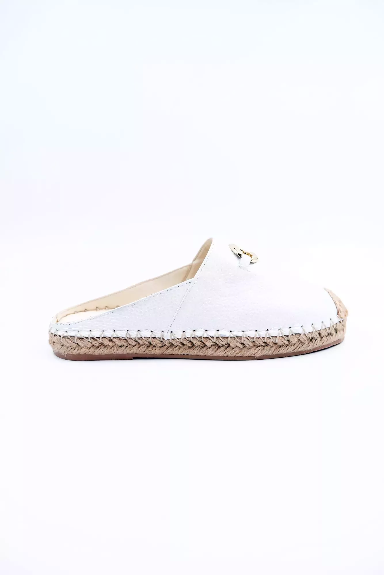 Kadın Hakiki Deri Espadril Terlik Beyaz