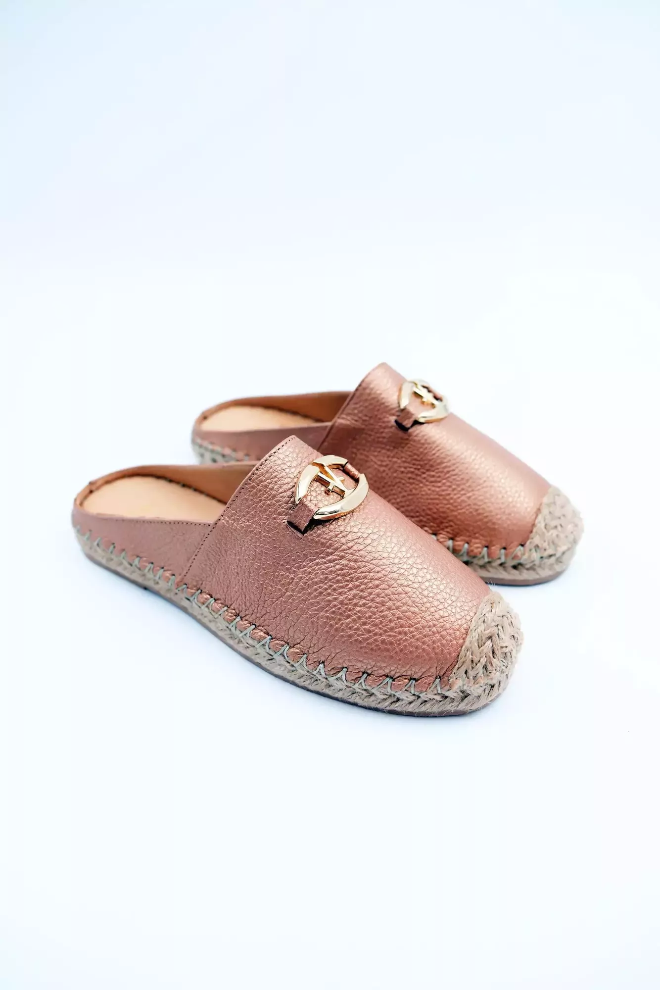 Kadın Hakiki Deri Espadril Terlik Bronz