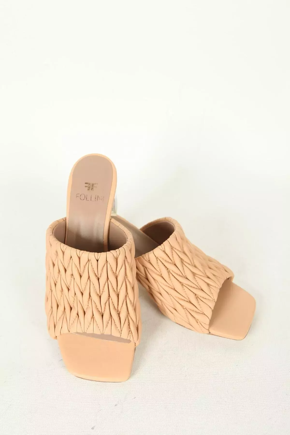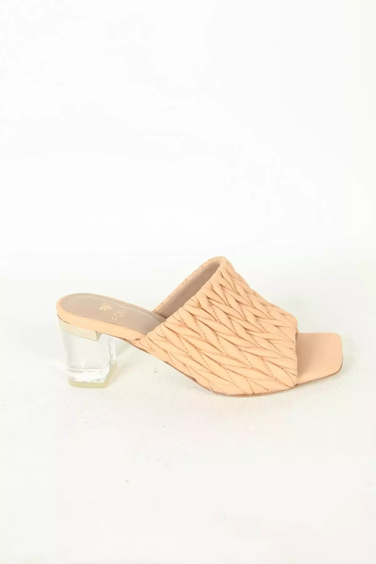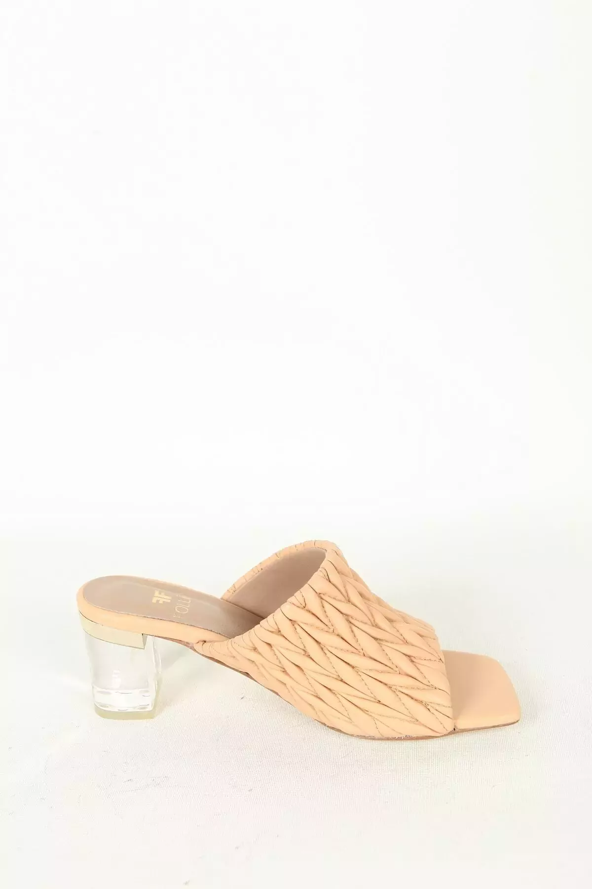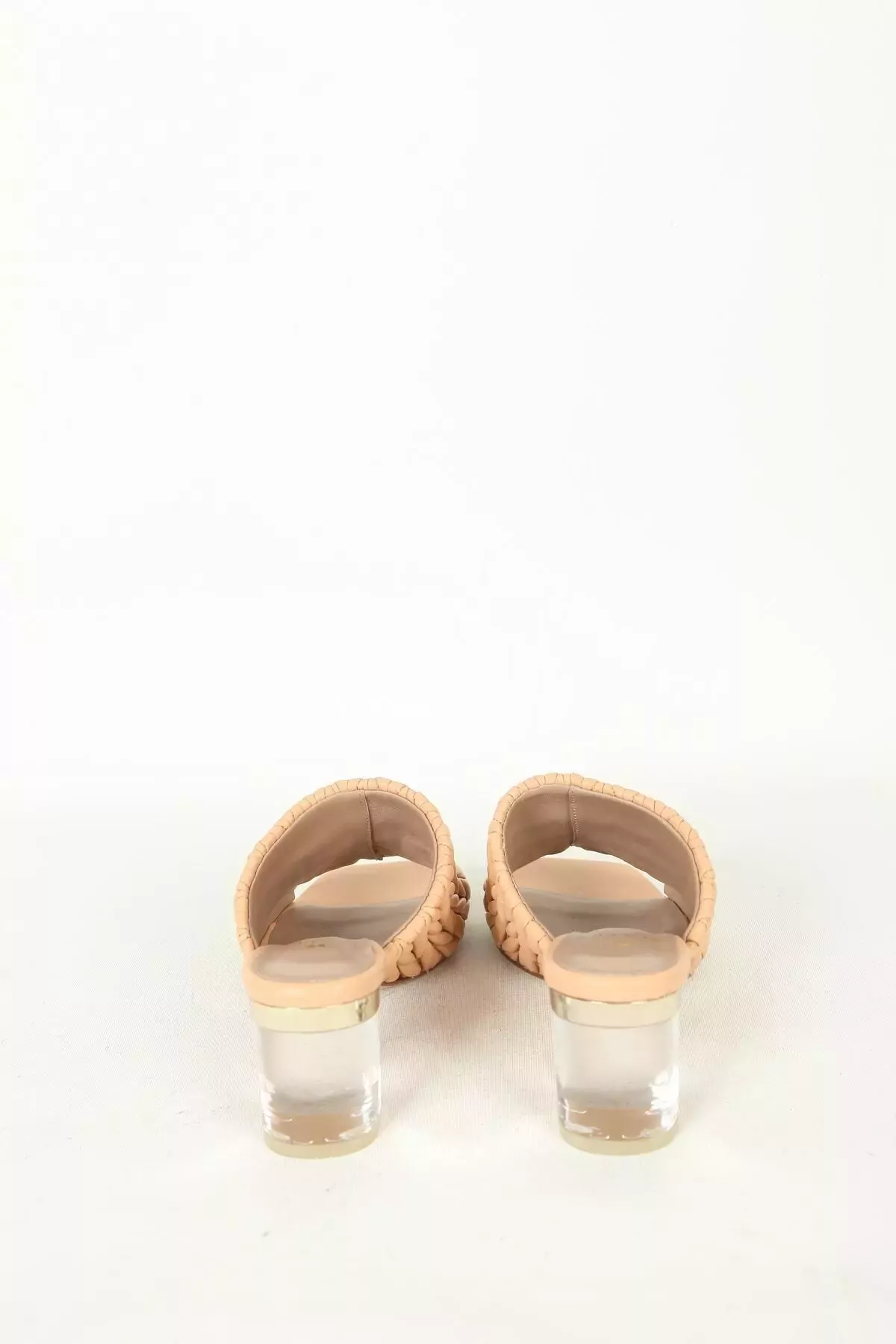 Kadın Koyu Krem Hakiki Deri Topuklu Terlik