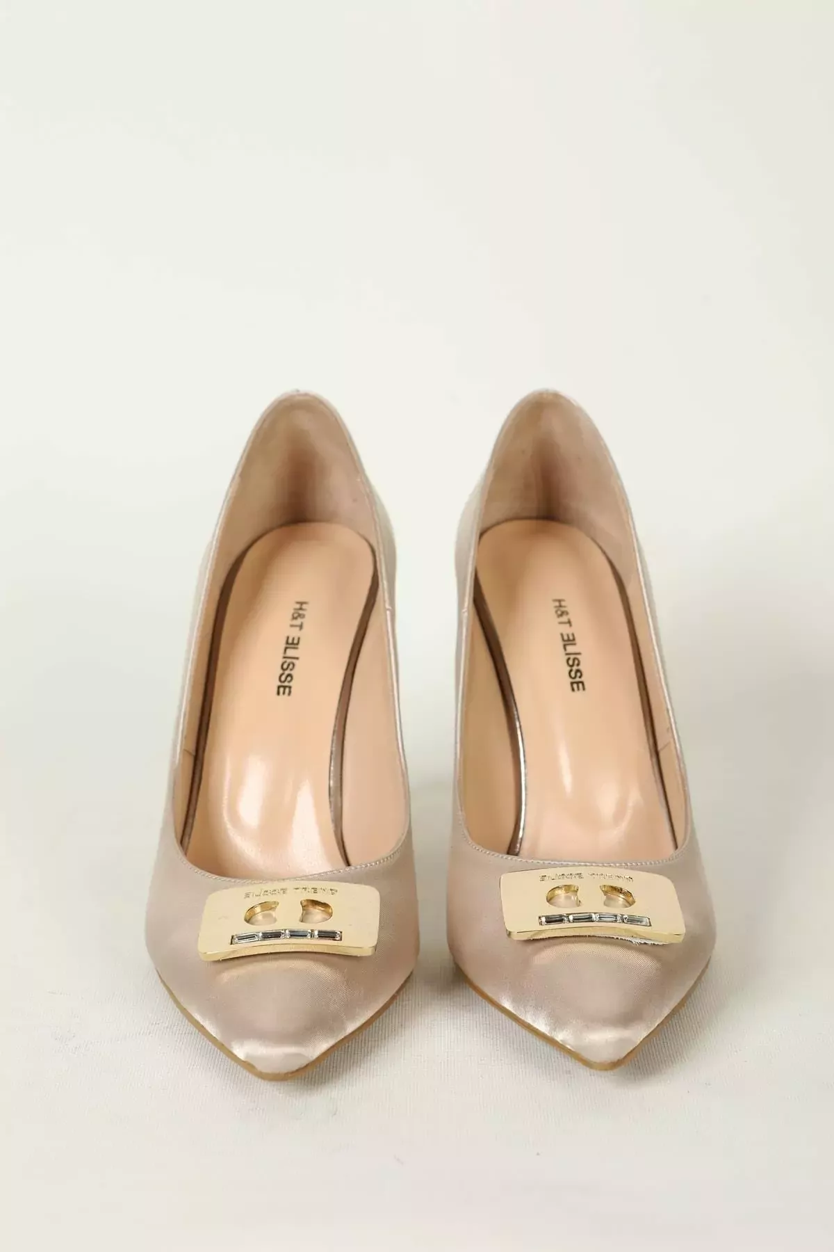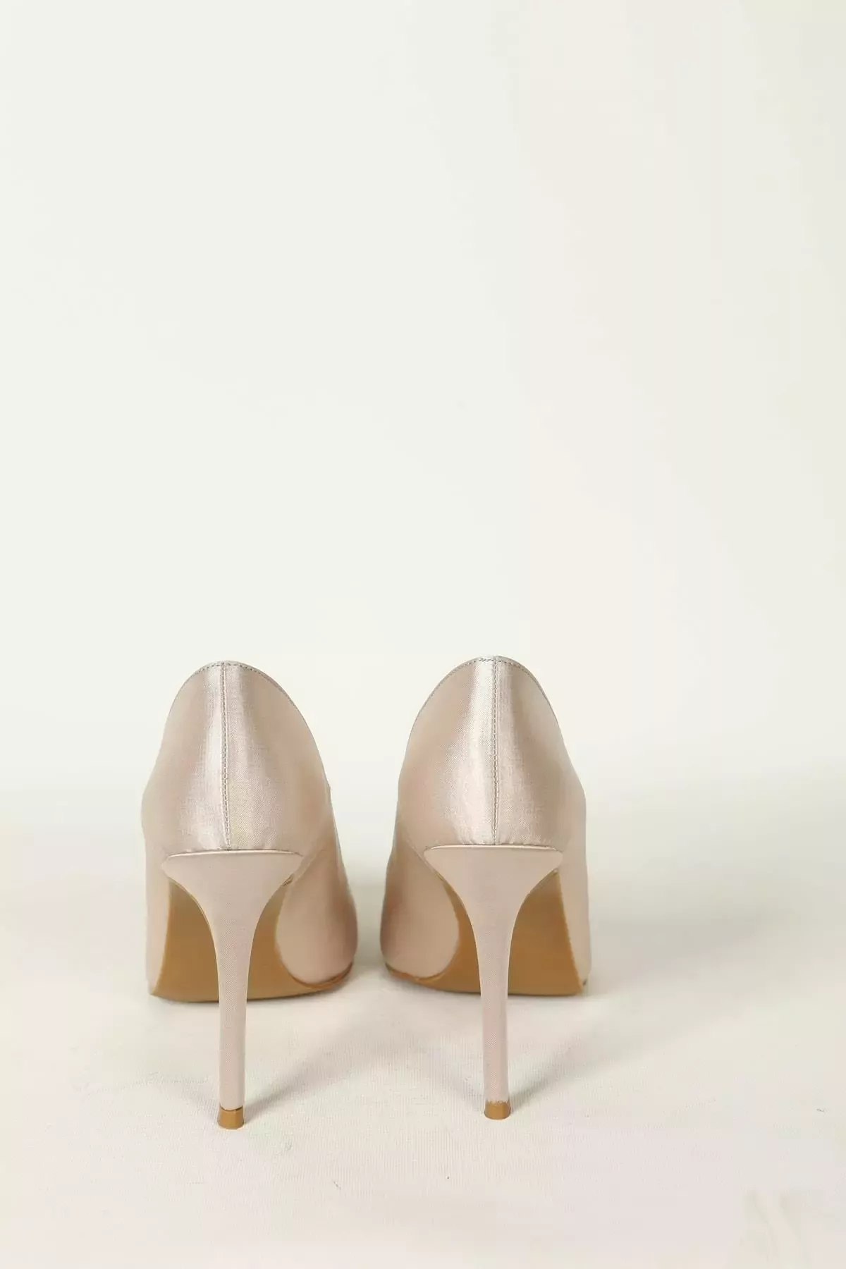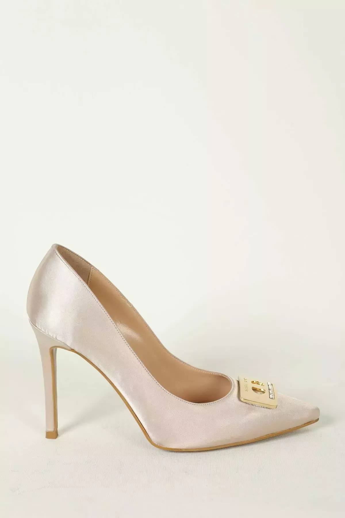 Kadın Krem Toka Detaylı Saten Topuklu Ayakkabı