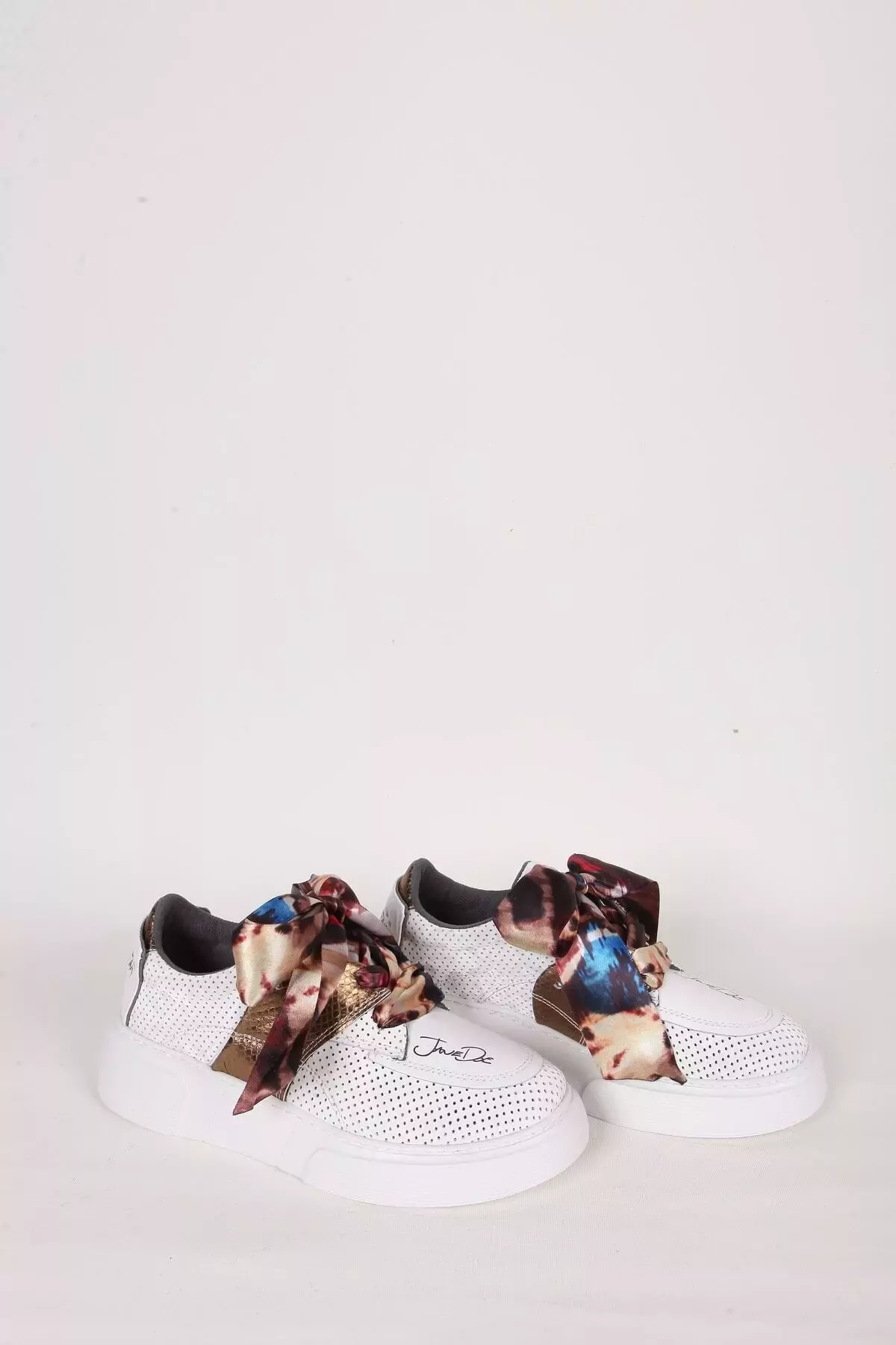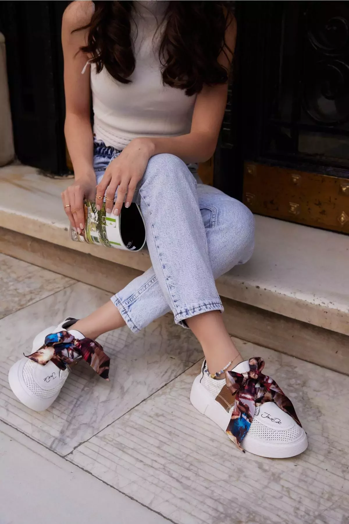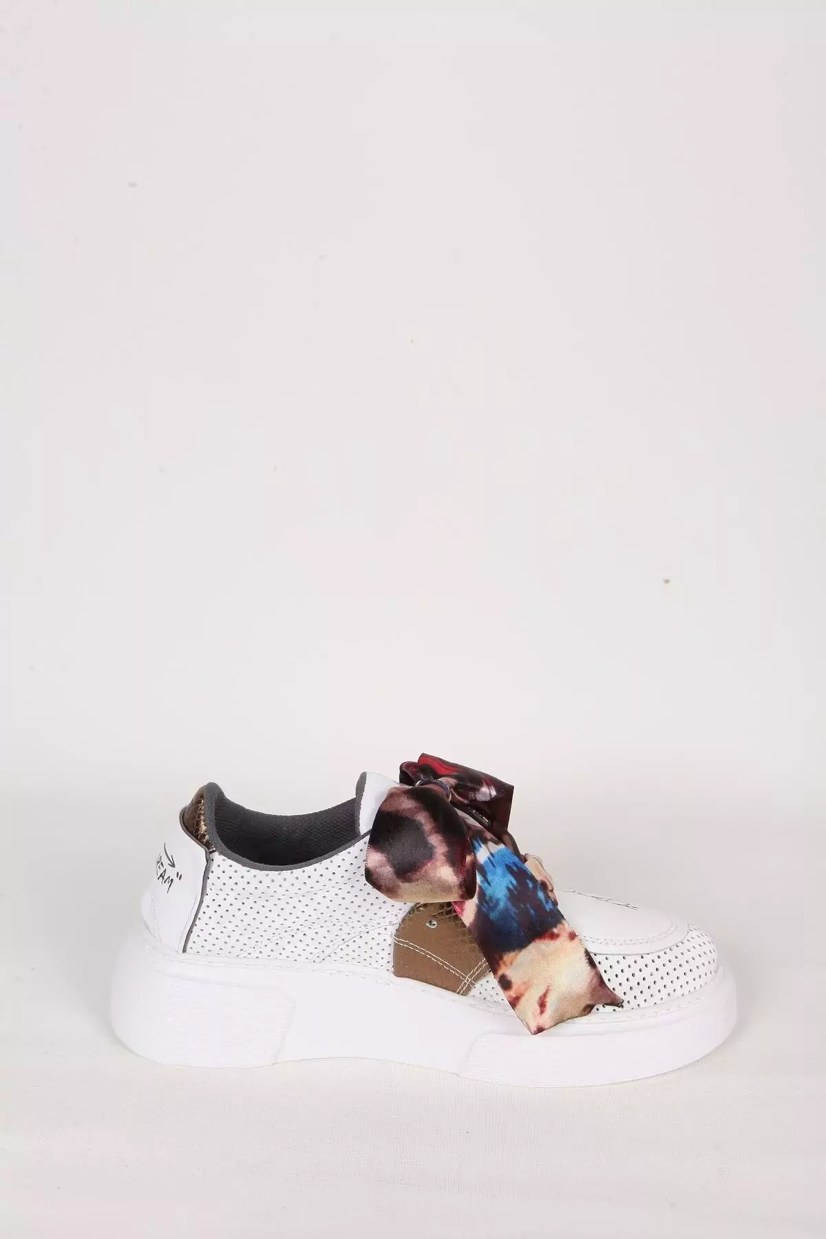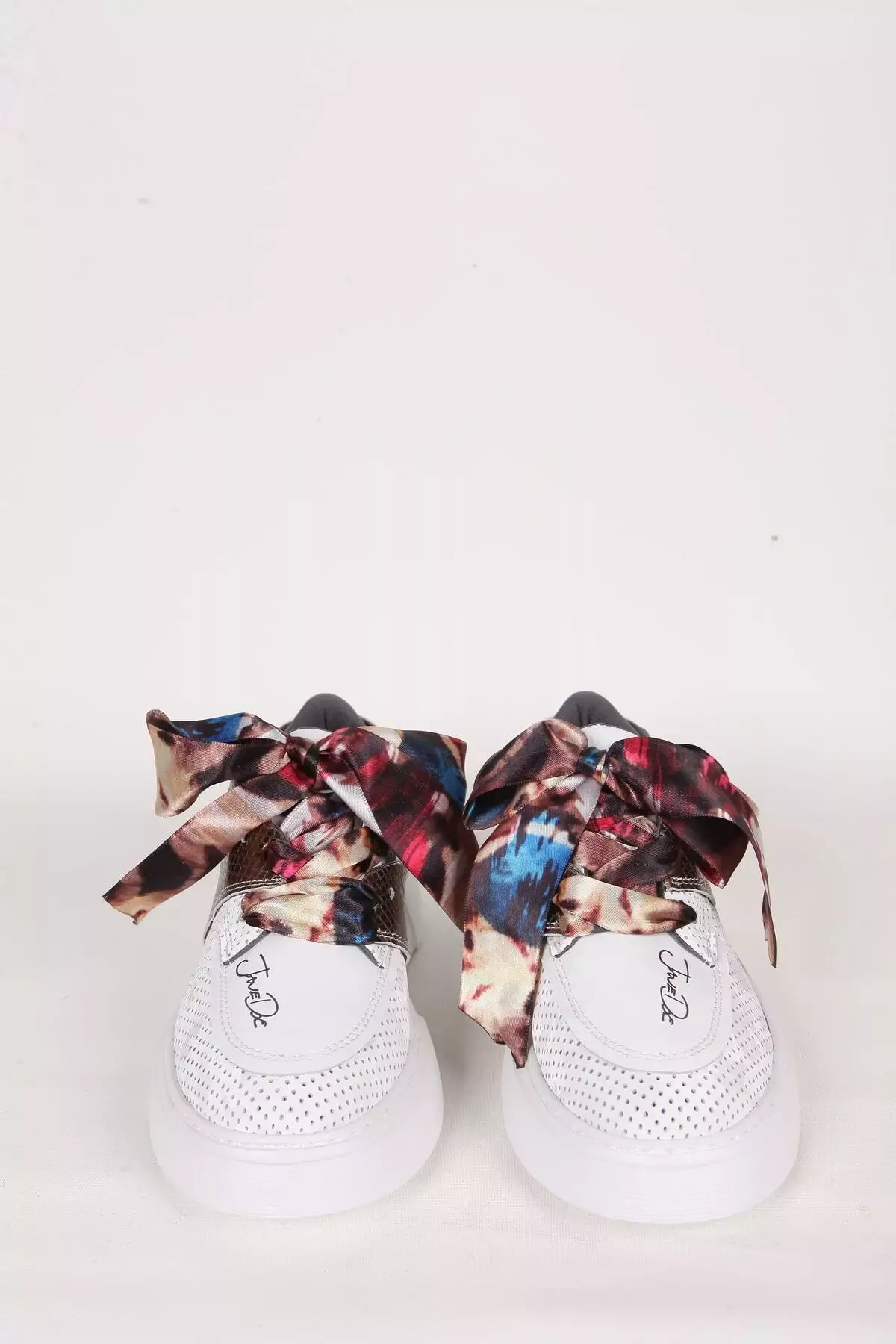 Kadın Mavi Hakiki Deri Kurdele Detaylı Sneaker