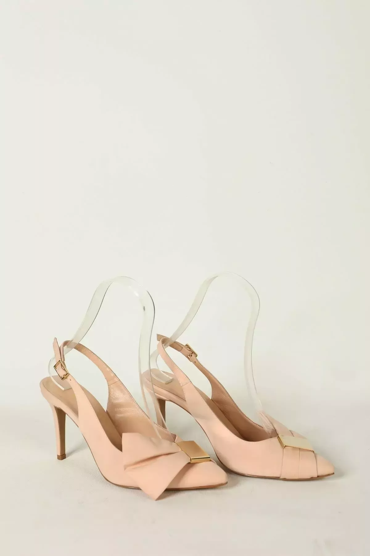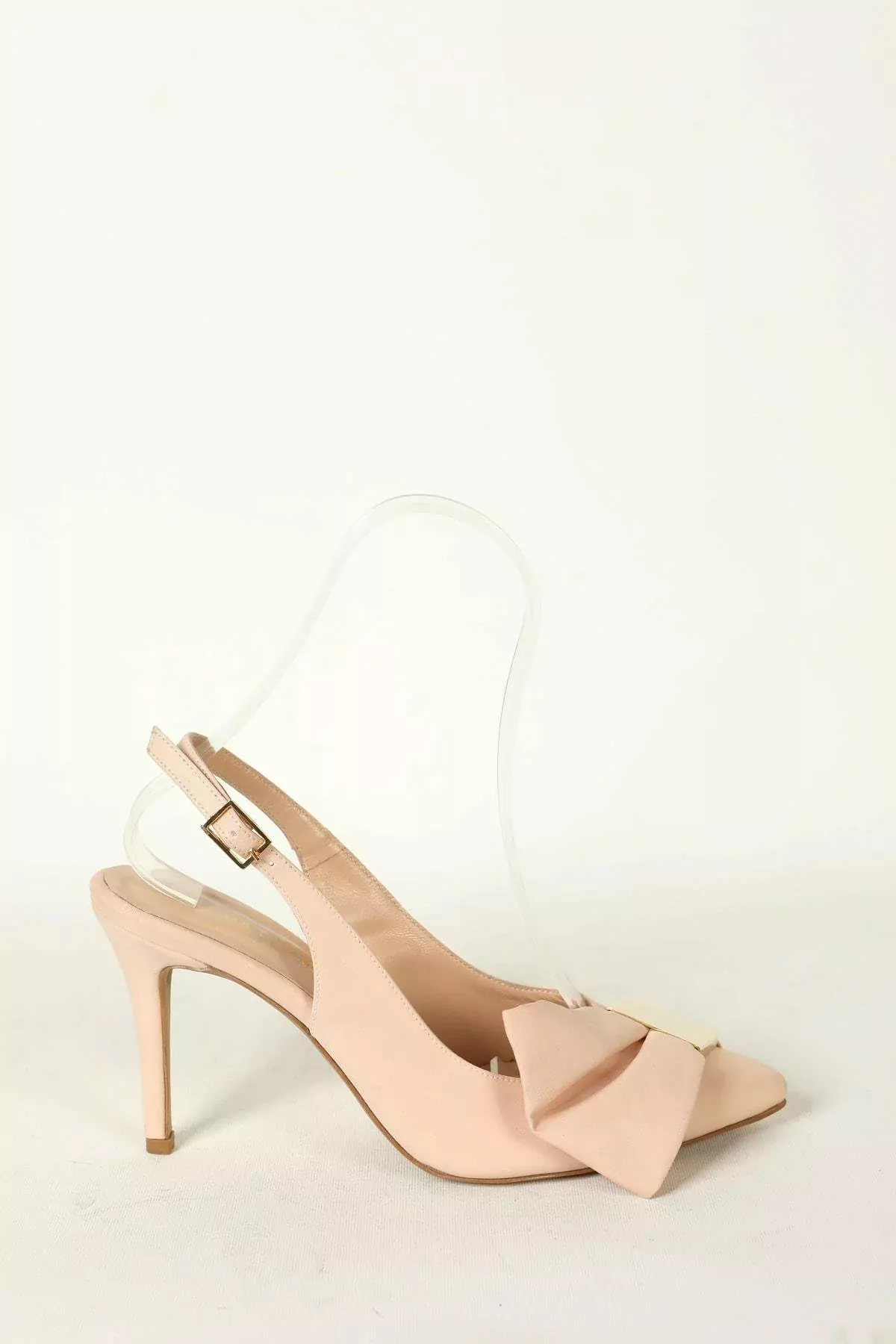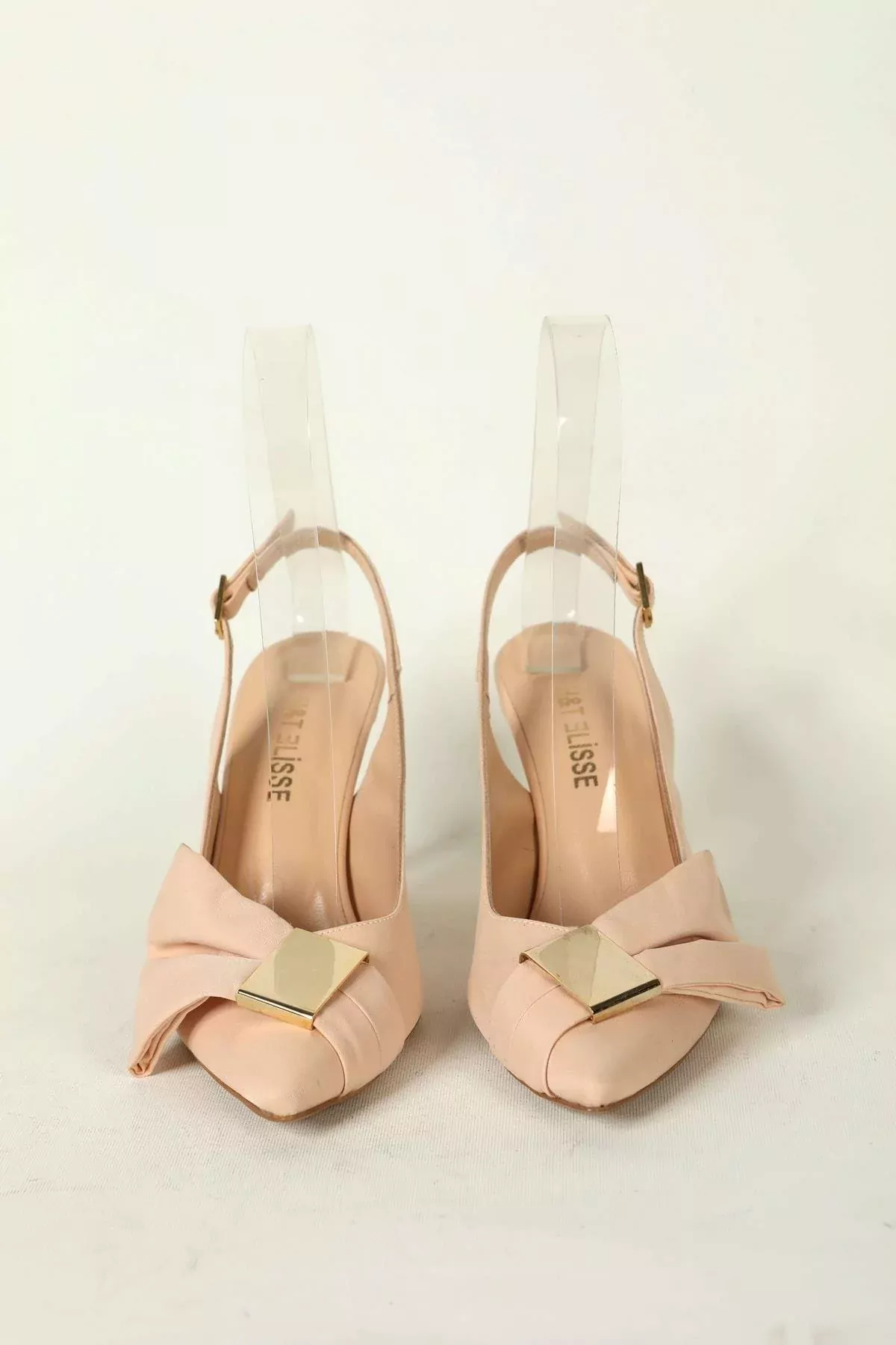 Kadın Pudra Toka Detaylı Saten Topuklu Ayakkabı