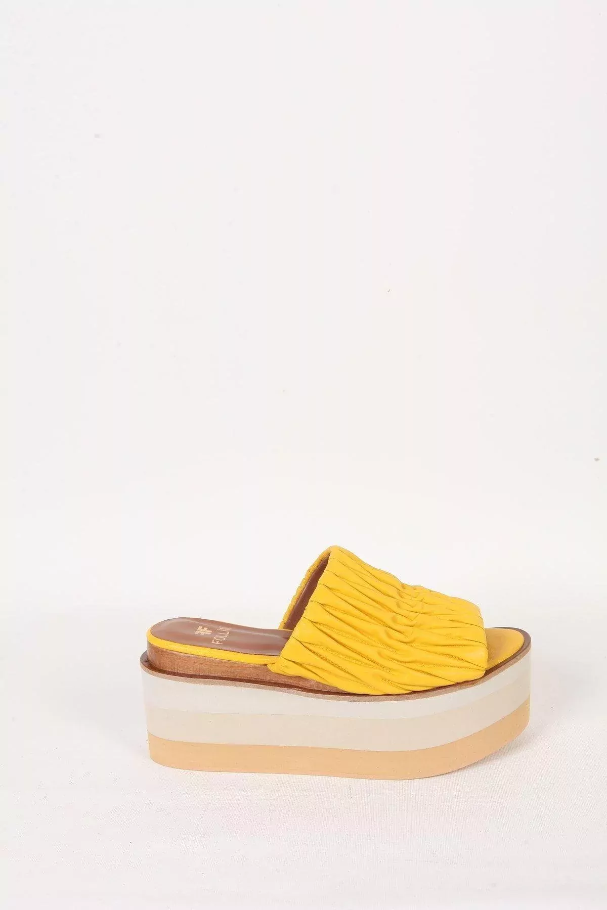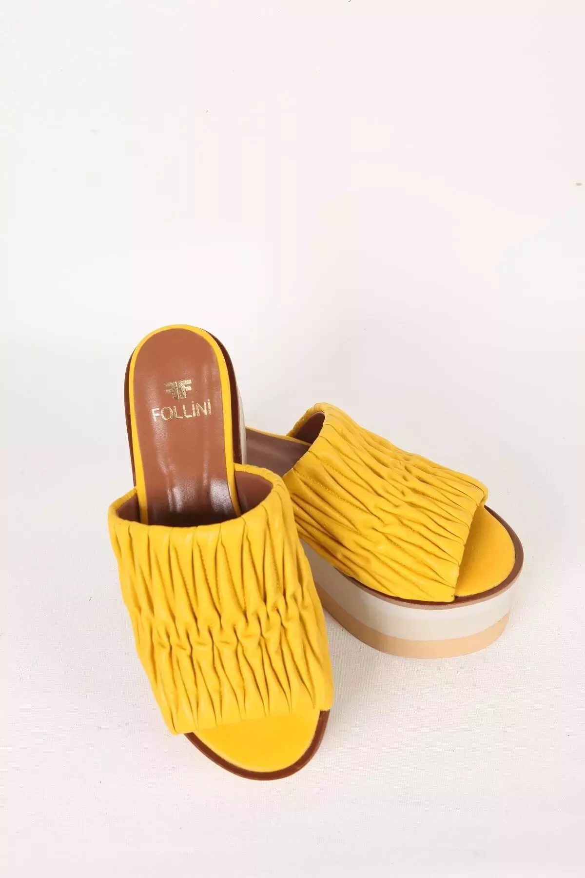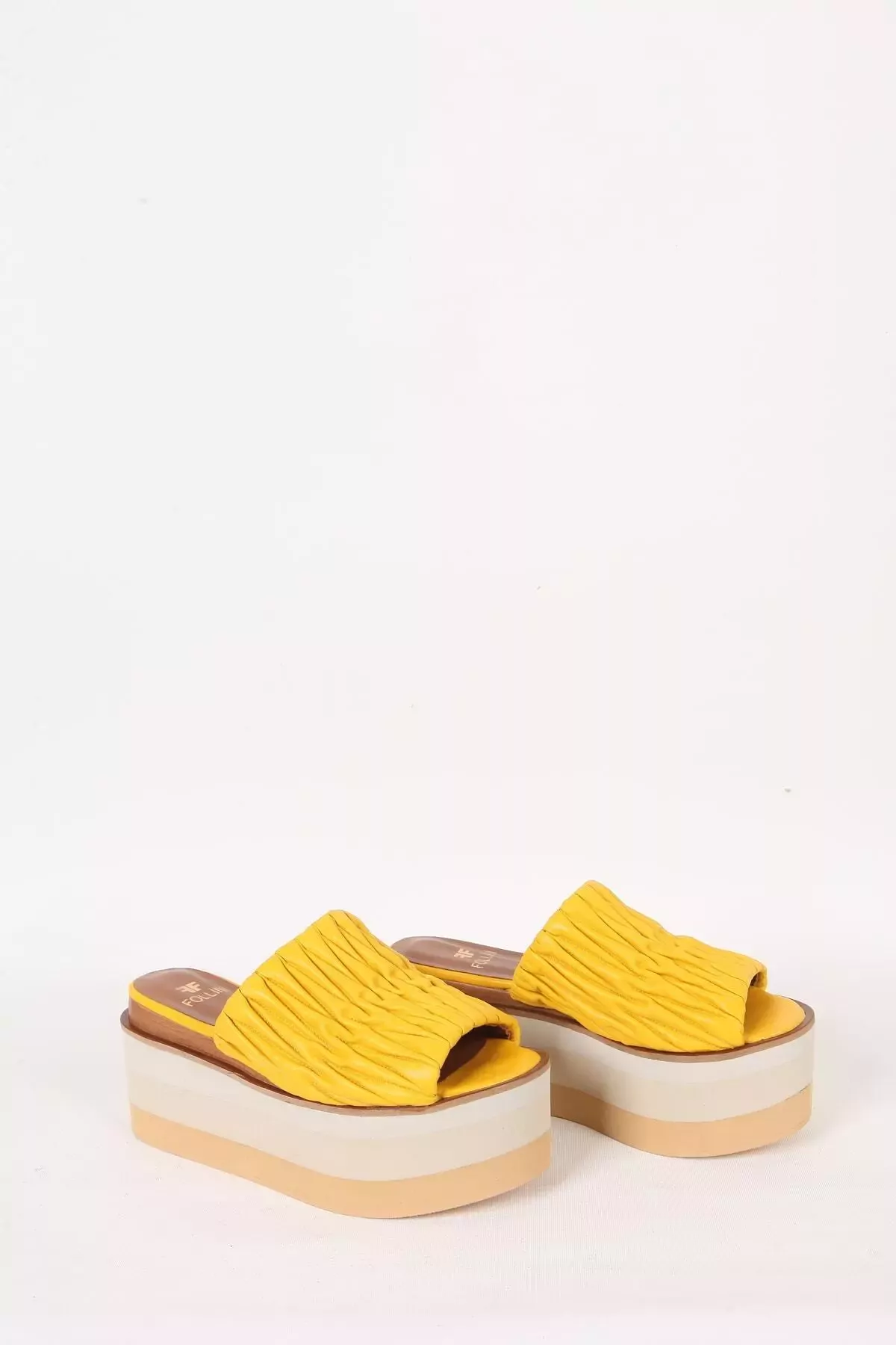 Kadın Sarı Hakiki Deri Dolgu Topuk Terlik