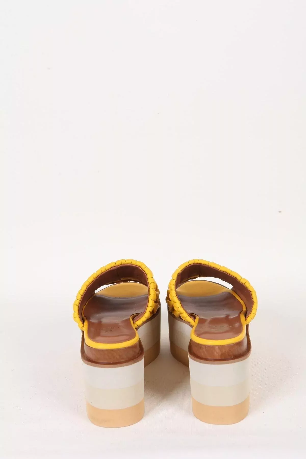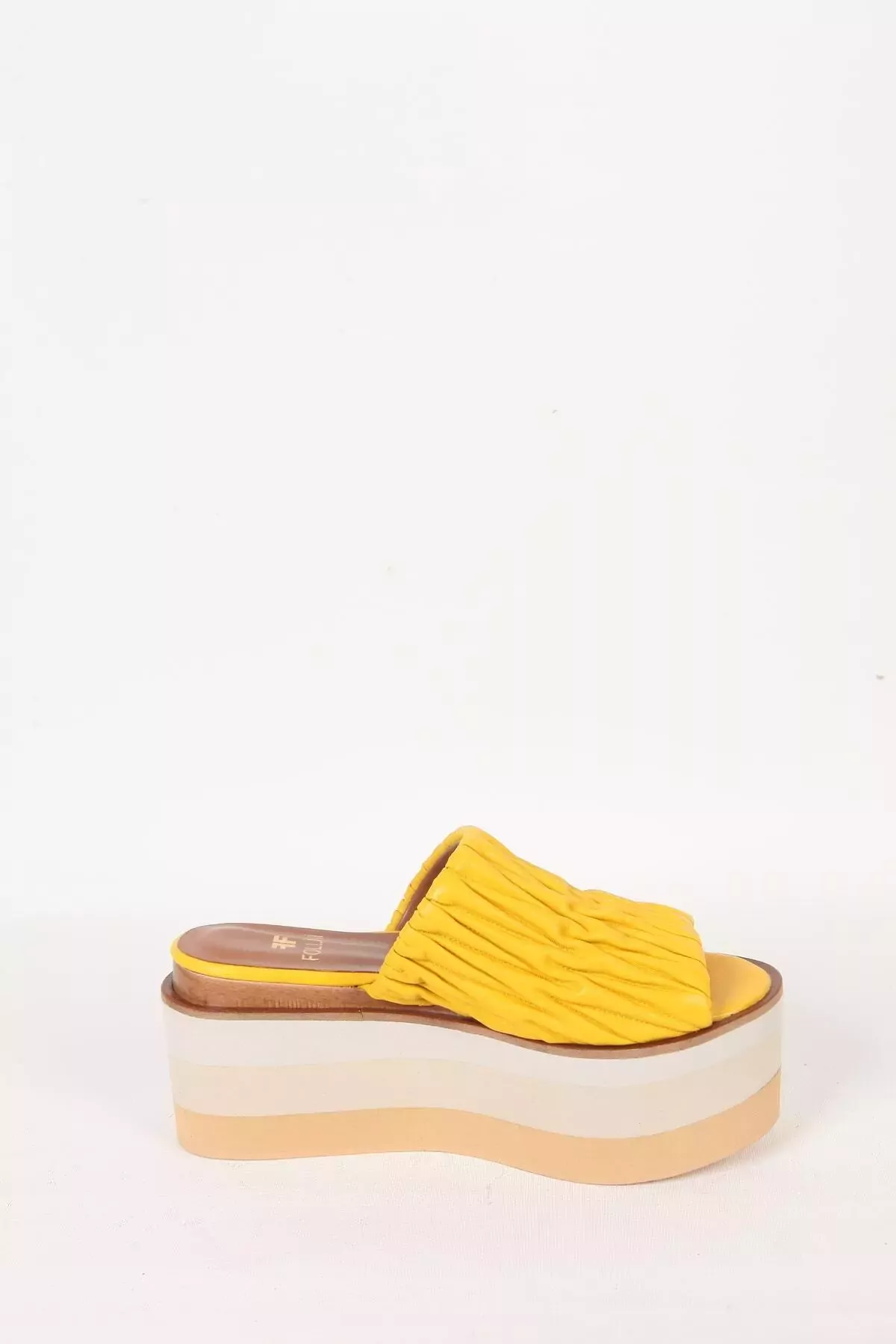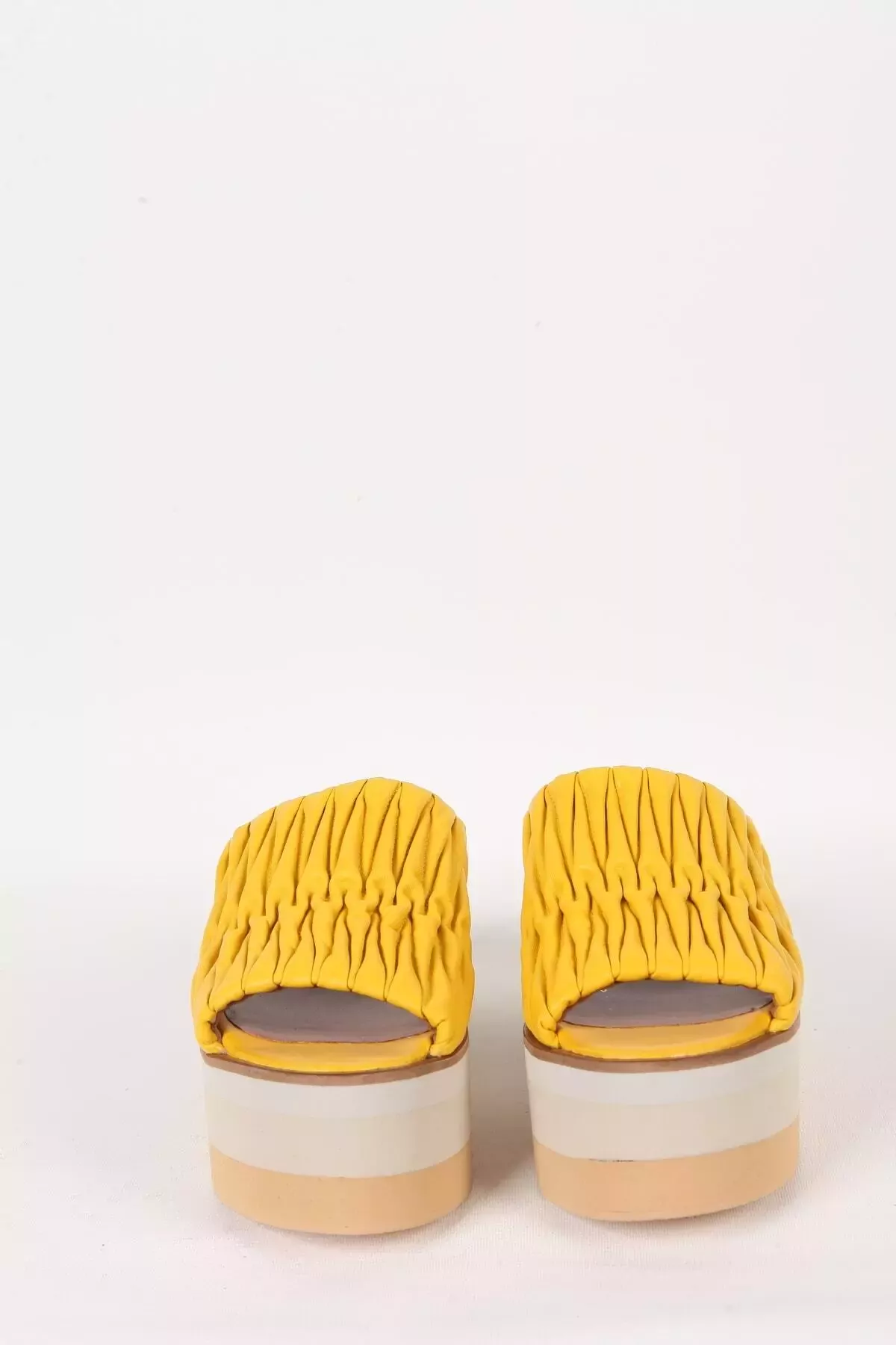 Kadın Sarı Hakiki Deri Dolgu Topuk Terlik