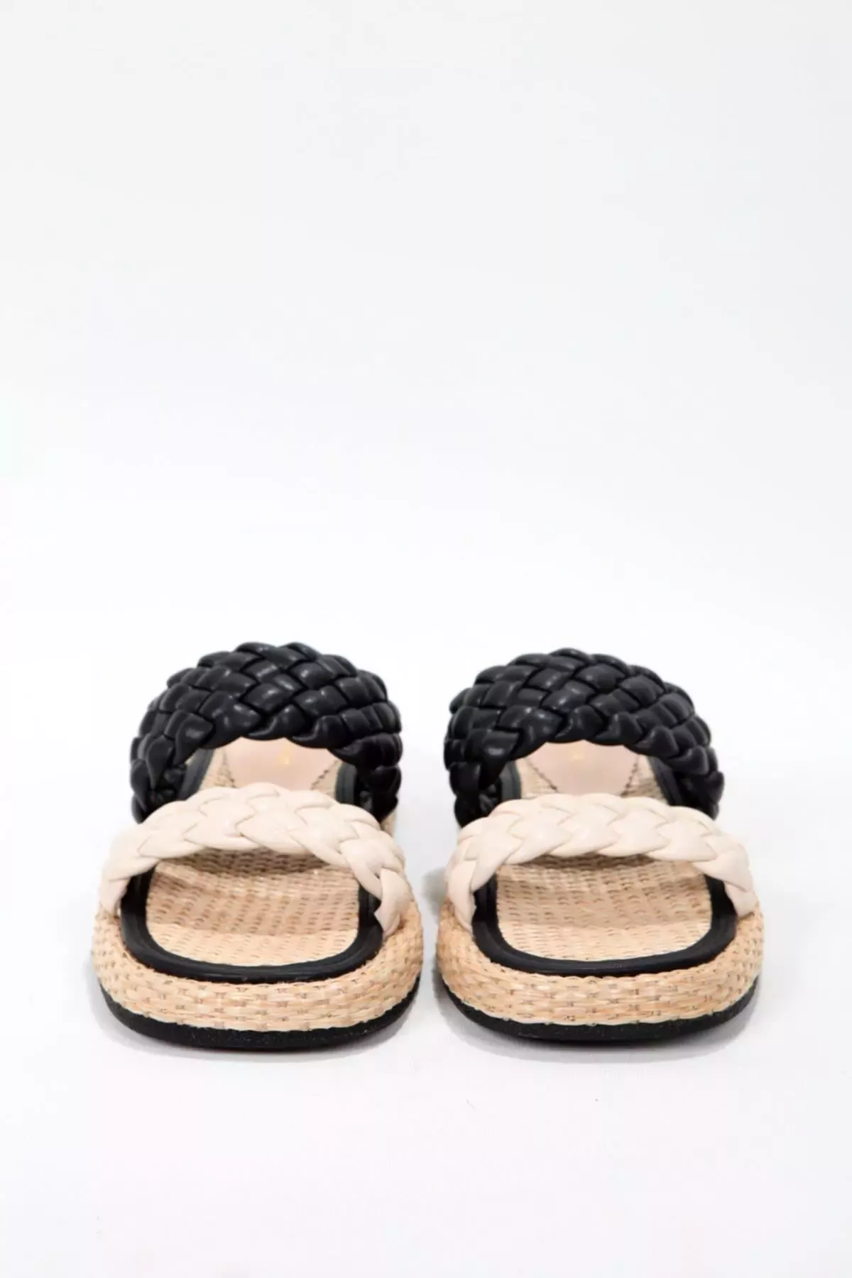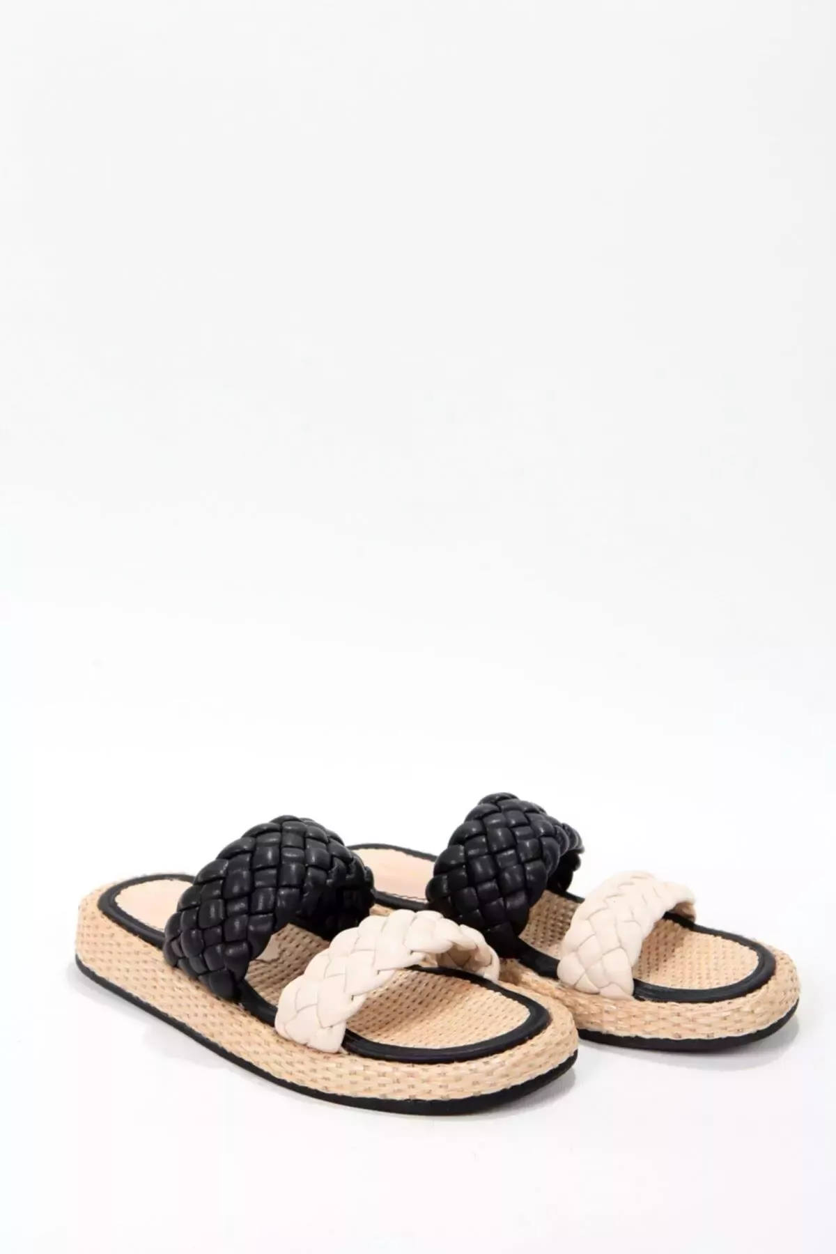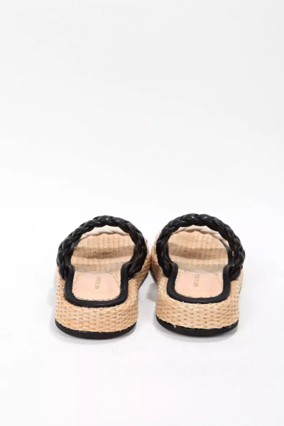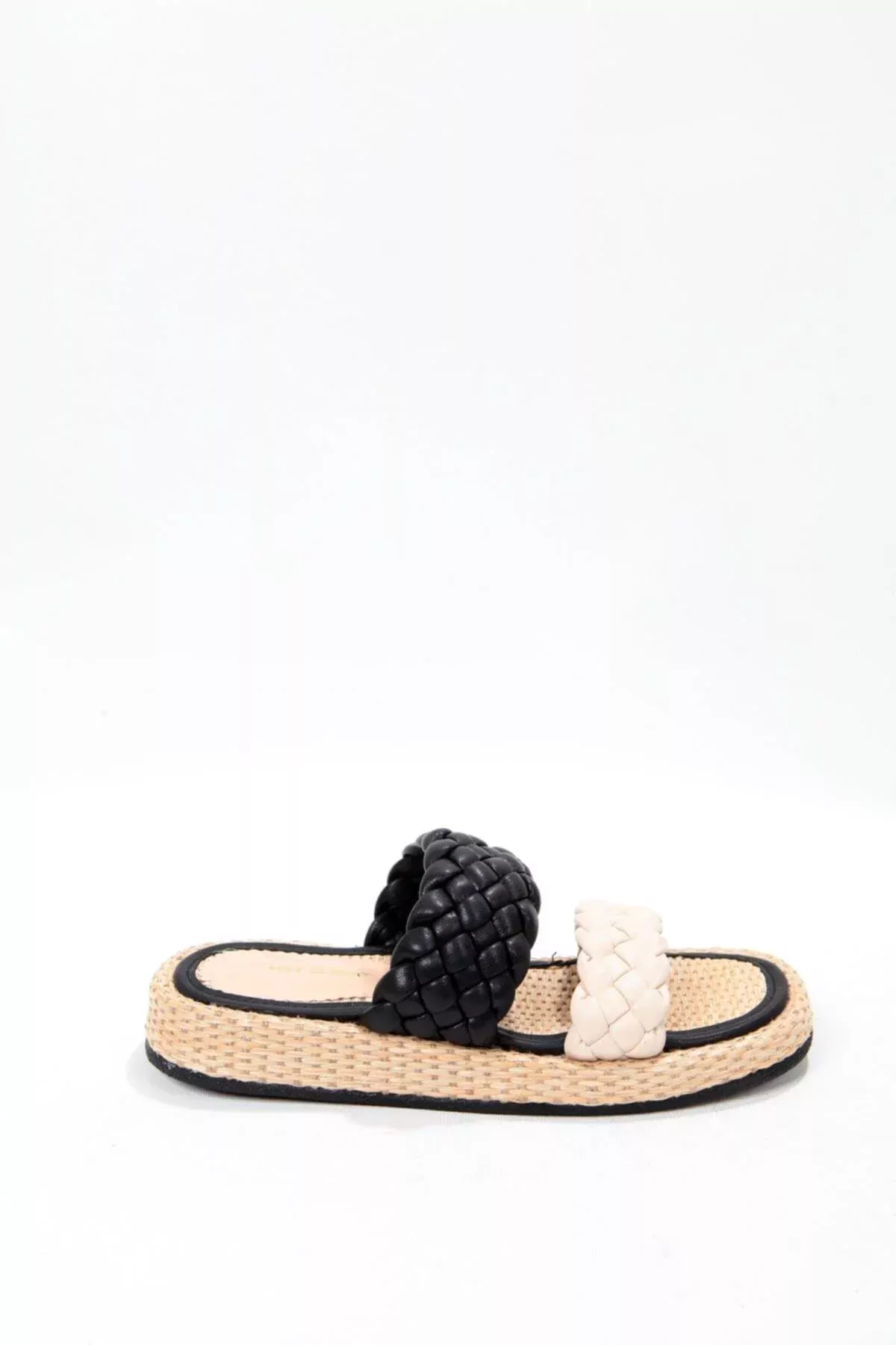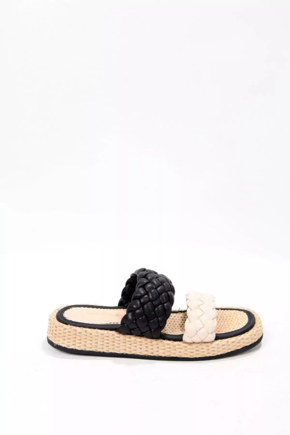 Kadın Siyah Bej Terlik Hasır Detaylı Terlik