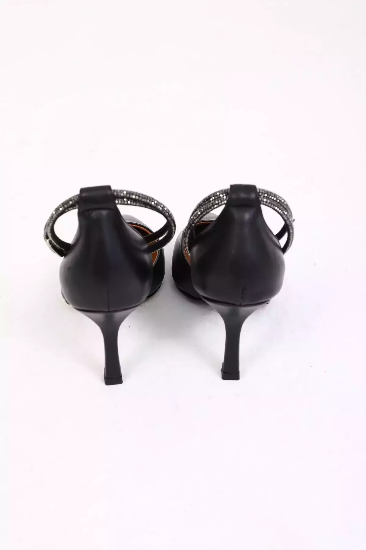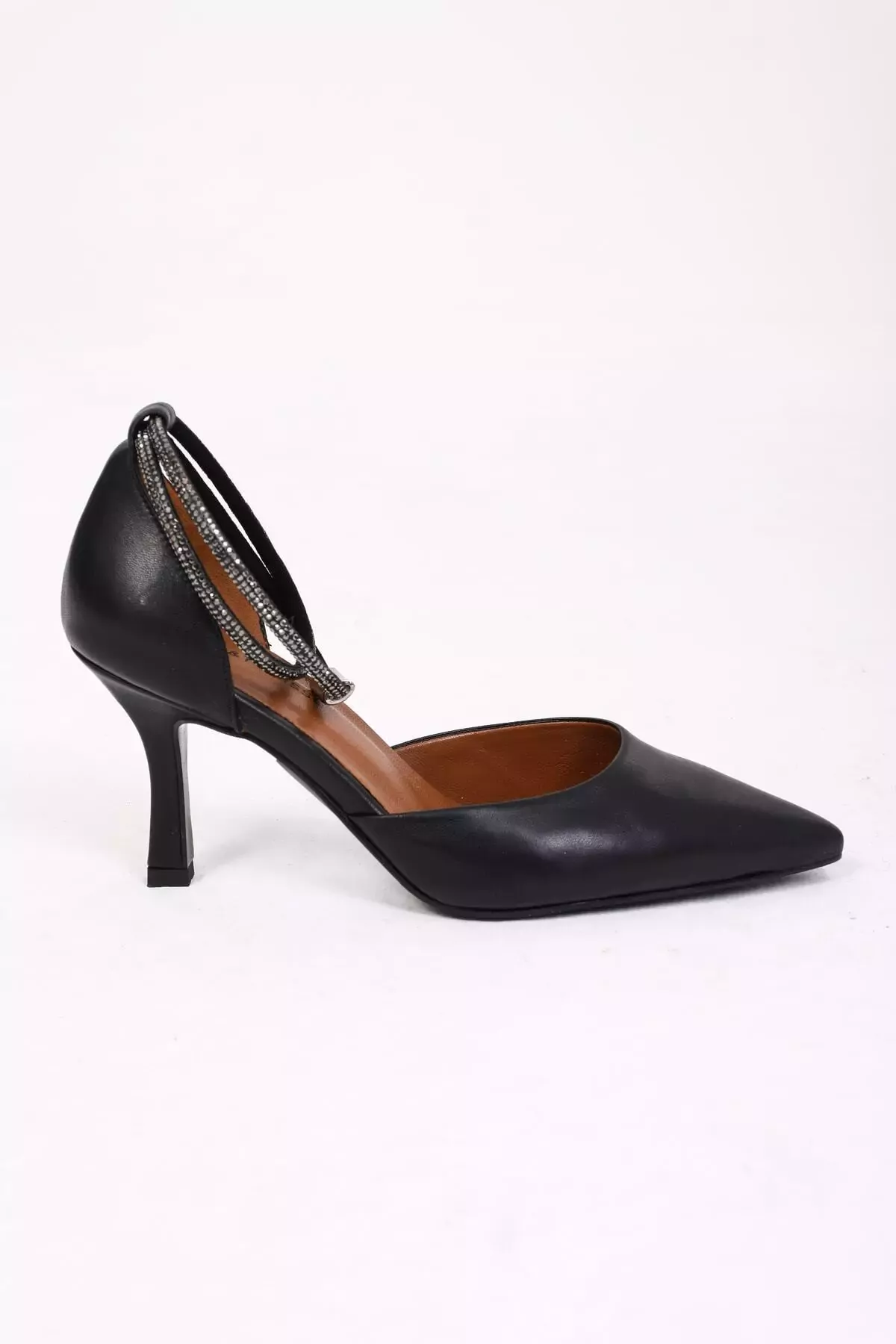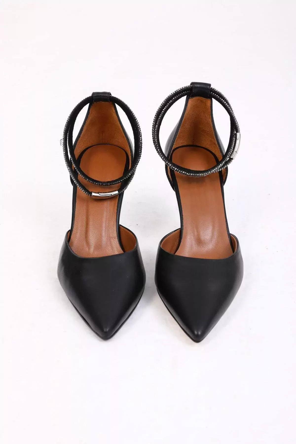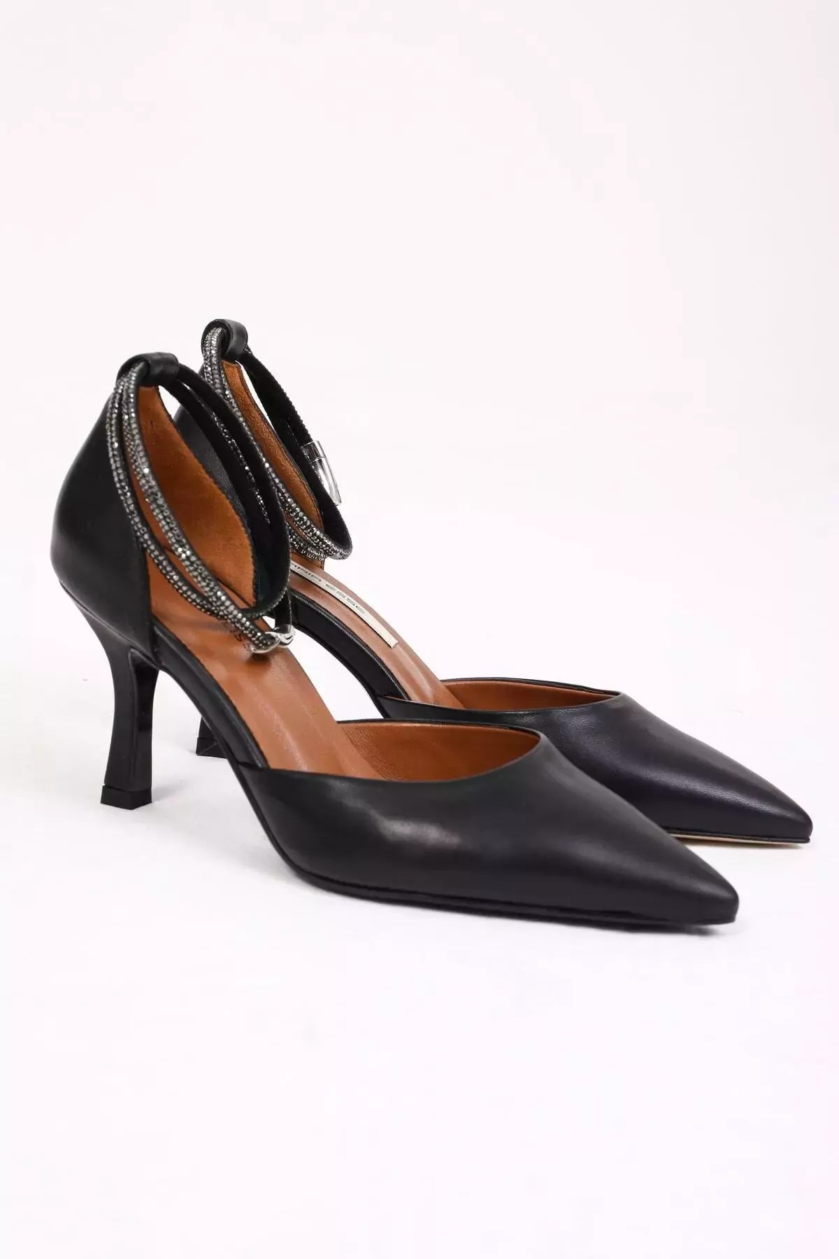Kadın Siyah Deri Bilek Aksesuarlı Abiye Ayakkabı