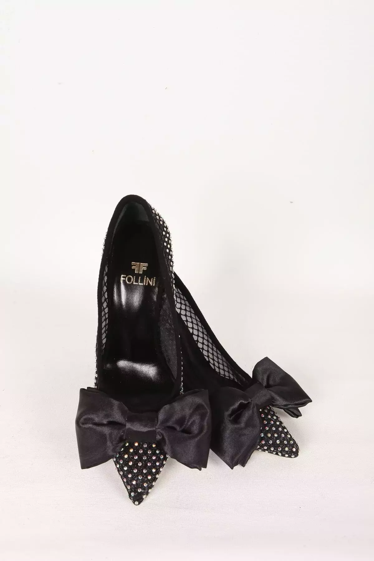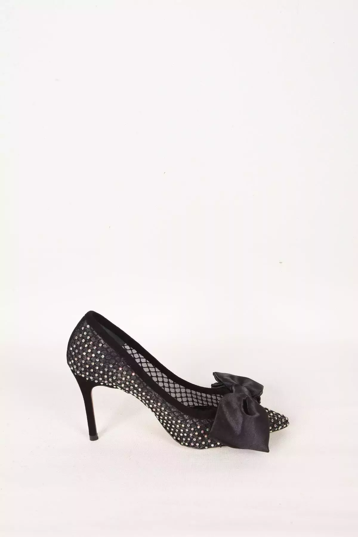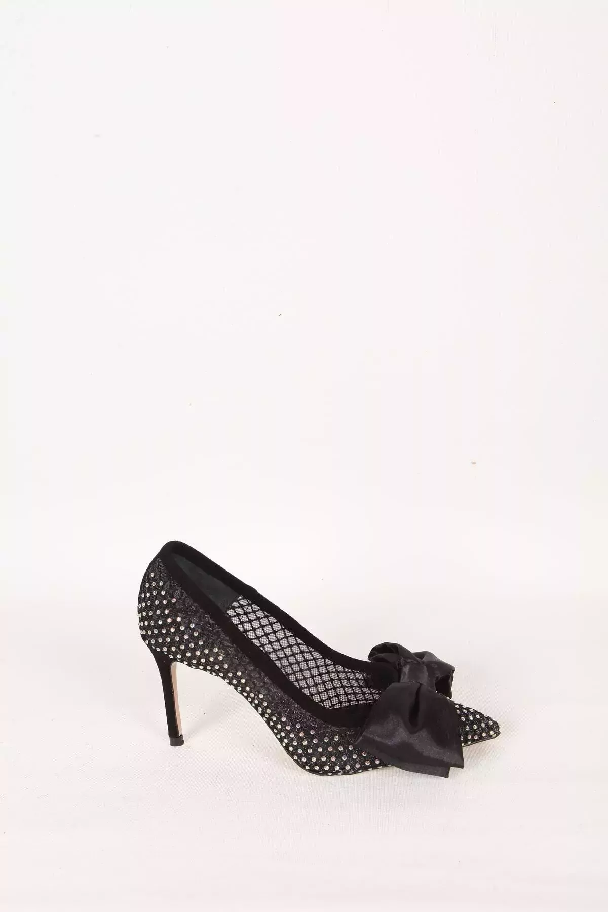 Kadın Siyah Fiyonk Ve Taş Detaylı Hakiki Deri Ayakkabı