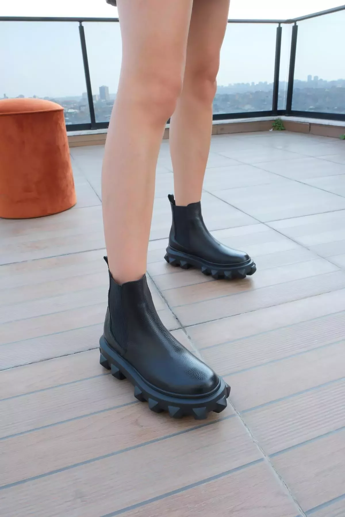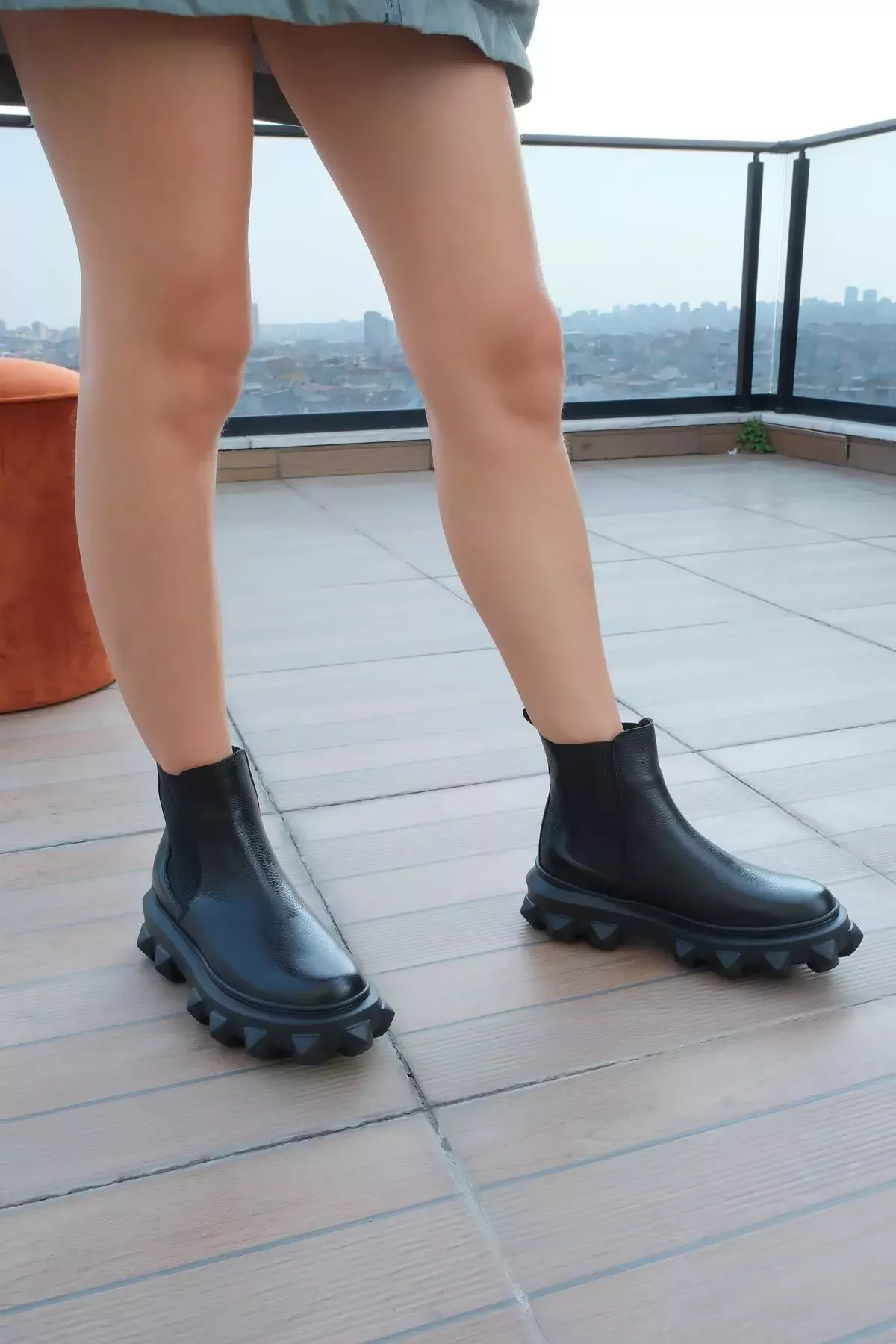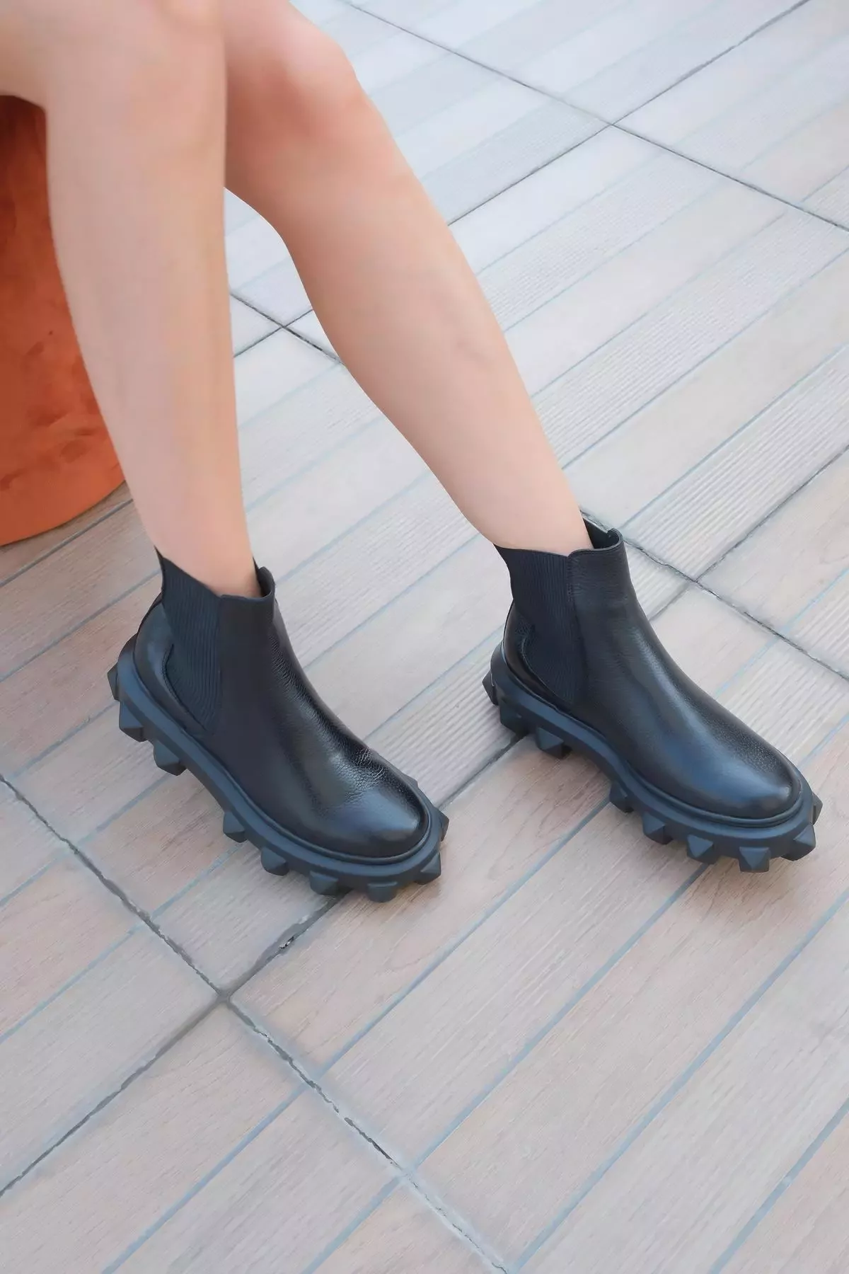 Kadın Siyah Floter Hakiki Deri Taban Detaylı Bot