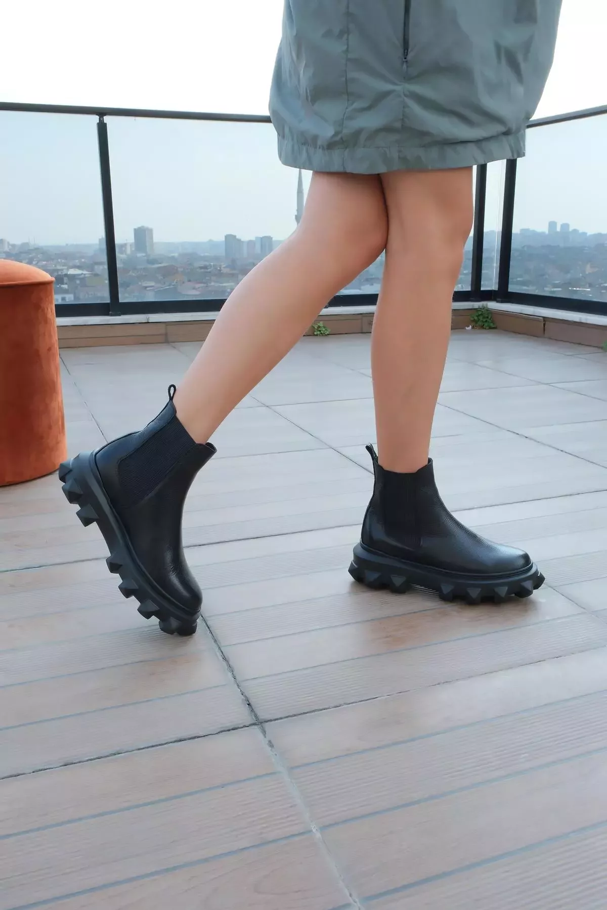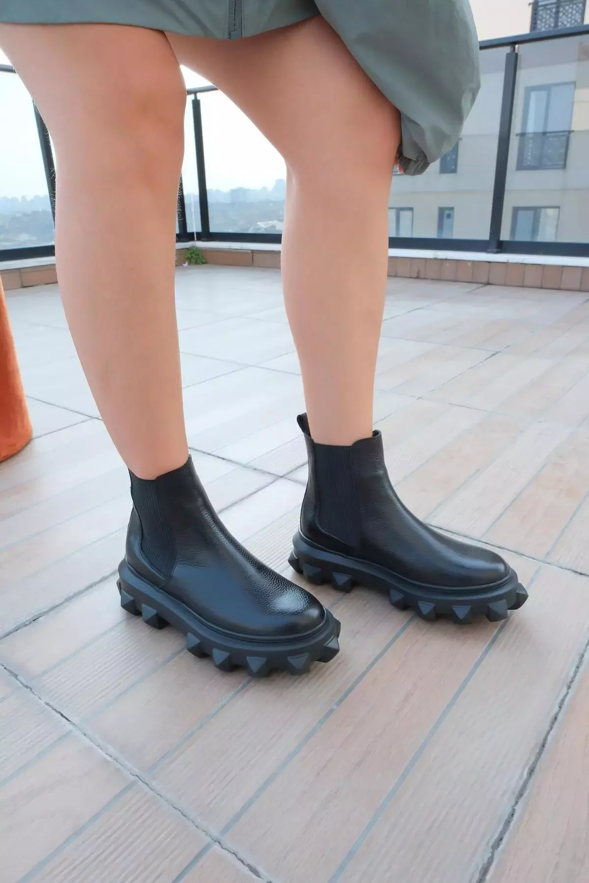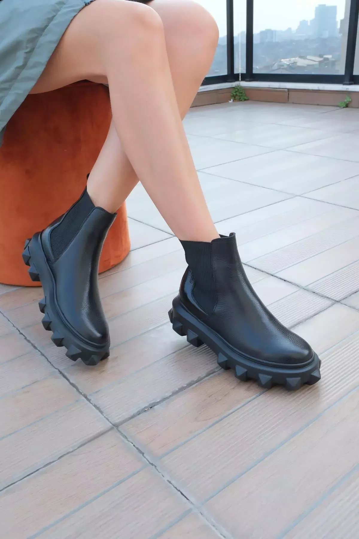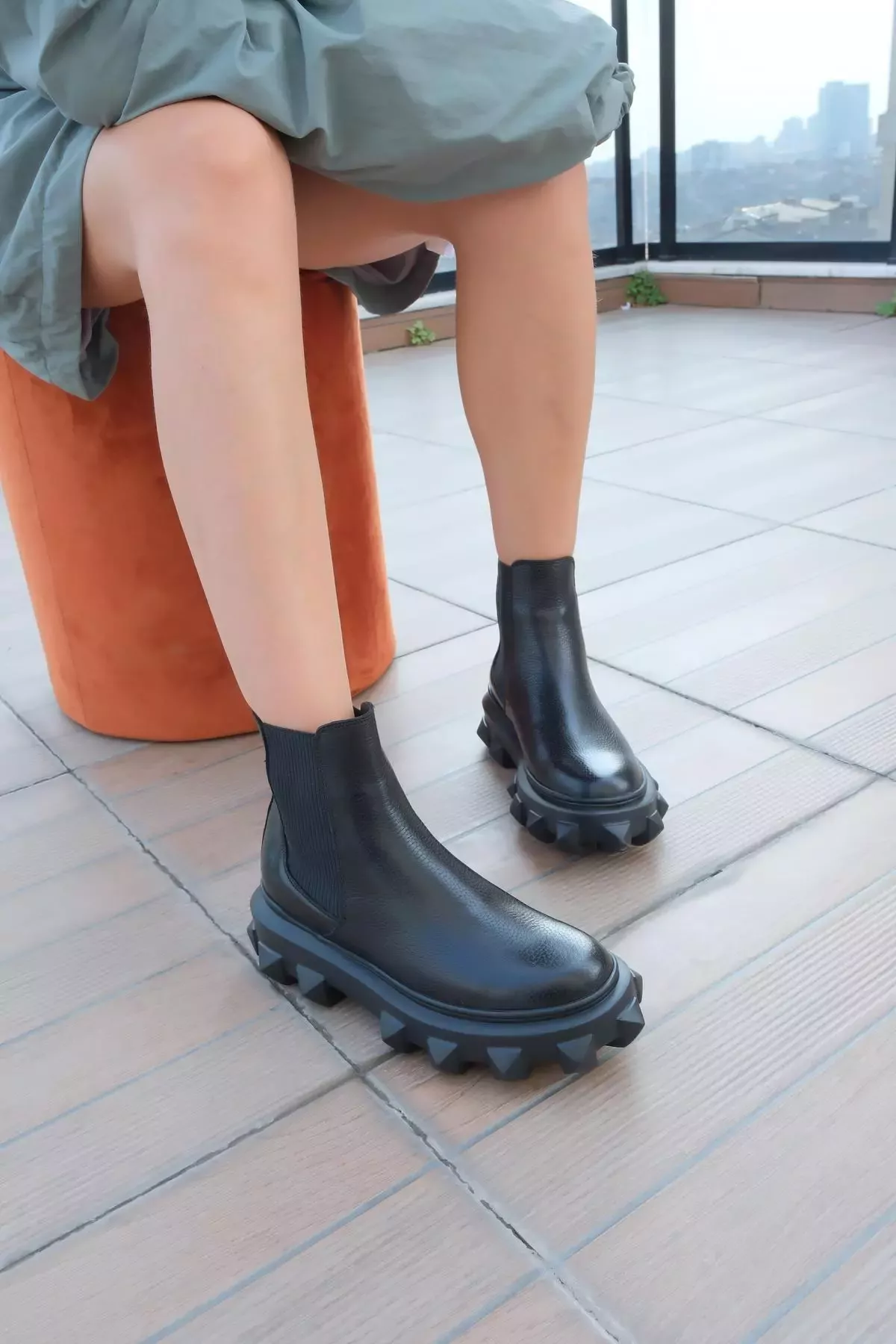 Kadın Siyah Floter Hakiki Deri Taban Detaylı Bot