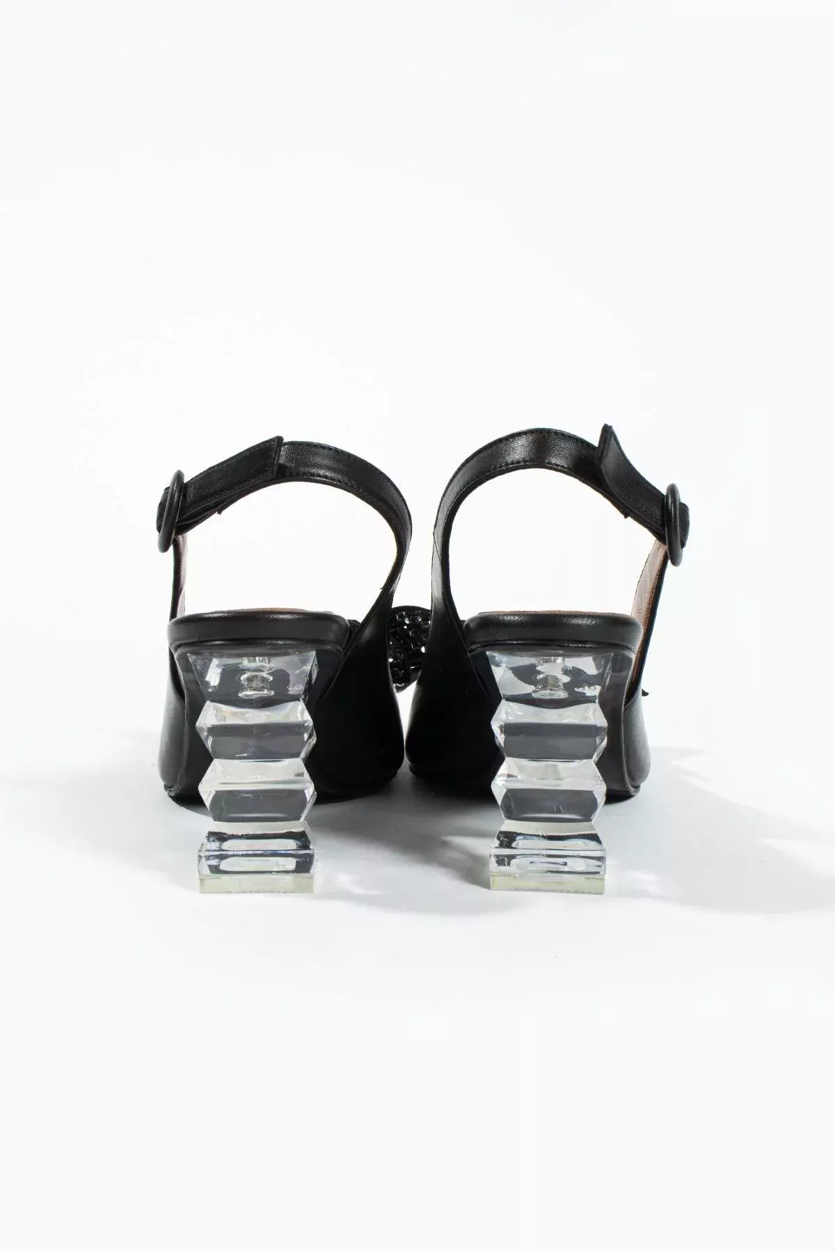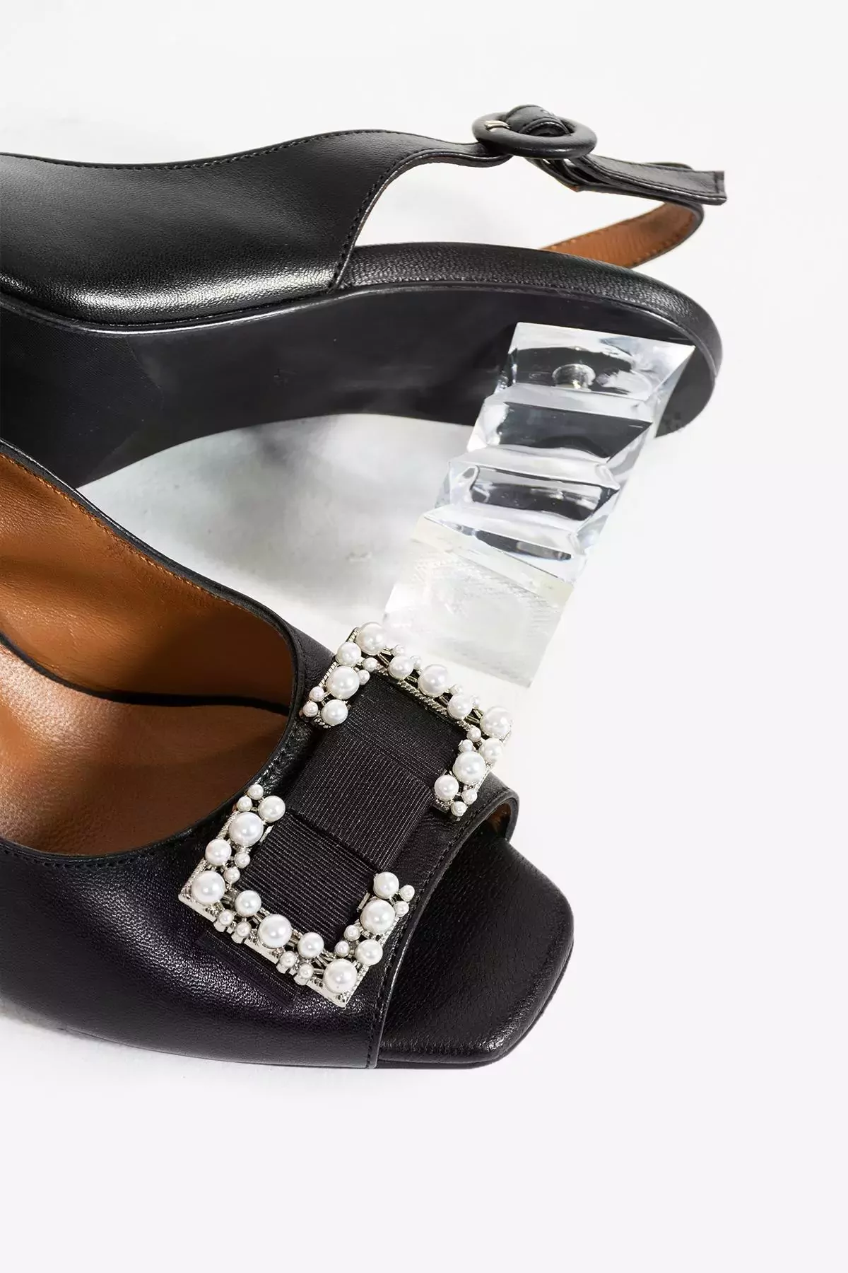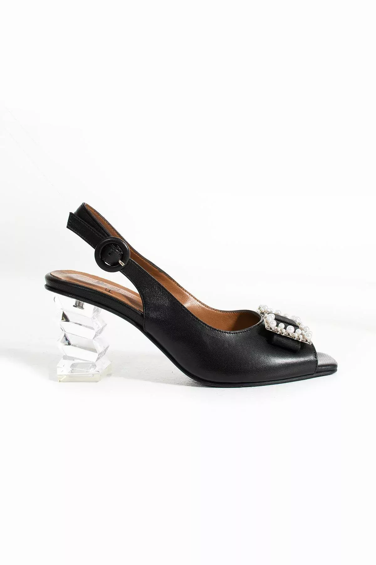 Kadın Siyah Hakiki Deri Aksesuar Detaylı Topuklu Ayakkabı