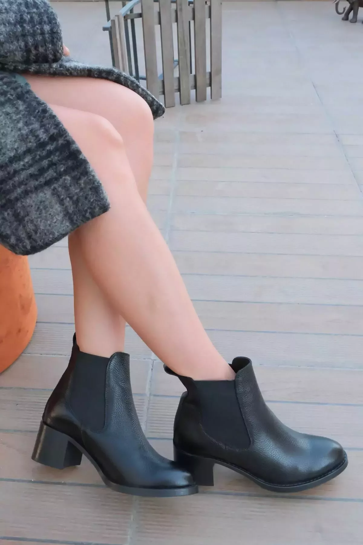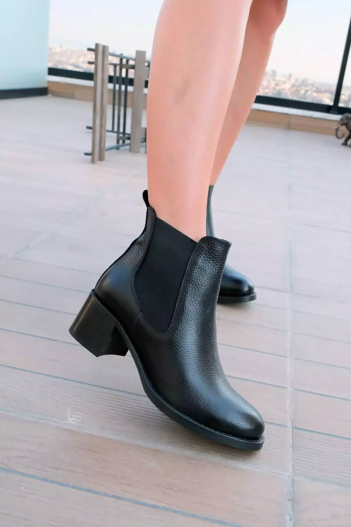 Kadın Siyah Hakiki Deri Lastik Detaylı Bot