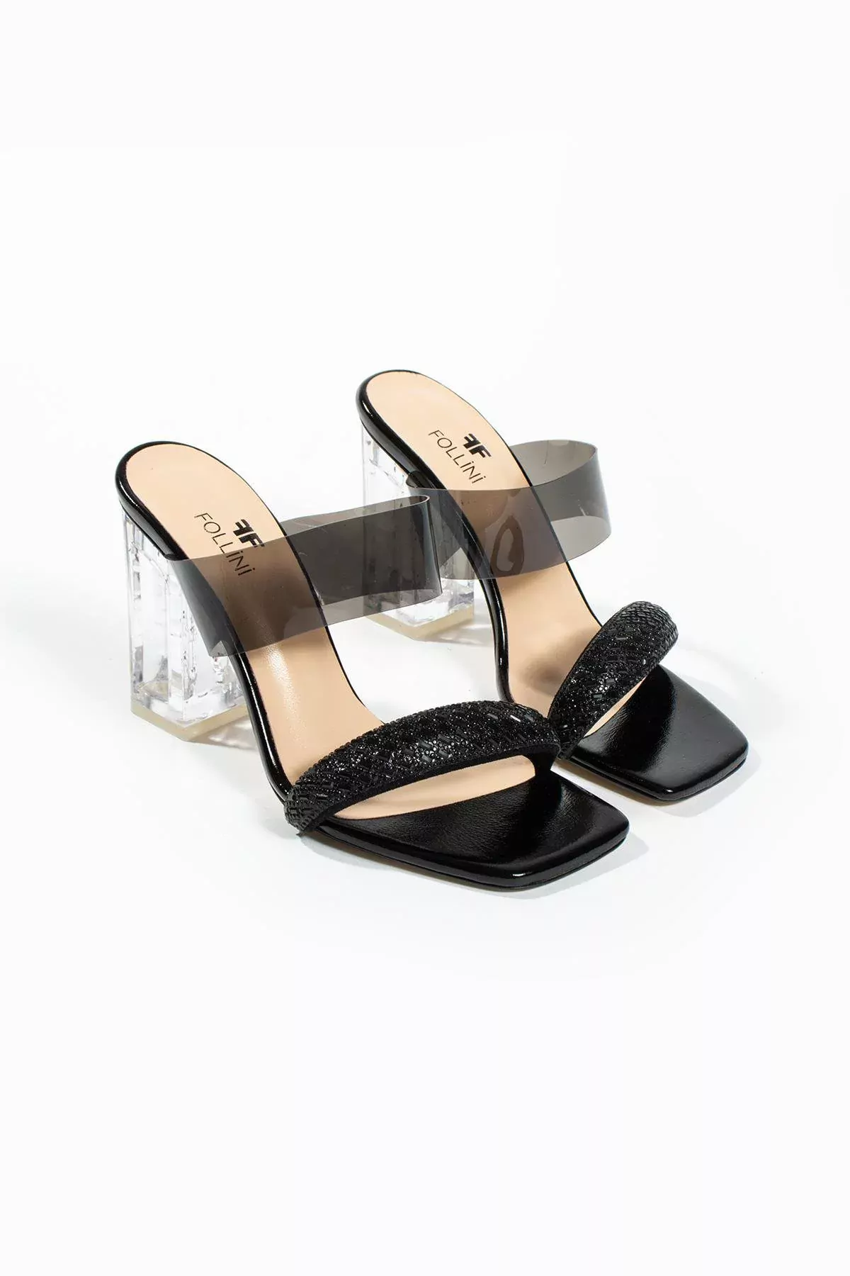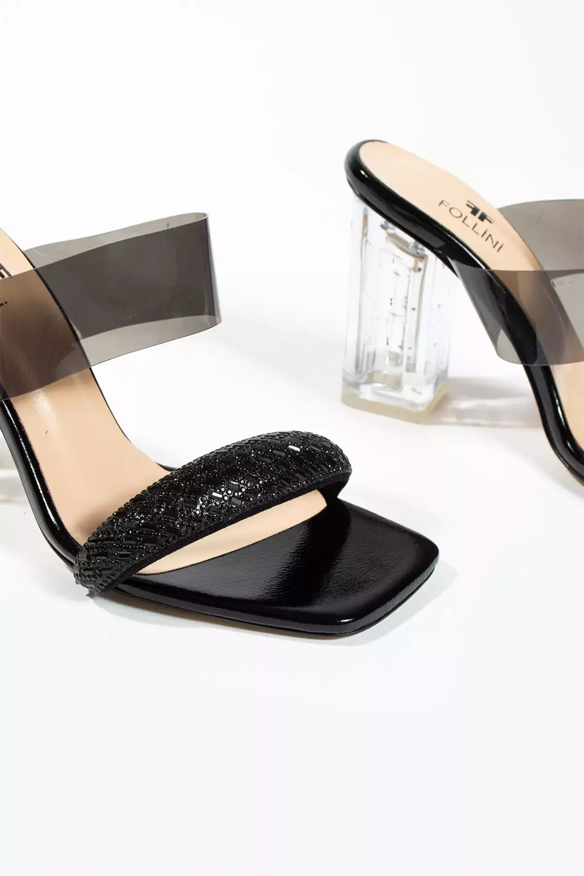 Kadın Siyah Hakiki Deri Taşlı Terlik