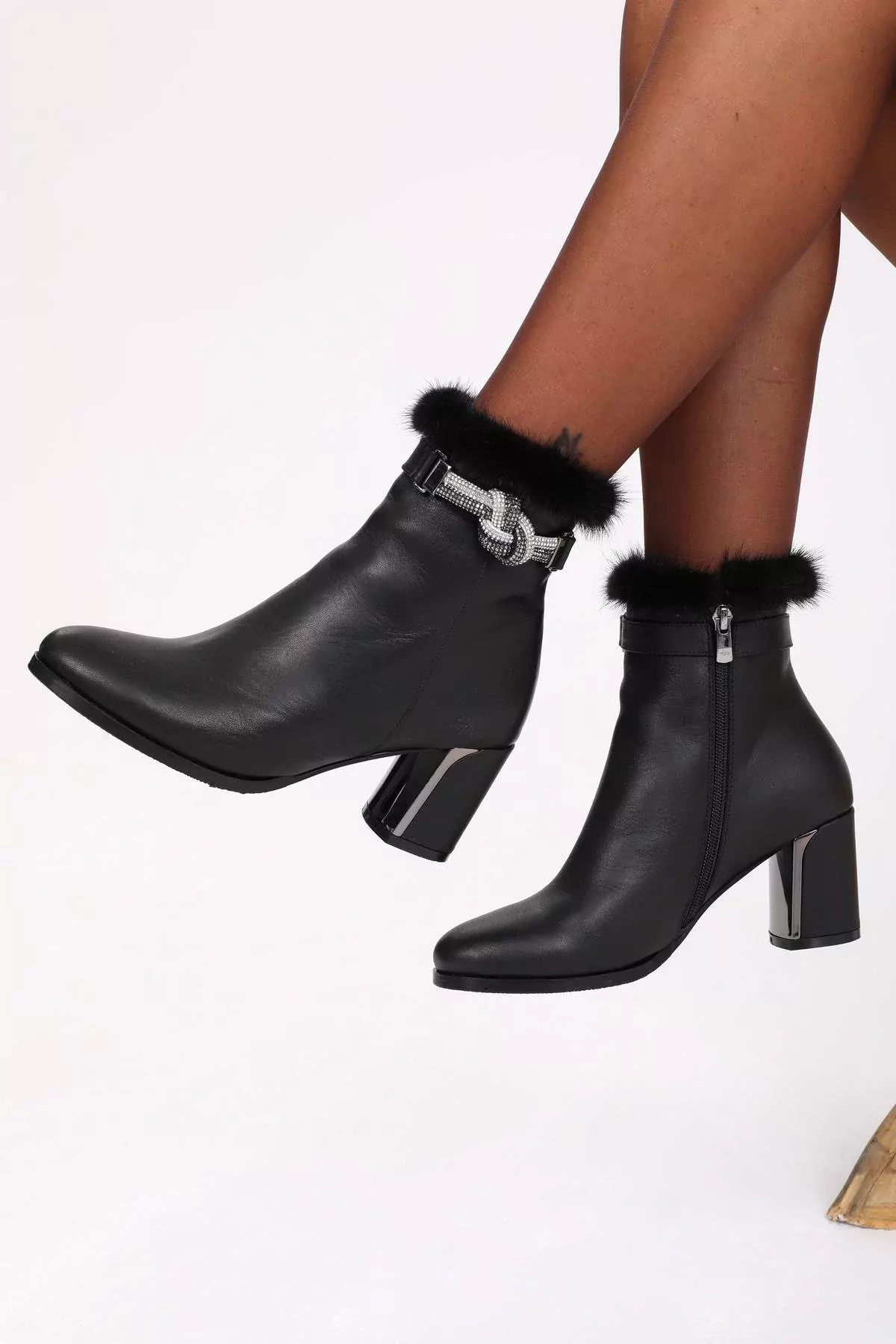 Kadın Siyah Kürk Ve Taş Detaylı Bot