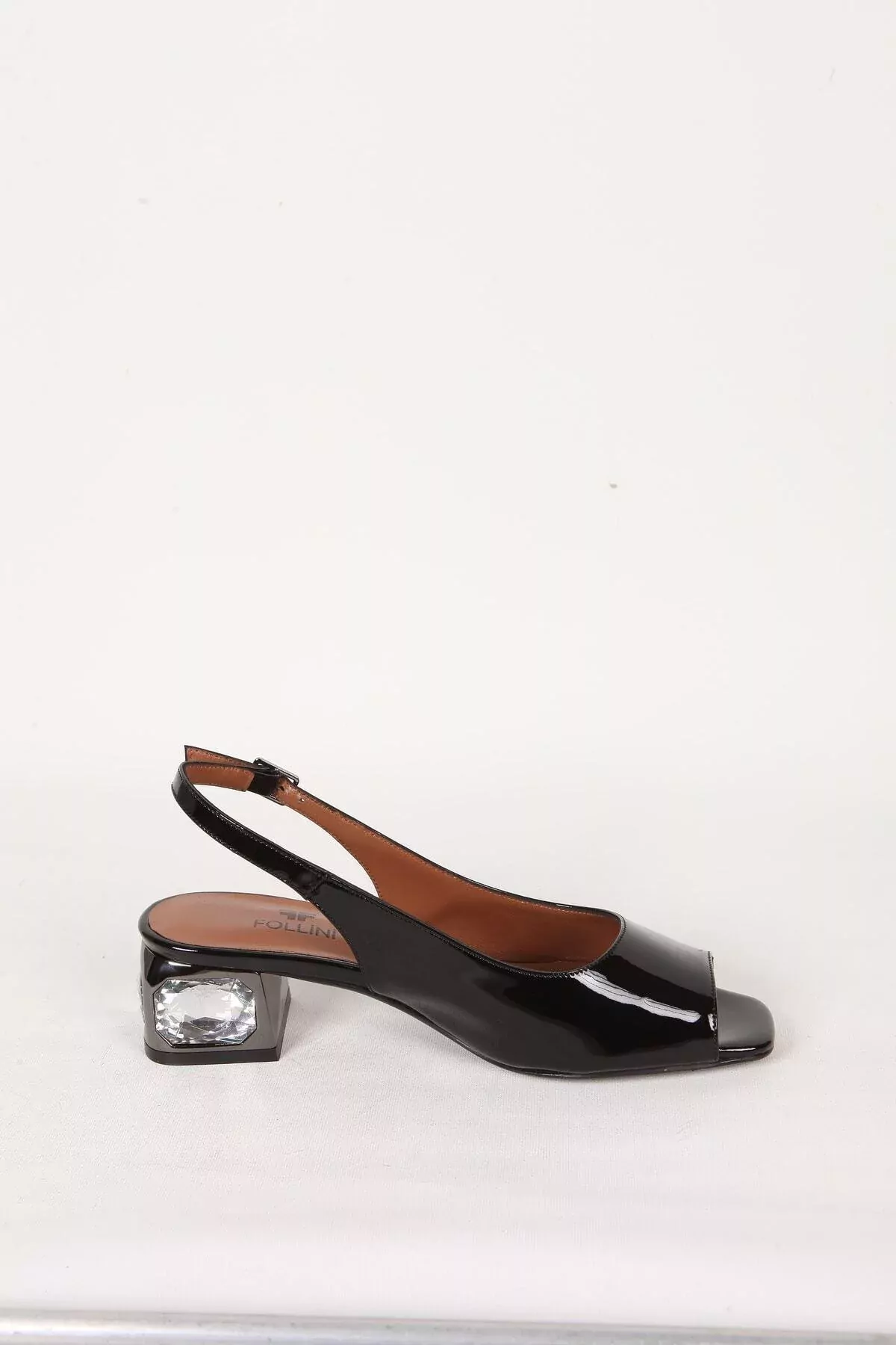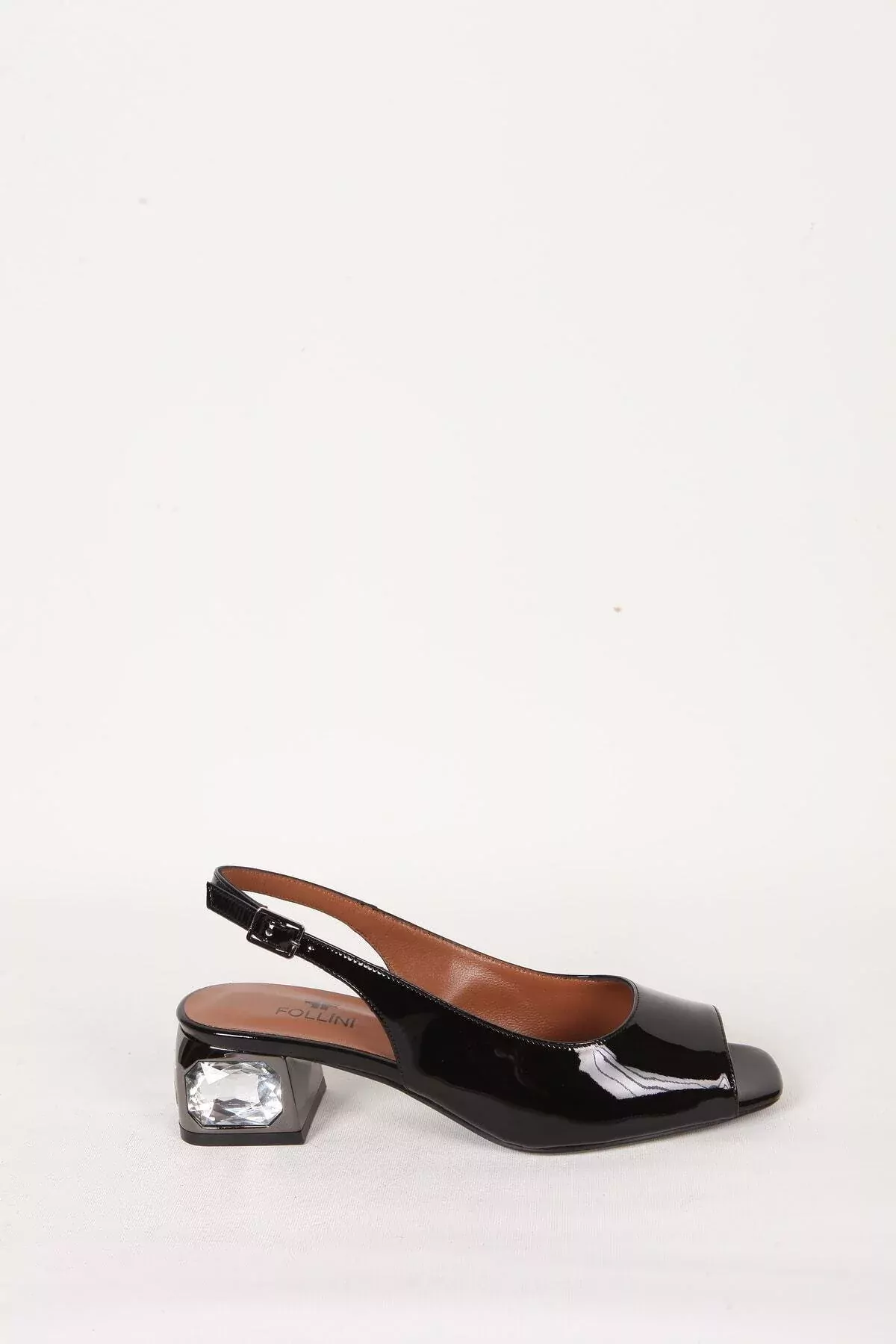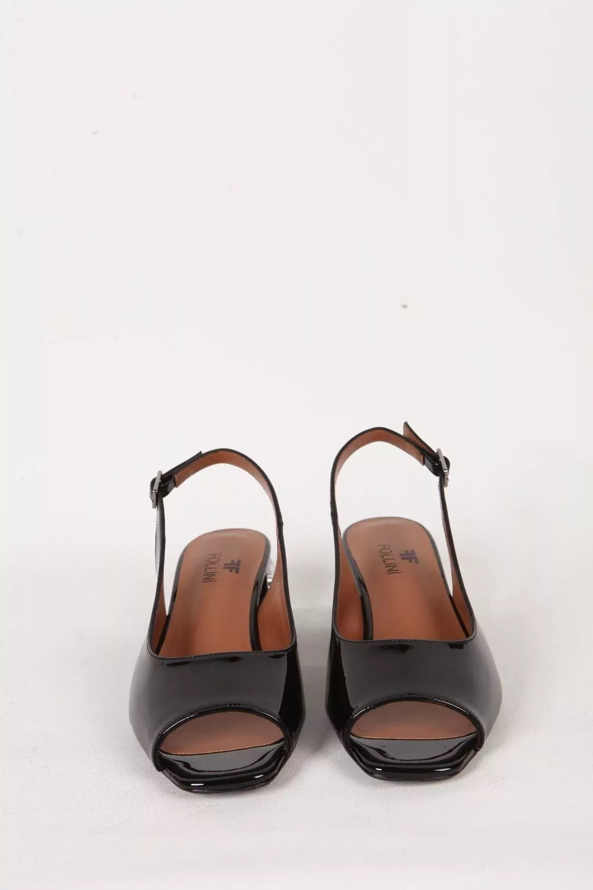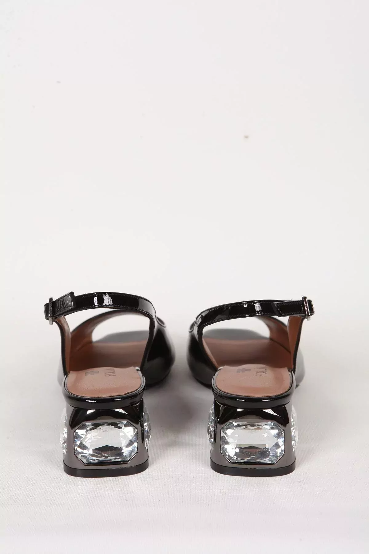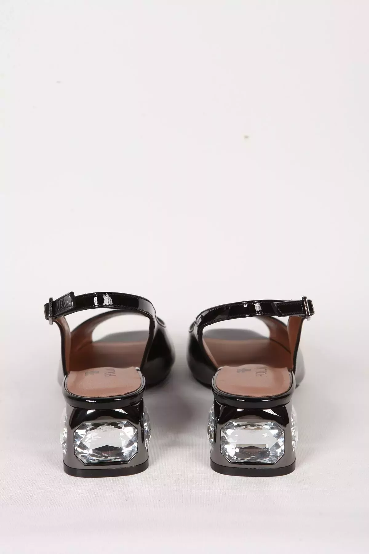 Kadın Siyah Rugan Hakiki Deri Topuk Detaylı Abiye Ayakkabı
