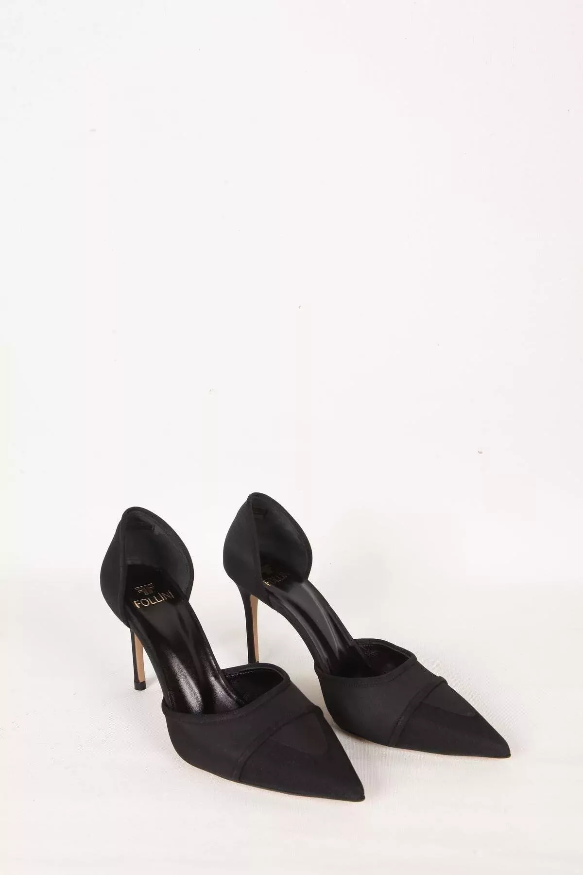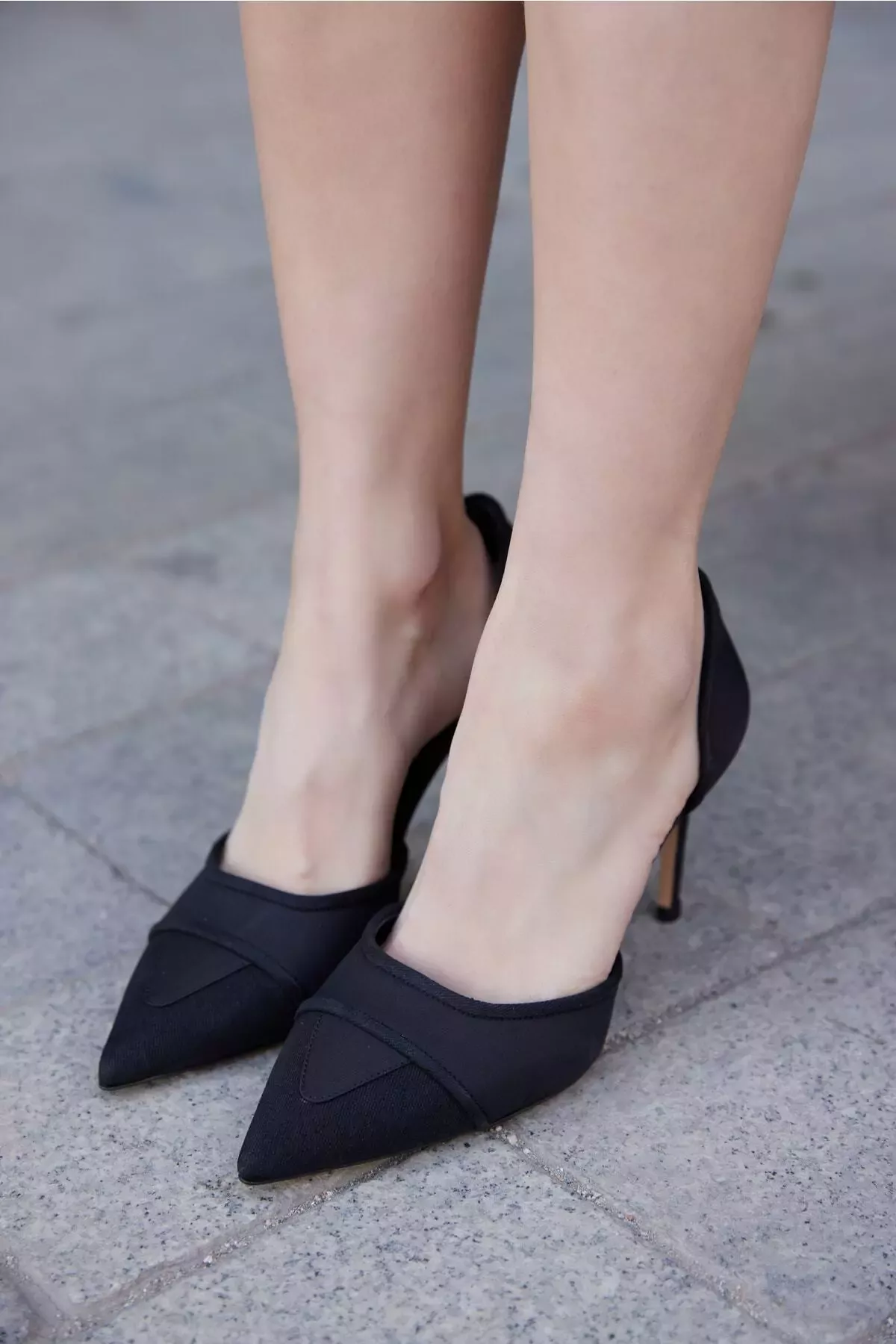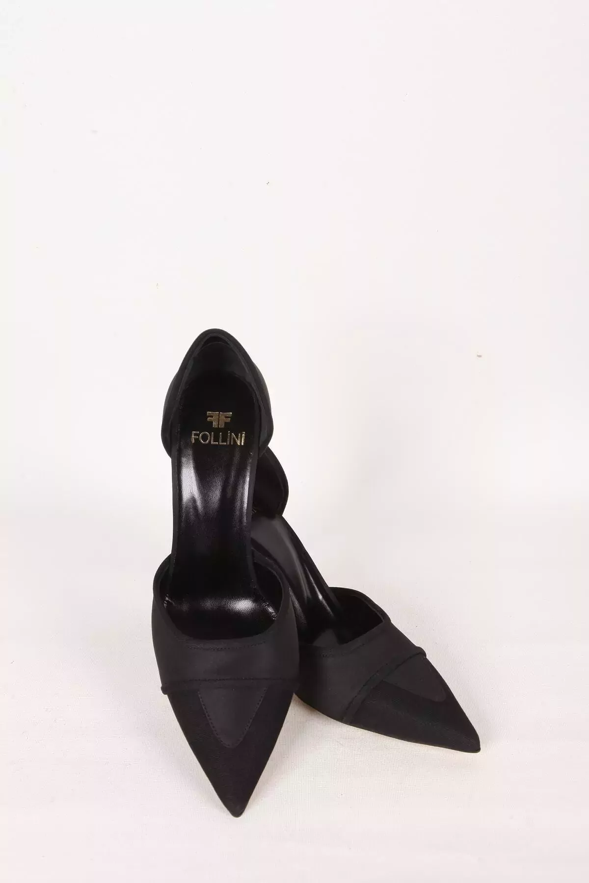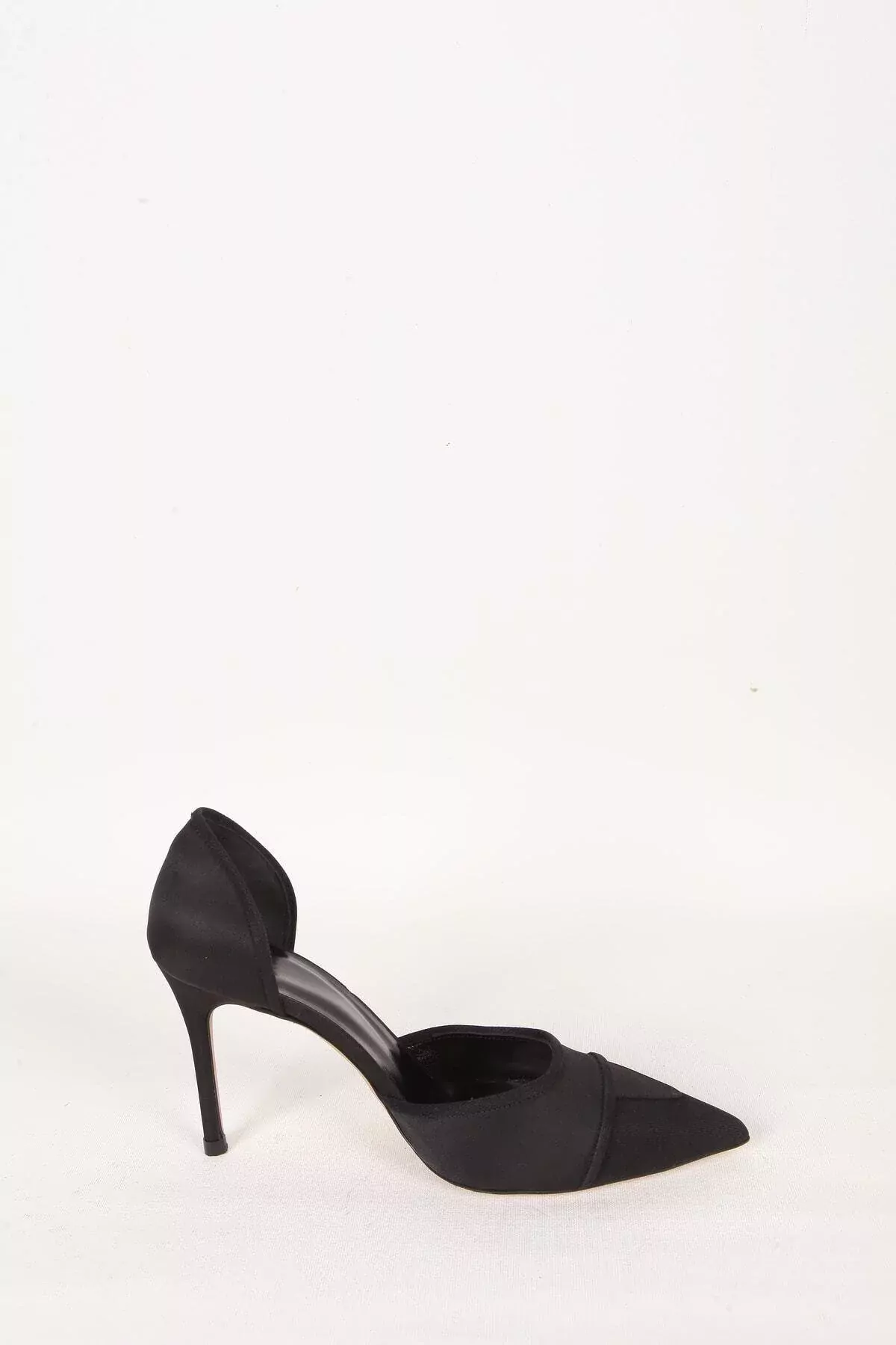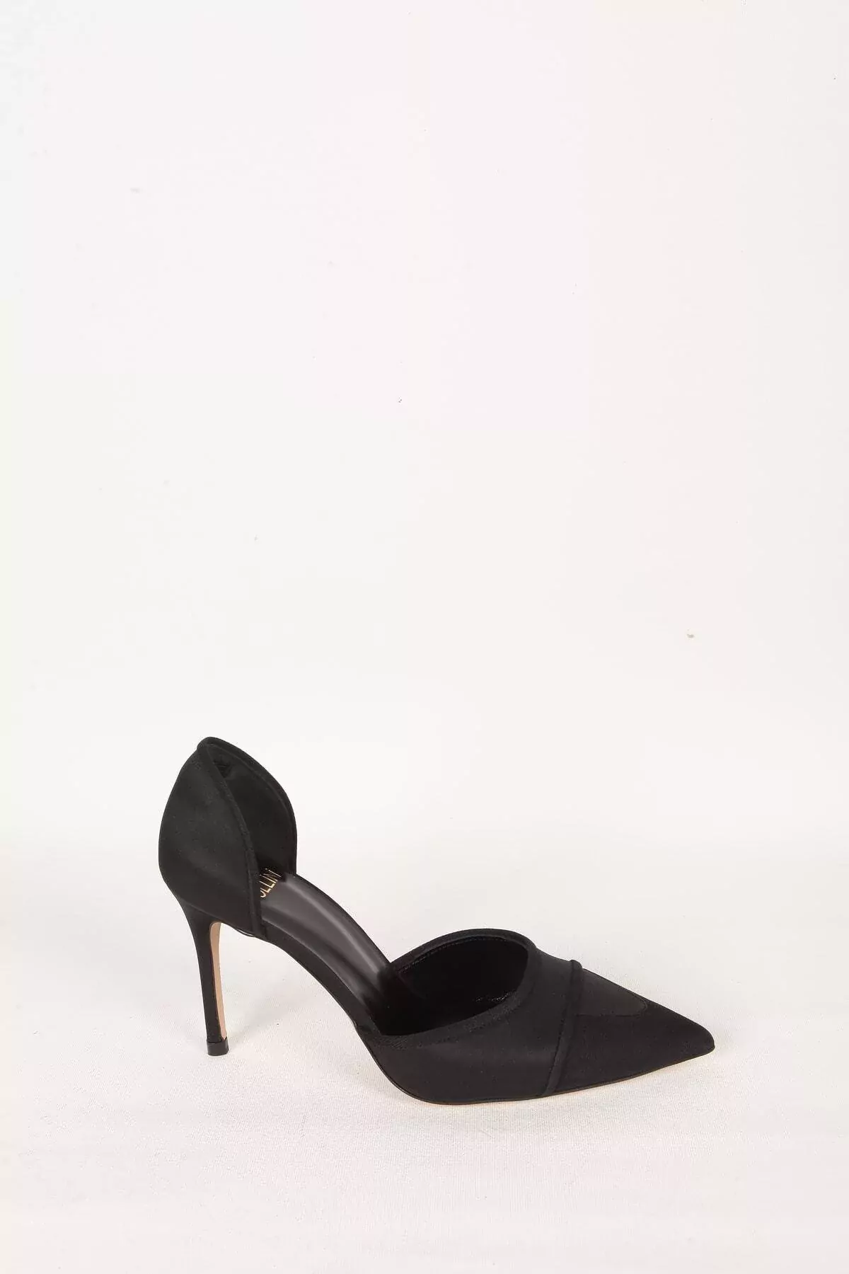 Kadın Siyah Saten Hakiki Deri Topuklu Ayakkabı