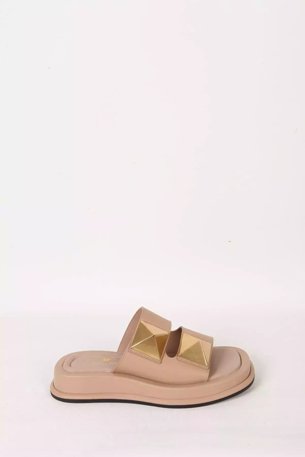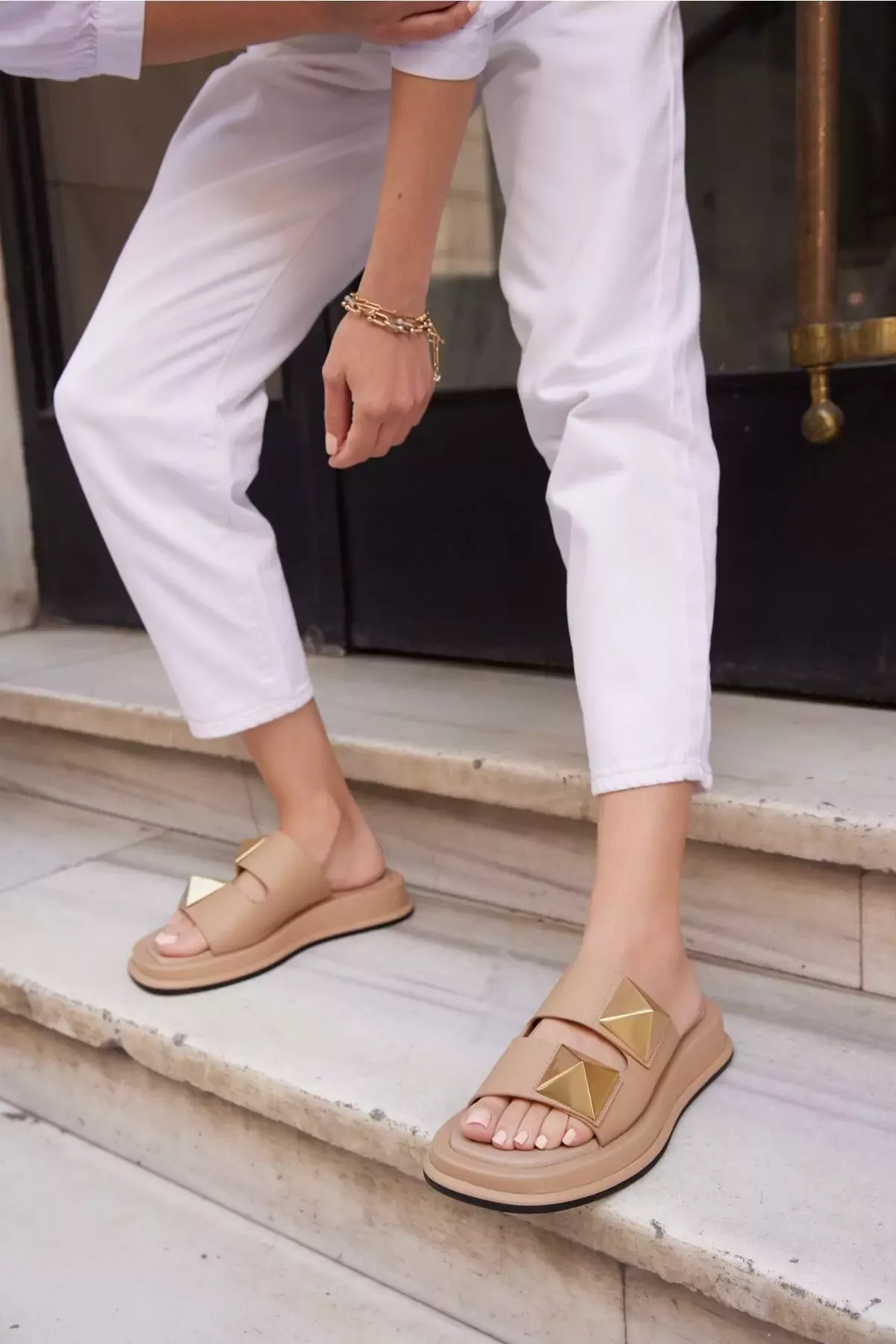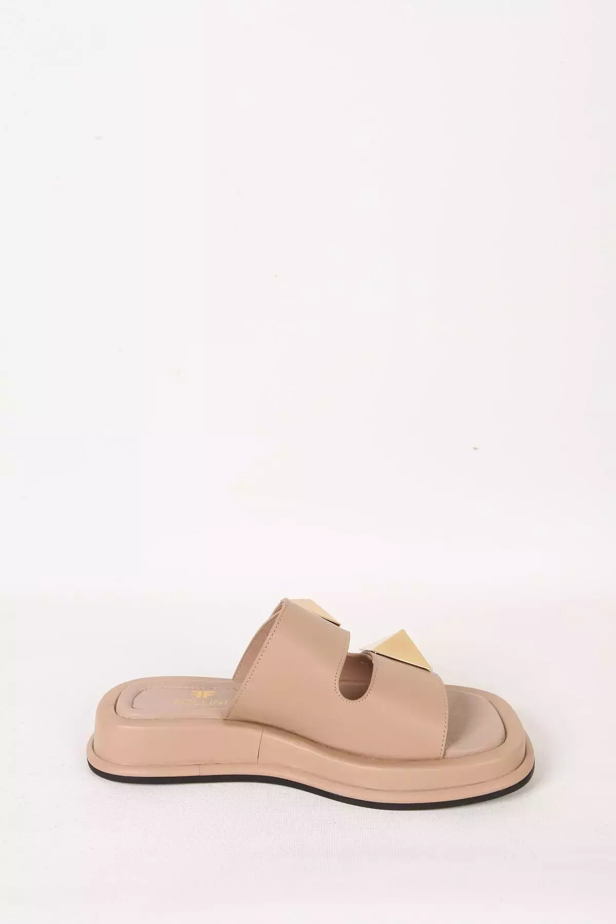 Kadın Vizon Hakiki Deri Aksesuar Detaylı Terlik