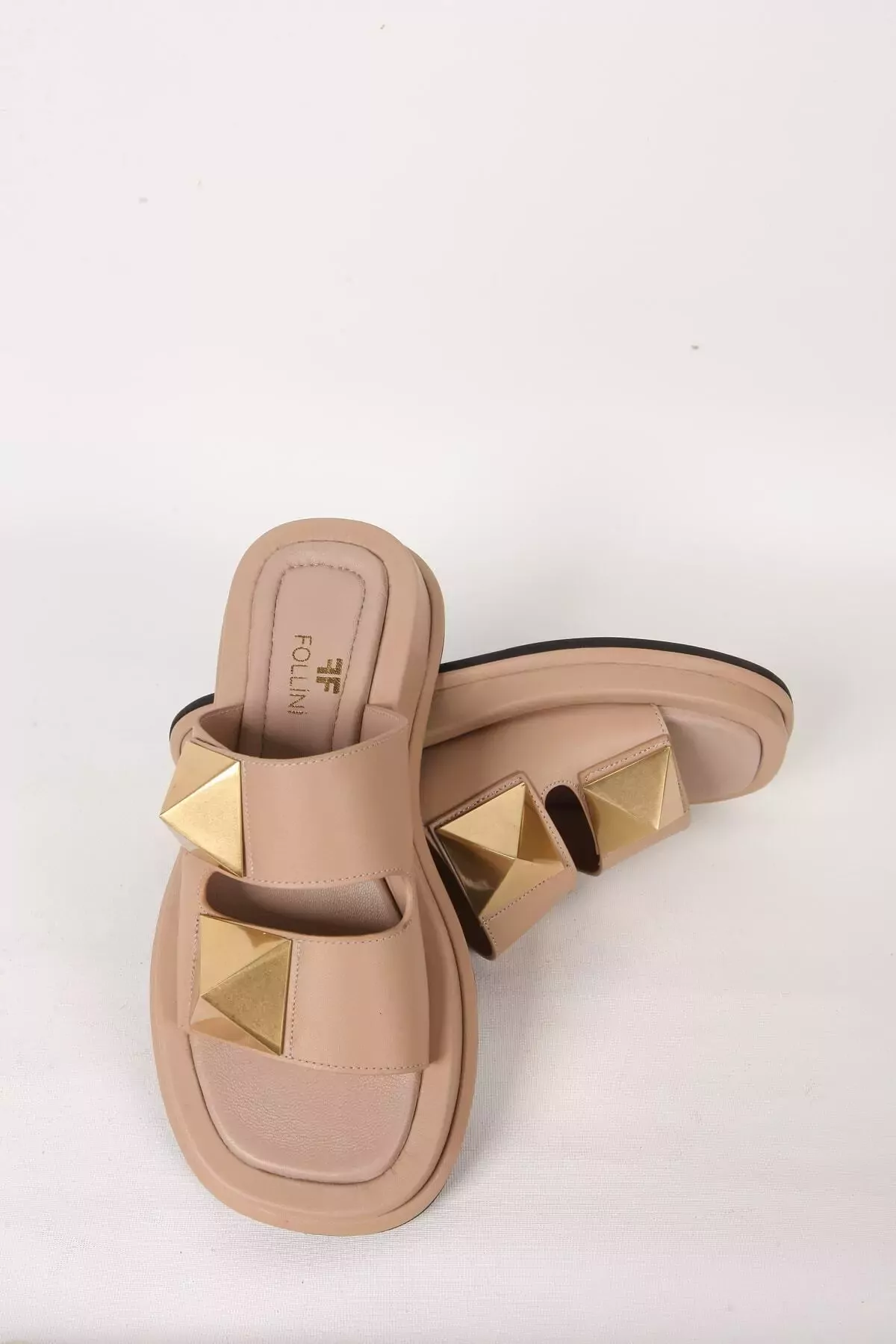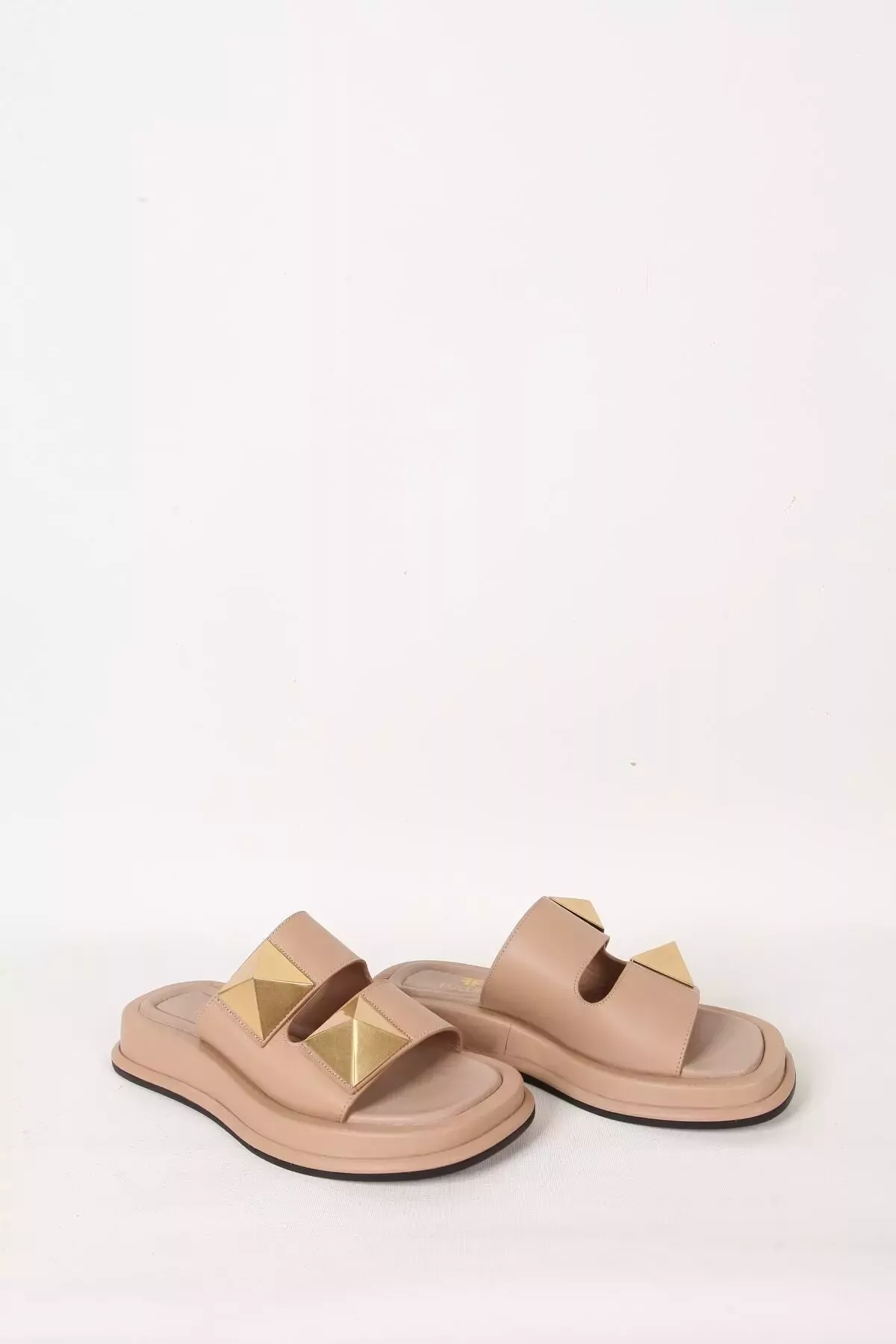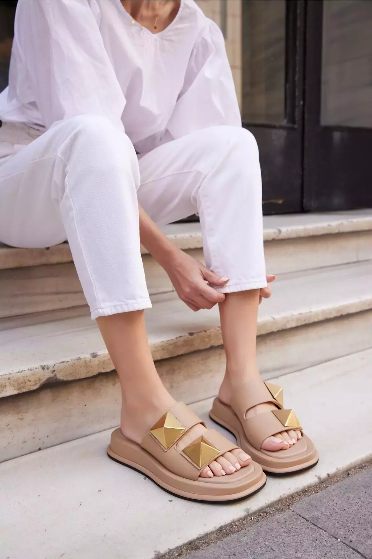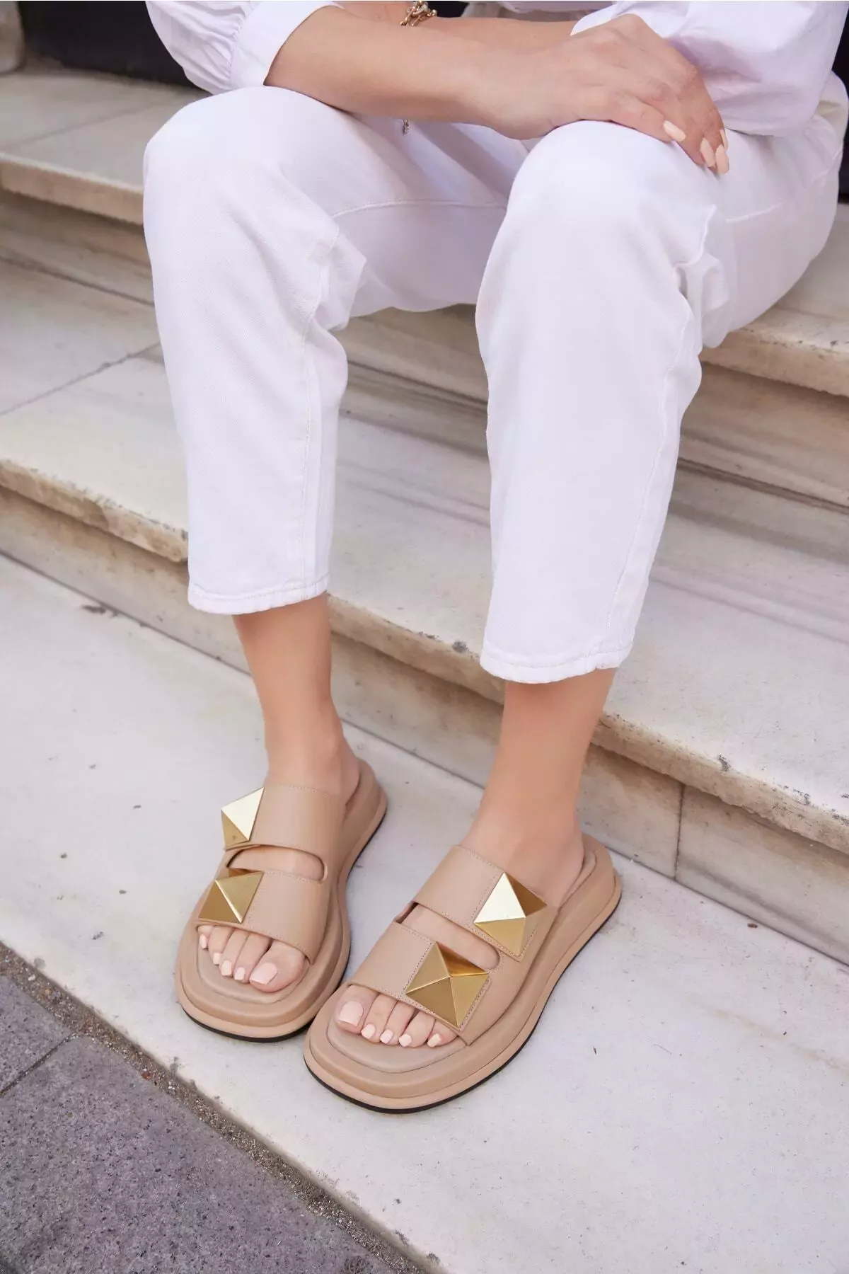 Kadın Vizon Hakiki Deri Aksesuar Detaylı Terlik