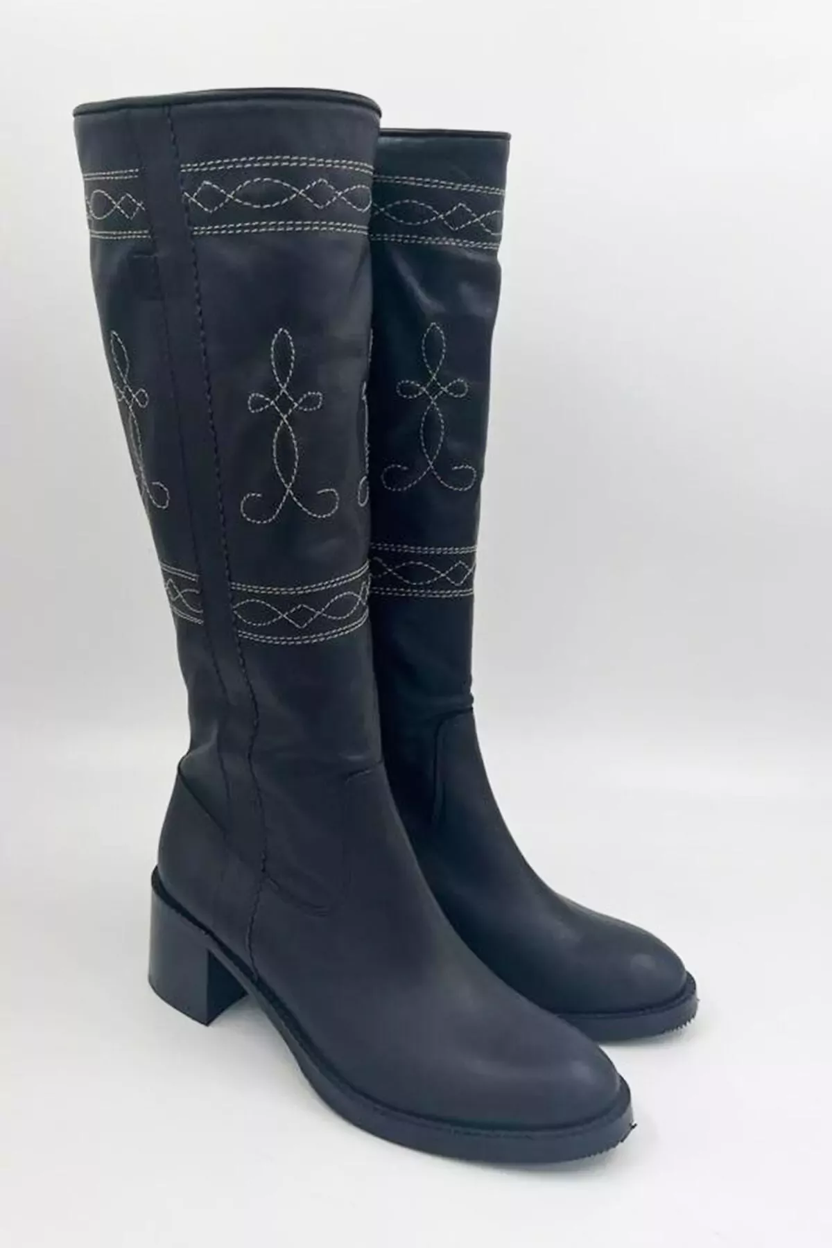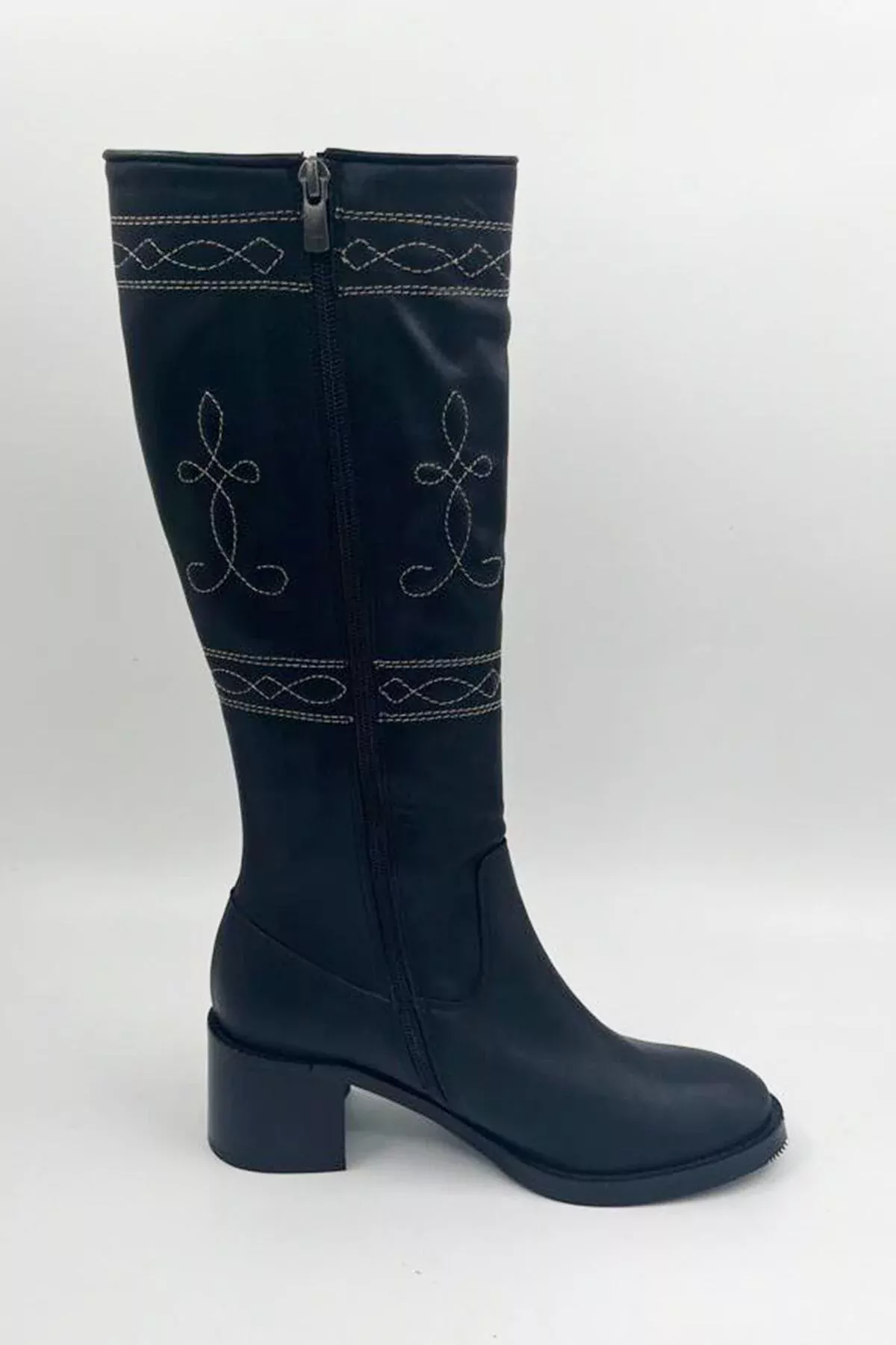 Kadın Vizon Süet Nakış Detaylı Çizme