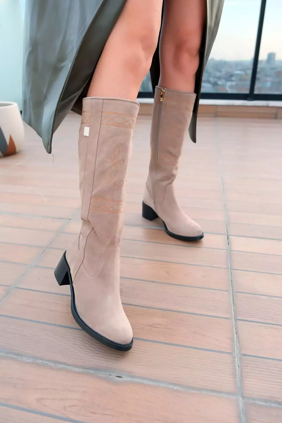 Kadın Vizon Süet Nakış Detaylı Çizme