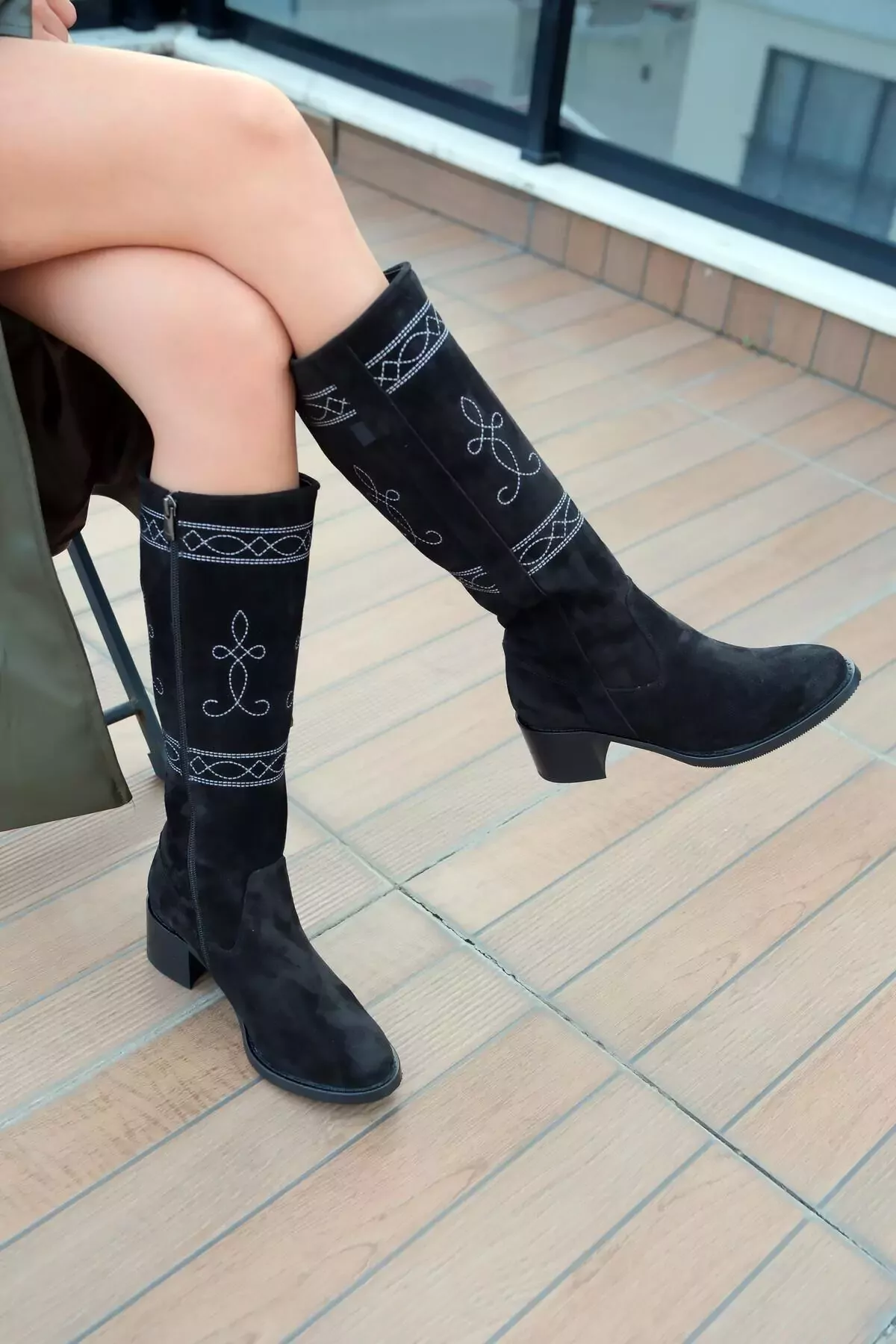 Kadın Vizon Süet Nakış Detaylı Çizme