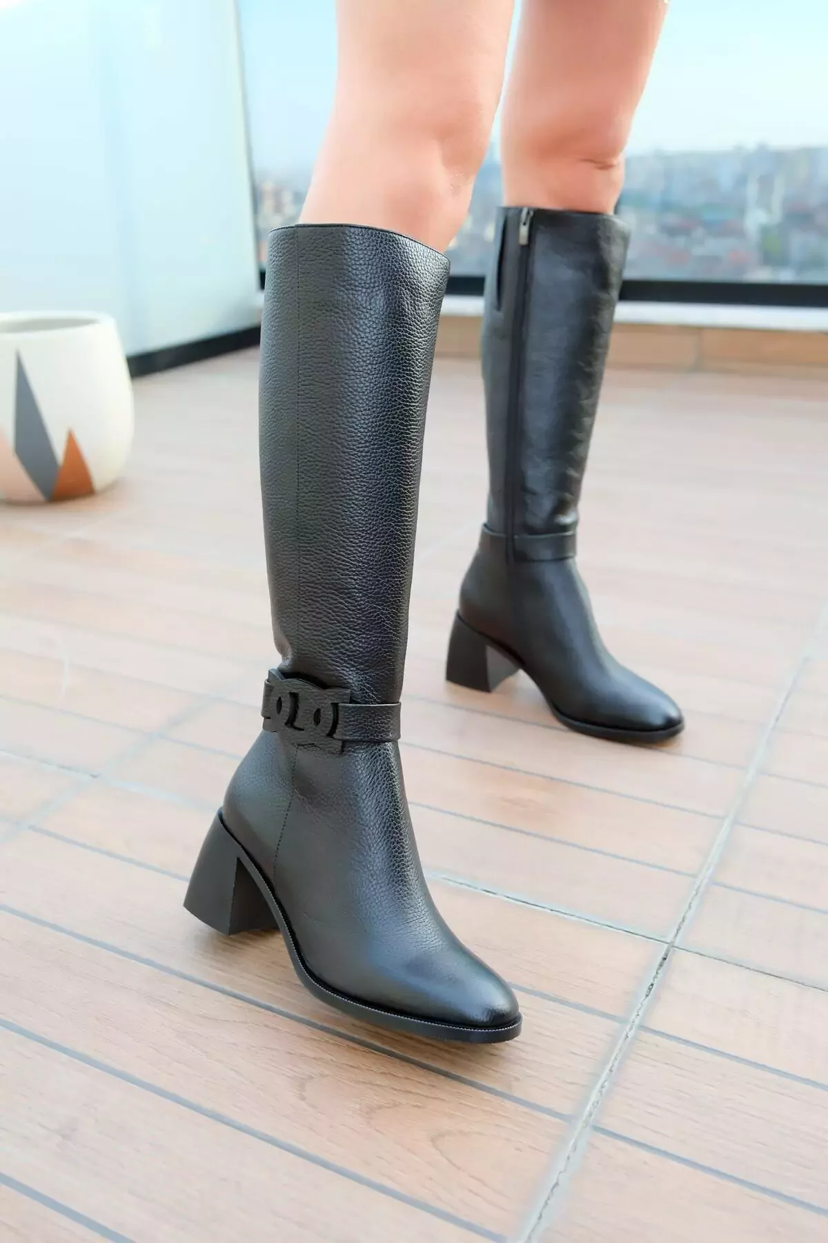 Kadın Vizon Topuklu Deri Çizme