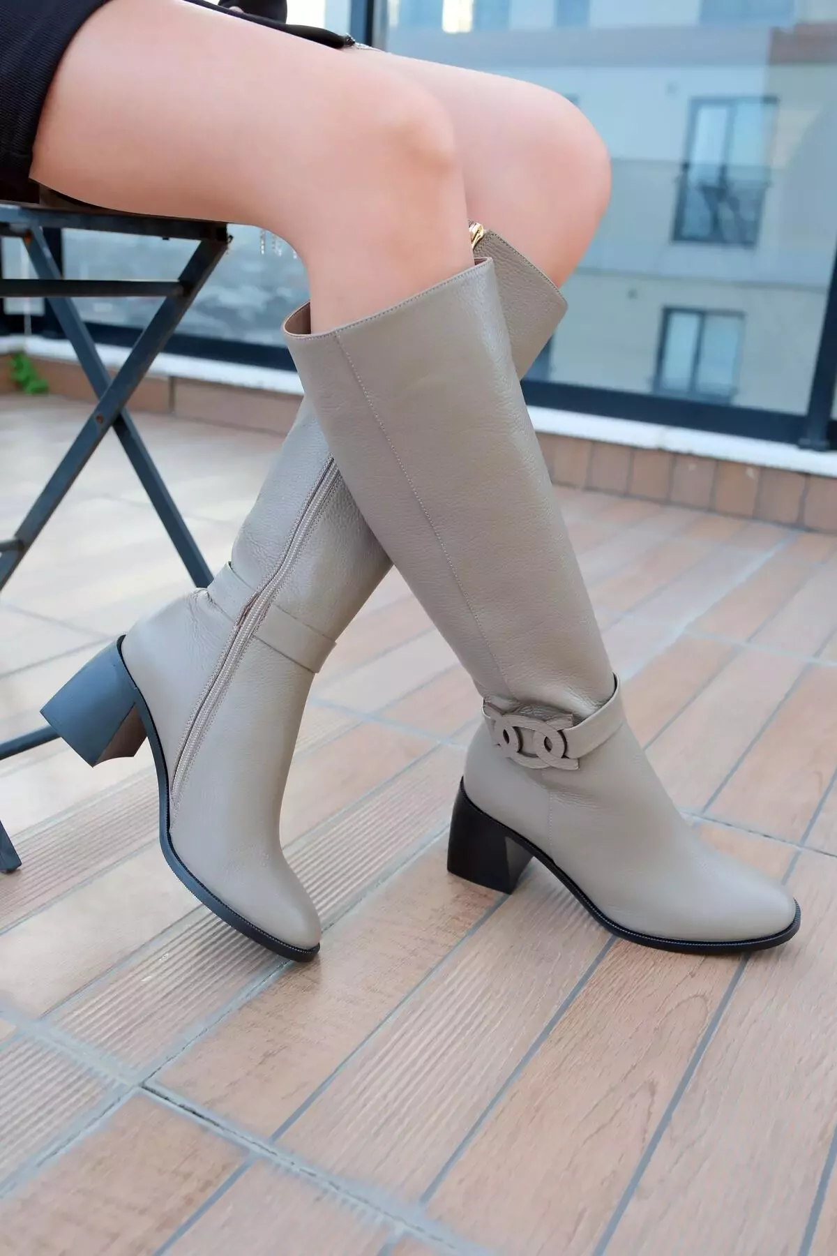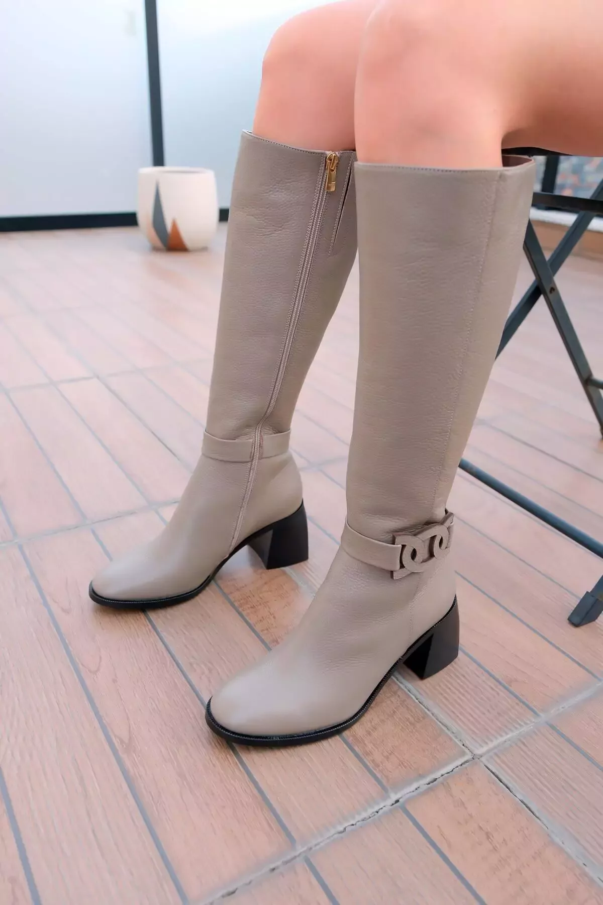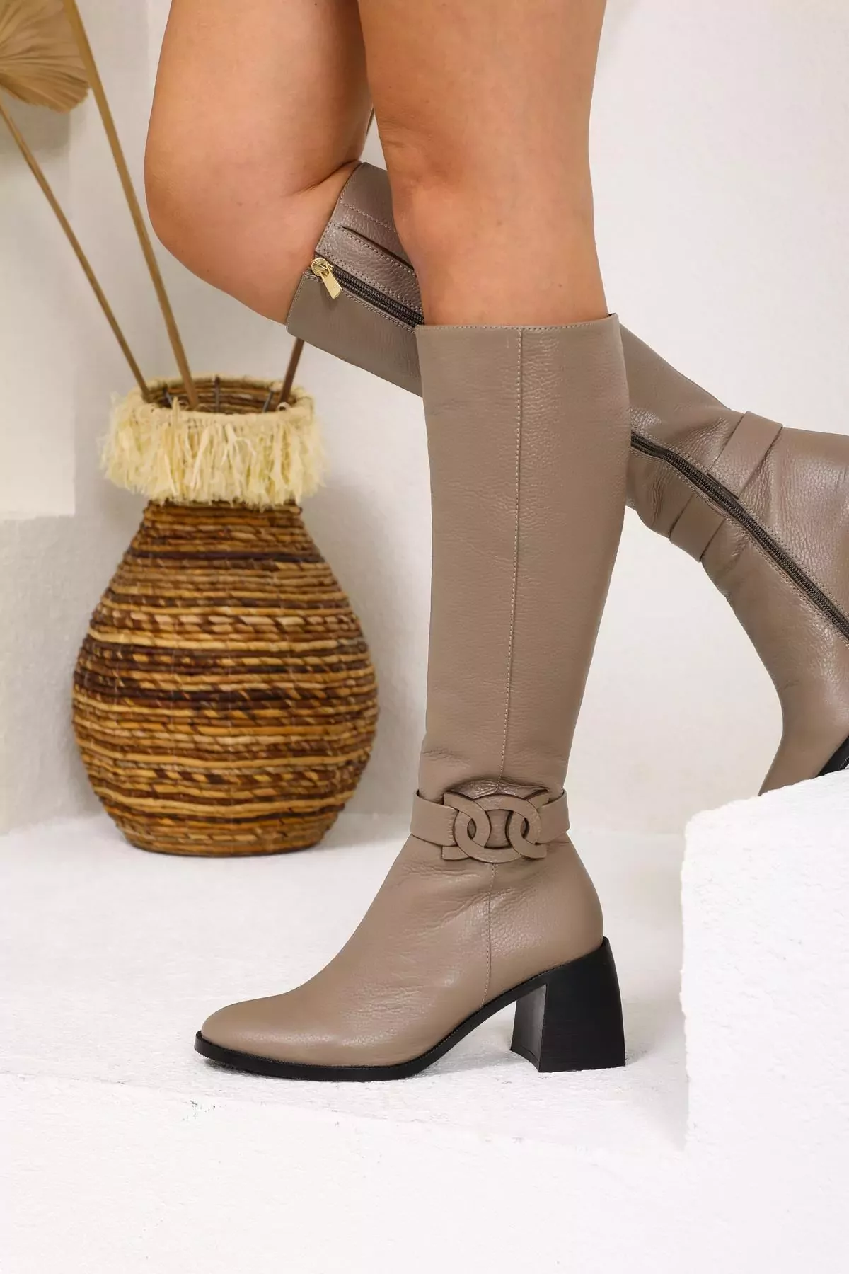 Kadın Vizon Topuklu Deri Çizme