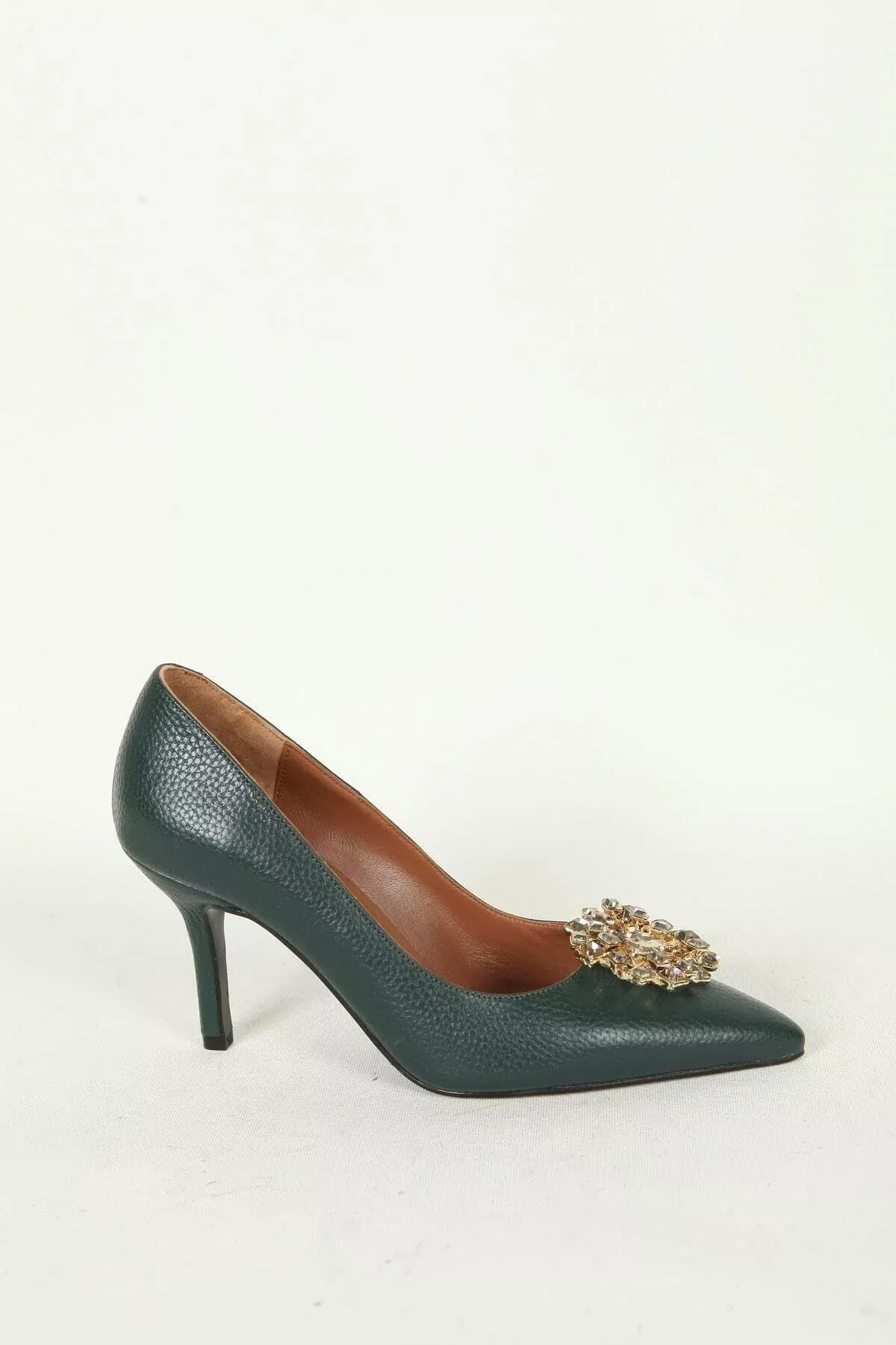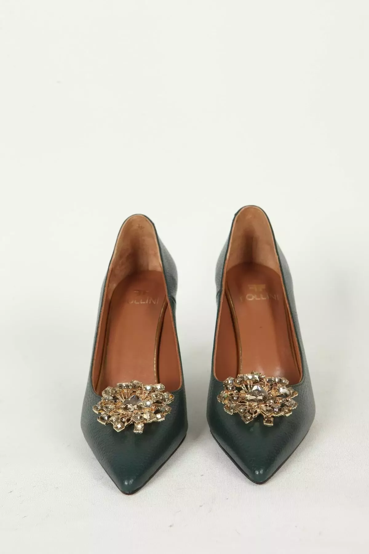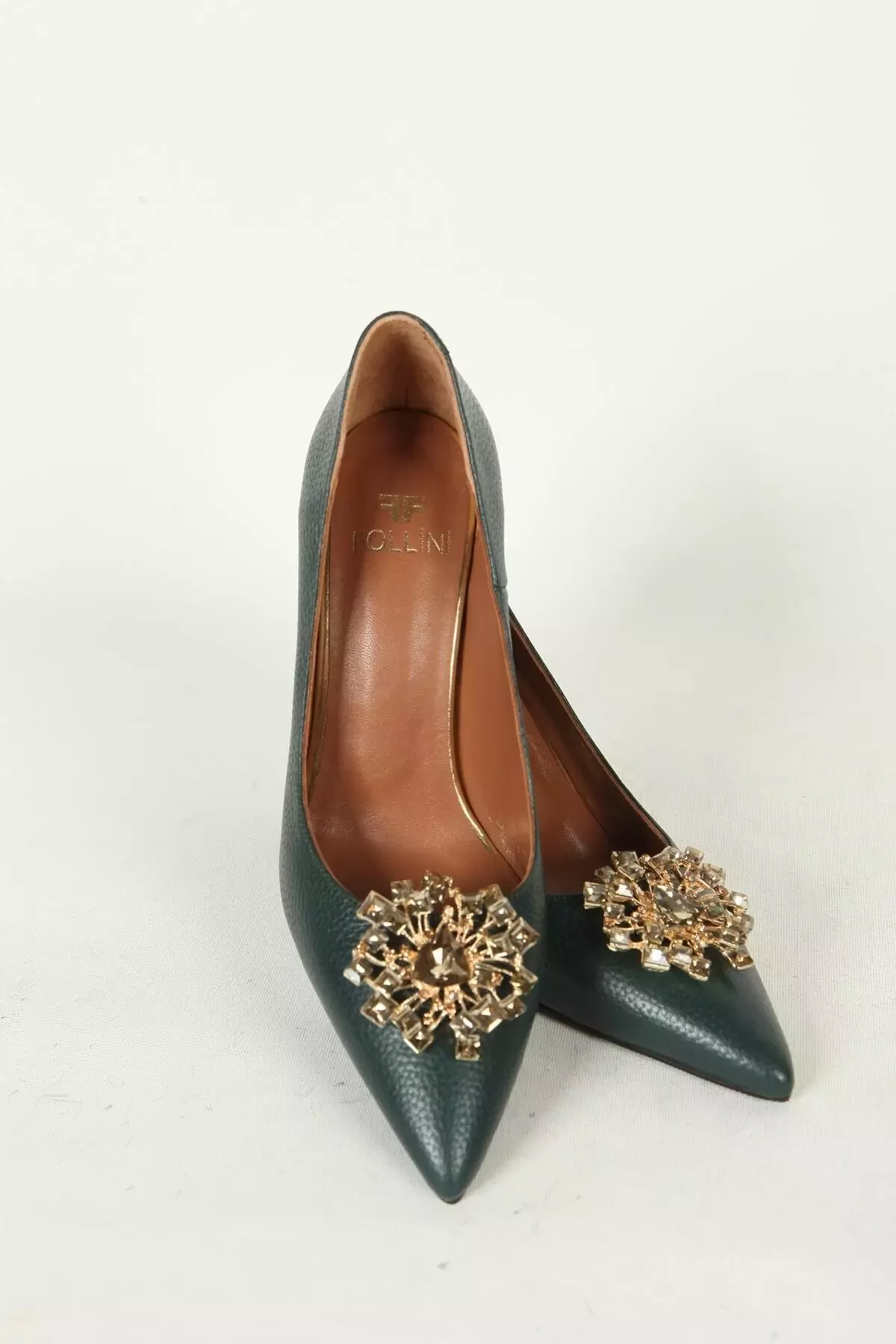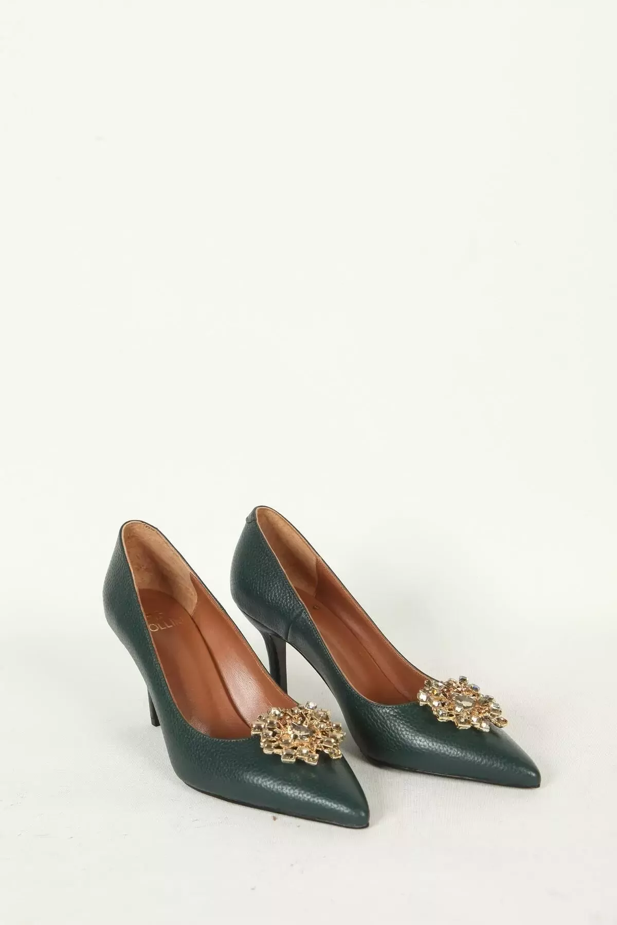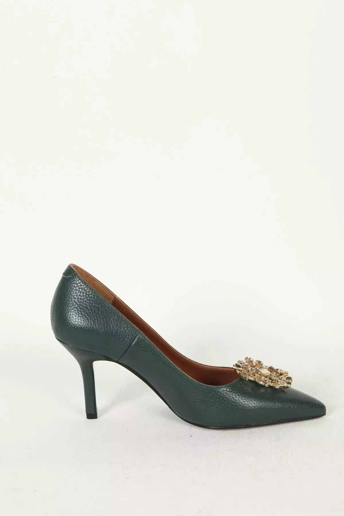 Kadın Yeşil Deri Aksesuar Detaylı Abiye Ayakkabı