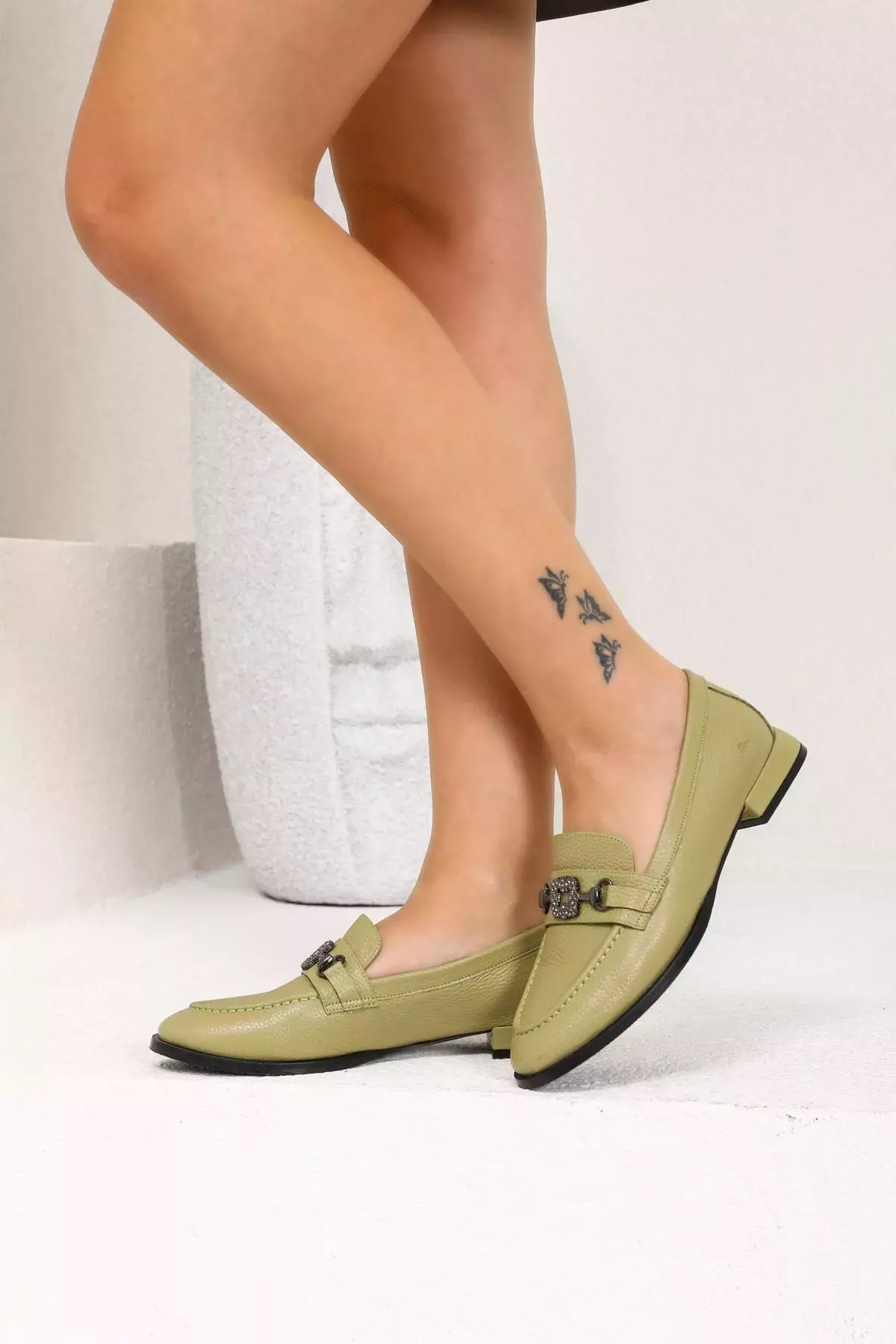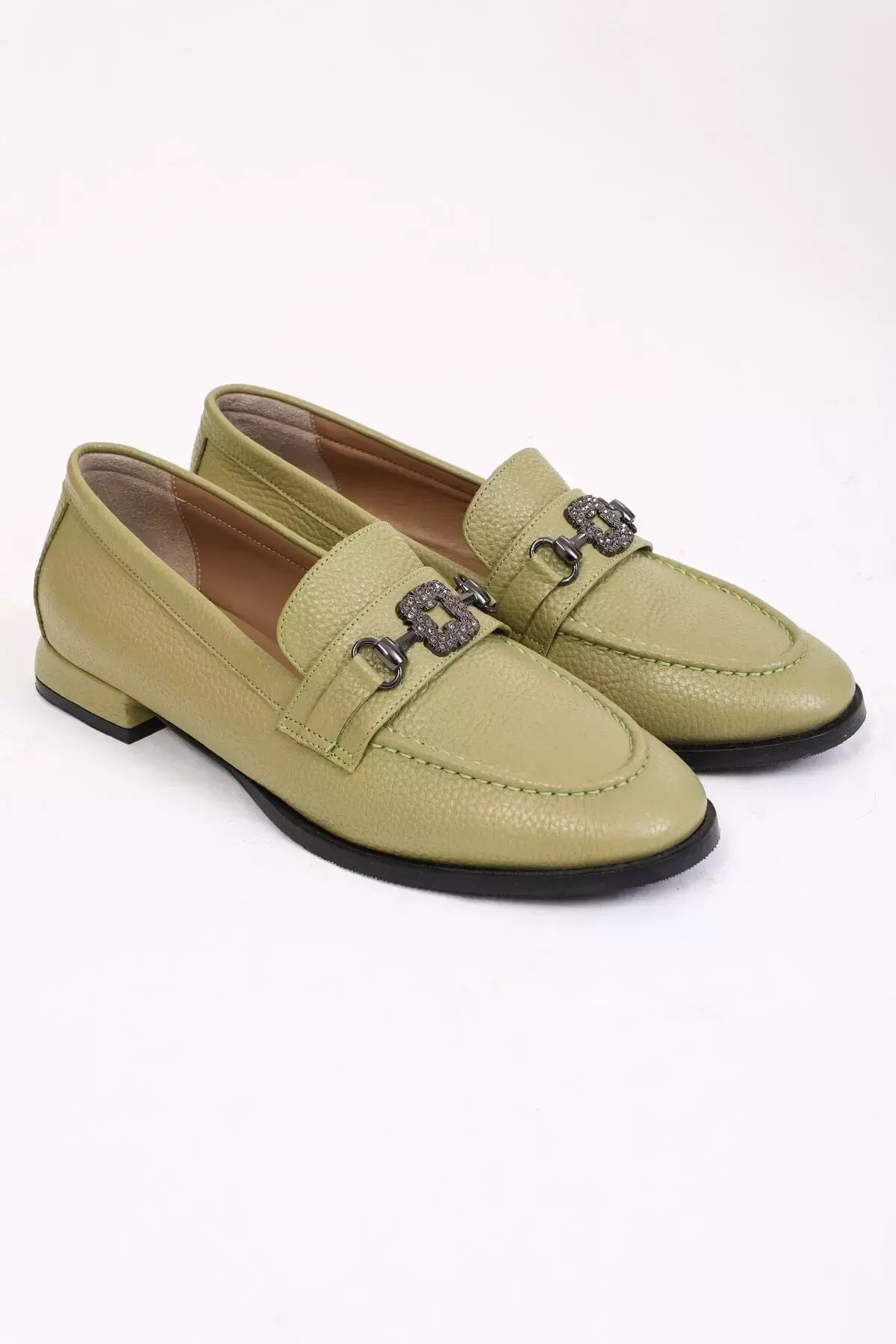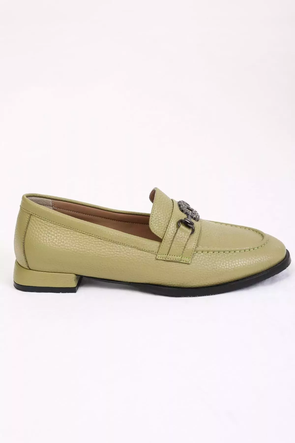 Kadın Yeşil Loafer Aksesuar Detaylı